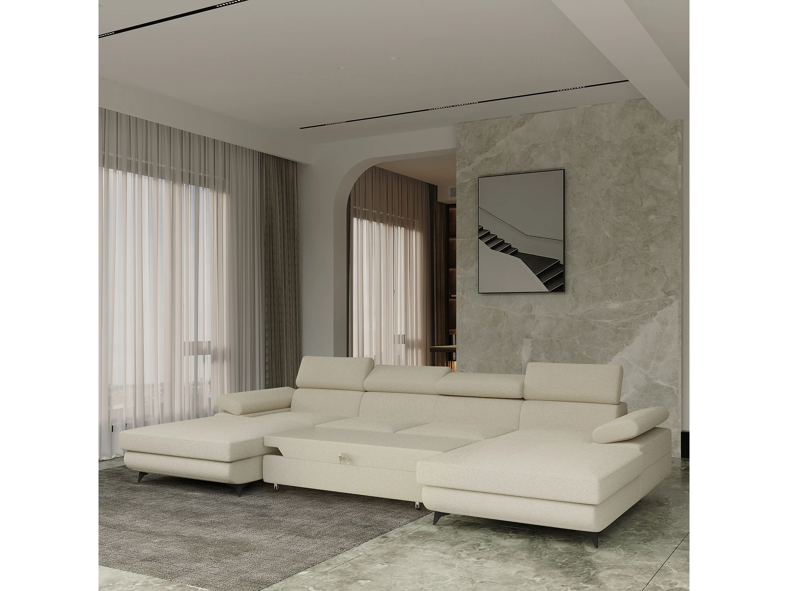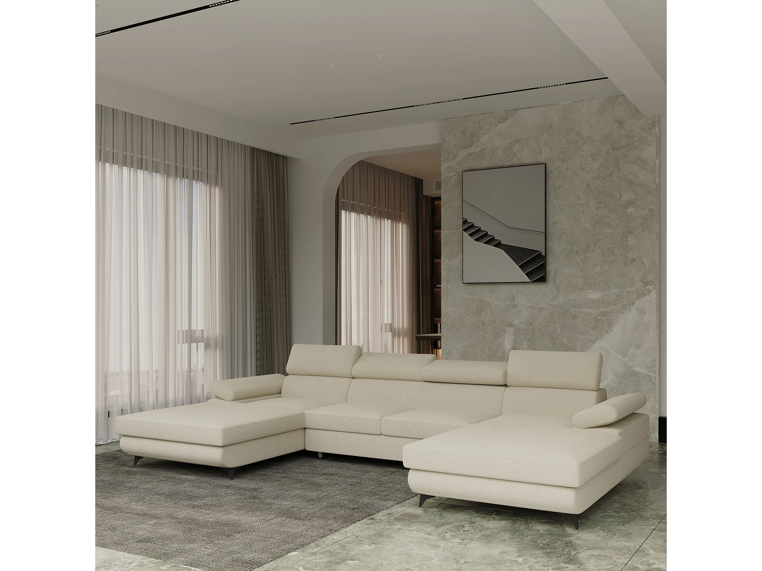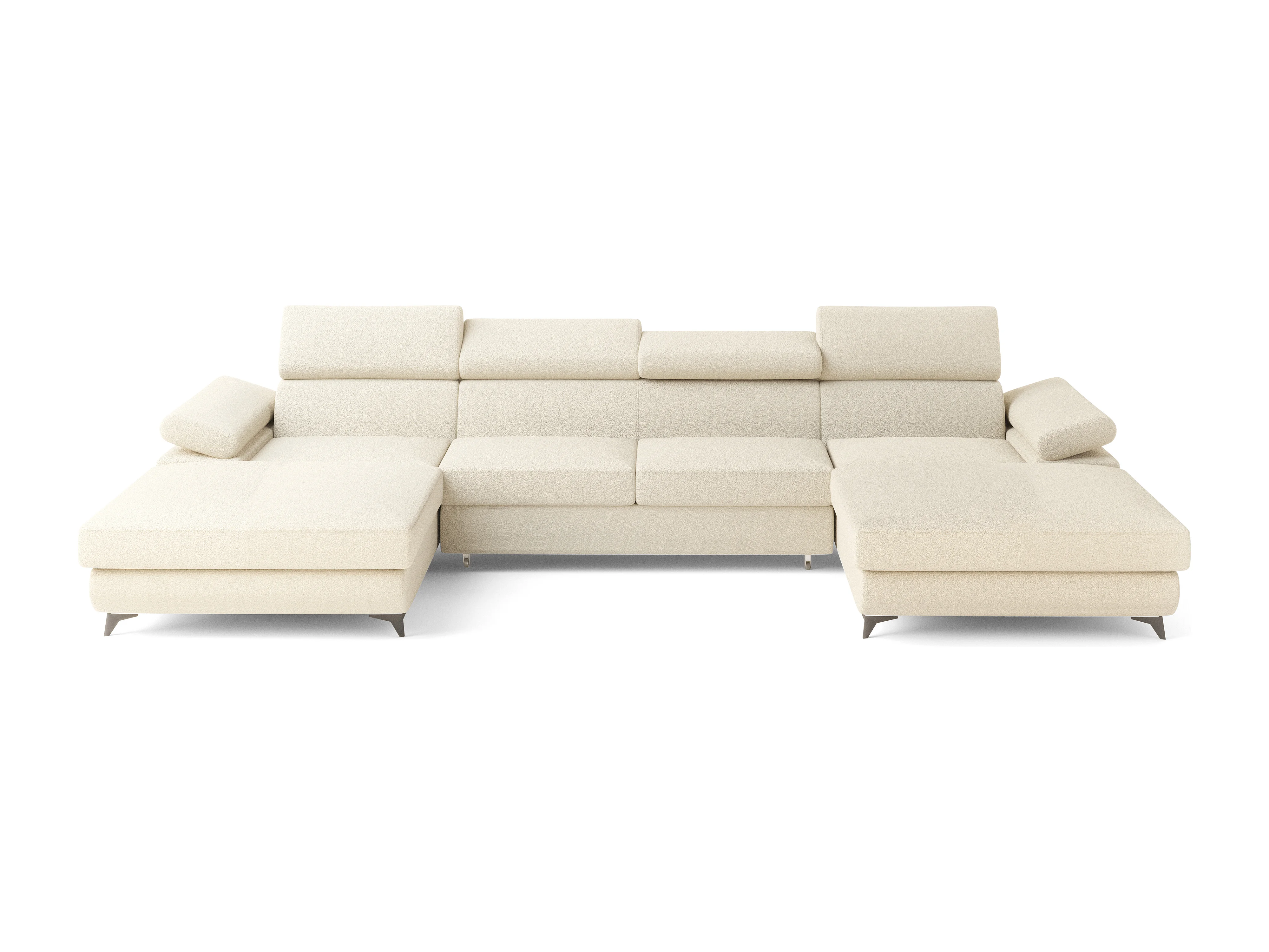 Hoekbank DETTI van fluweel met slaapfunctie Creme