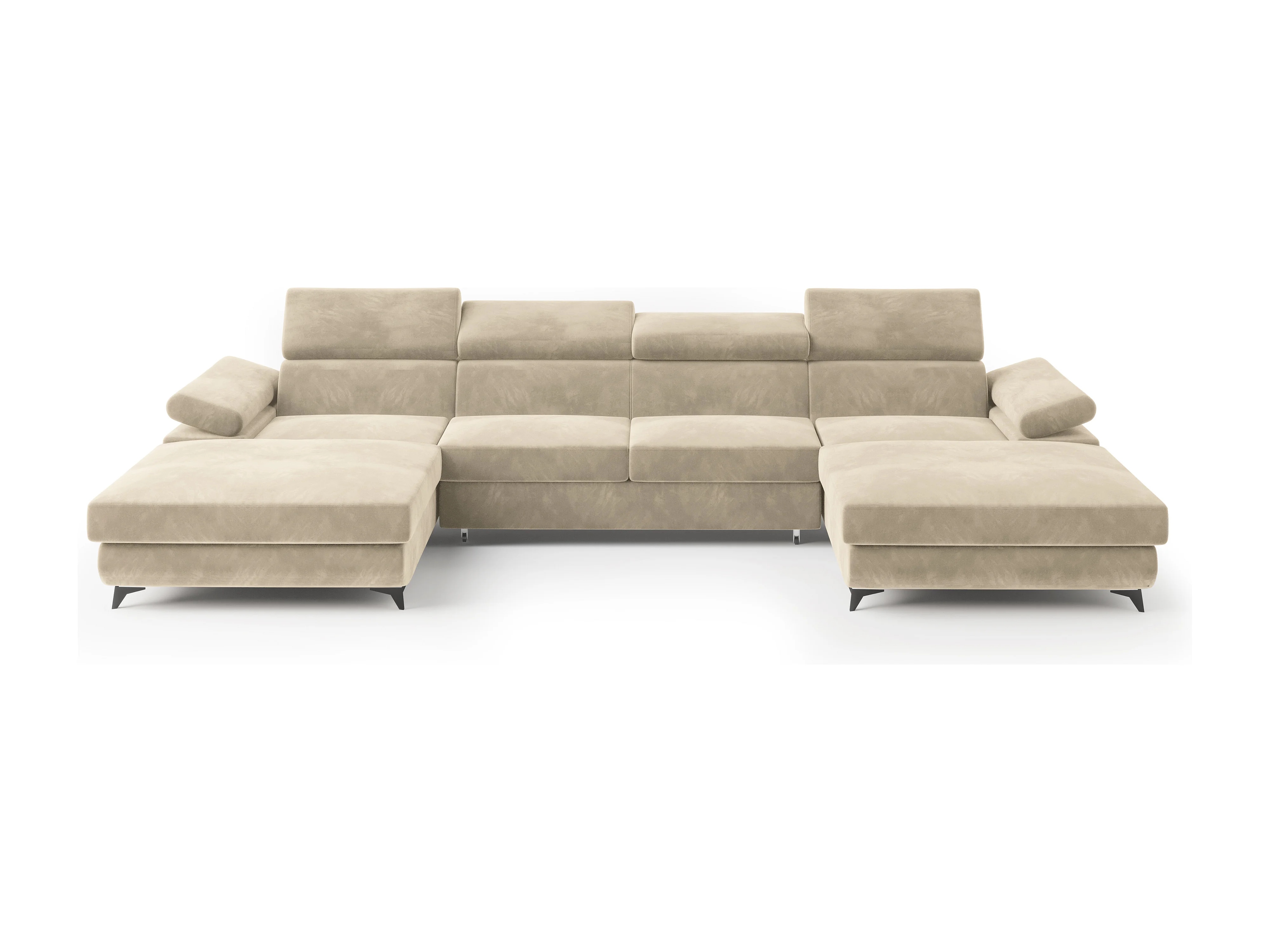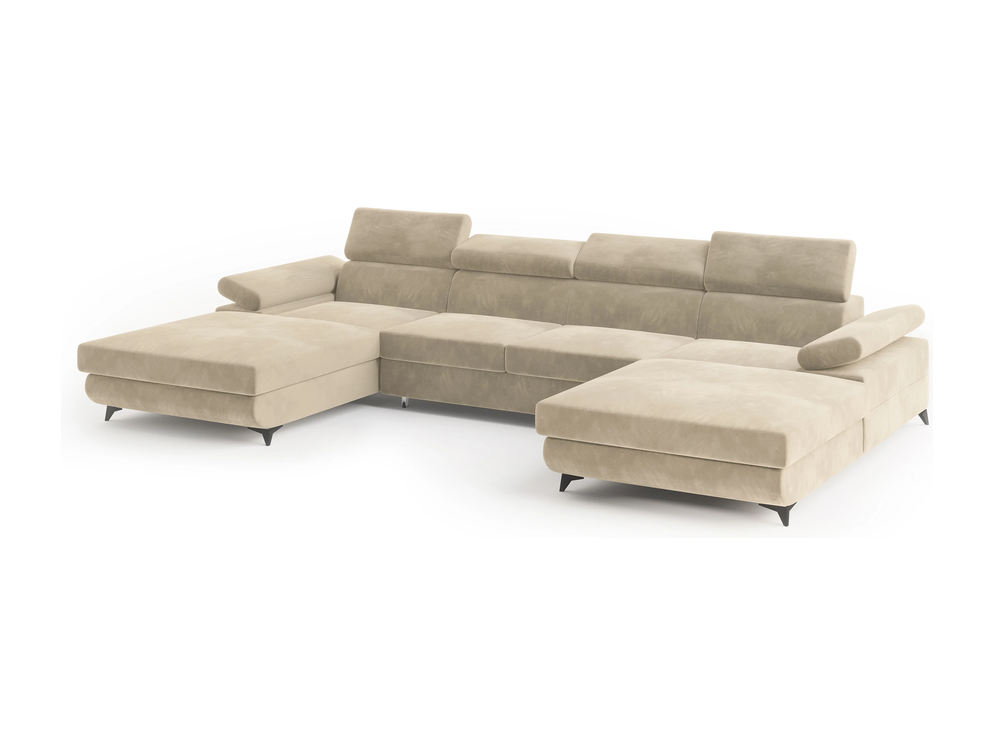 Hoekbank DETTI van fluweel met slaapfunctie Creme