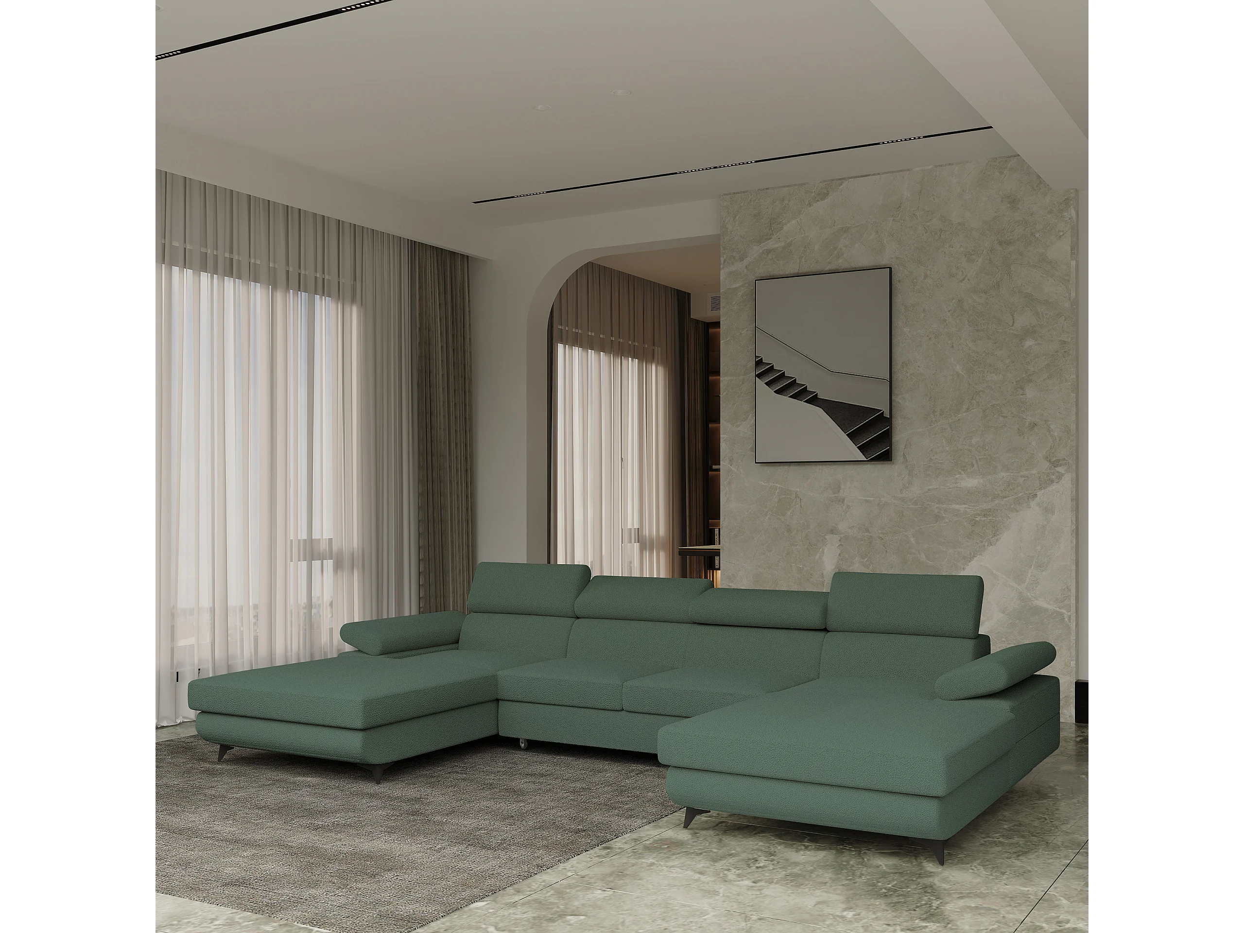 Hoekbank DETTI van fluweel met slaapfunctie Grün