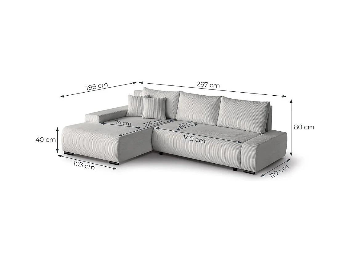 HOEKBANK met slaapfunctie Hektor lichtgrijs
