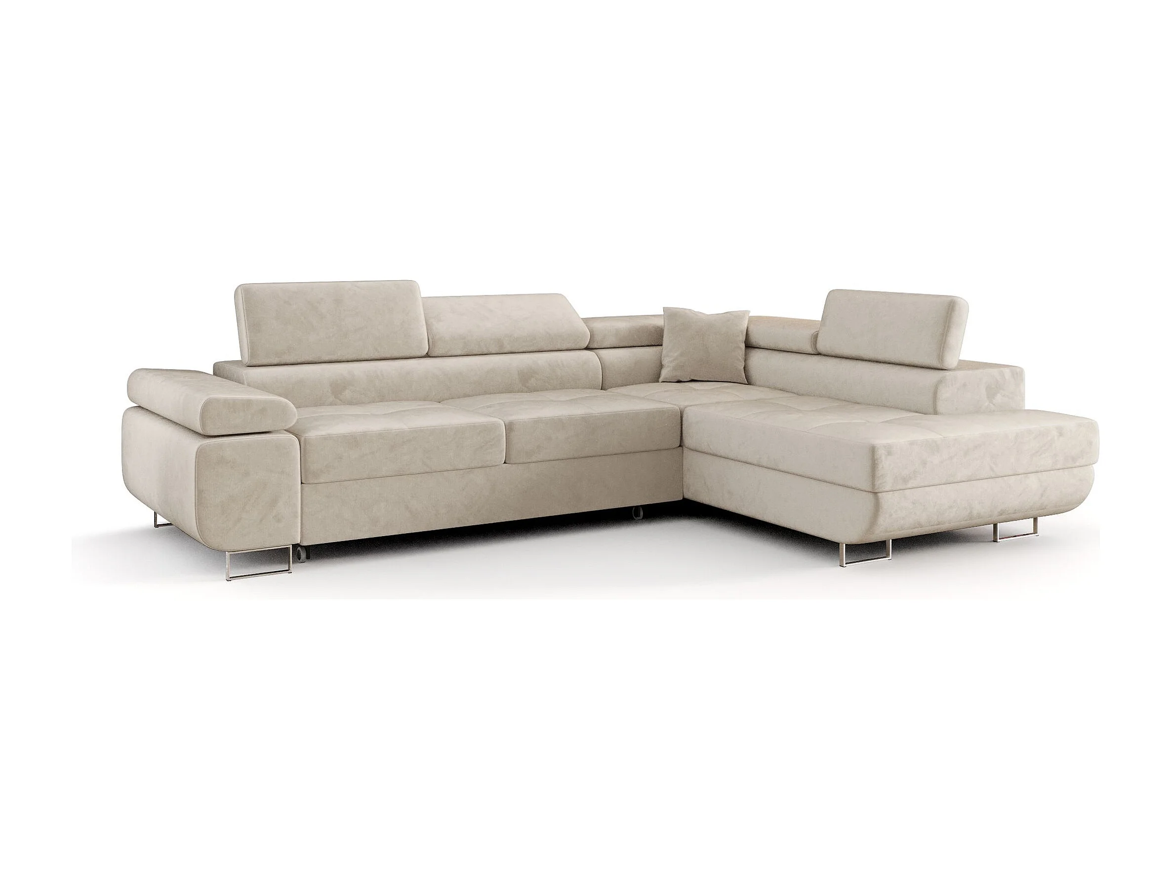 HOEKBANK EMILY met slaapfunctie Monolith 02 Beige Rechts L-vorm bank met opbergruimte, slaapbank, woonkamerbank