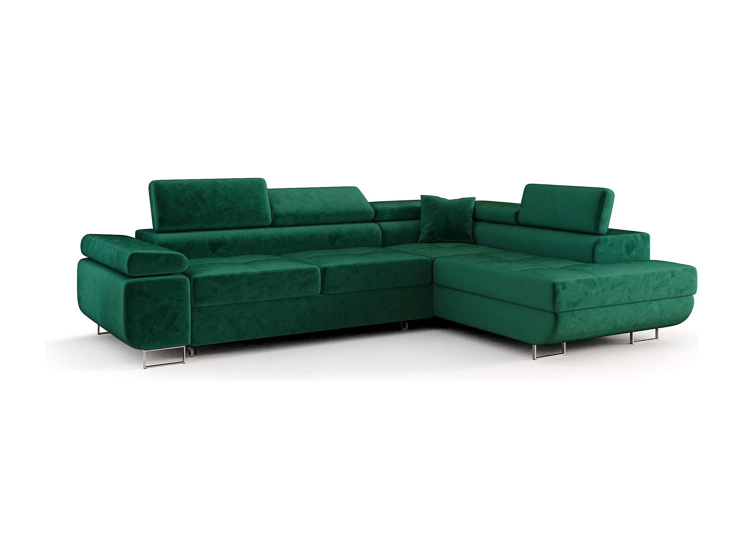 Hoekbank met slaapfunctie SAVIO Poso 14 donkergroen rechts L-vormige bank met opbergruimte woonkamerbank, slaapbank, bank met opbergruimte