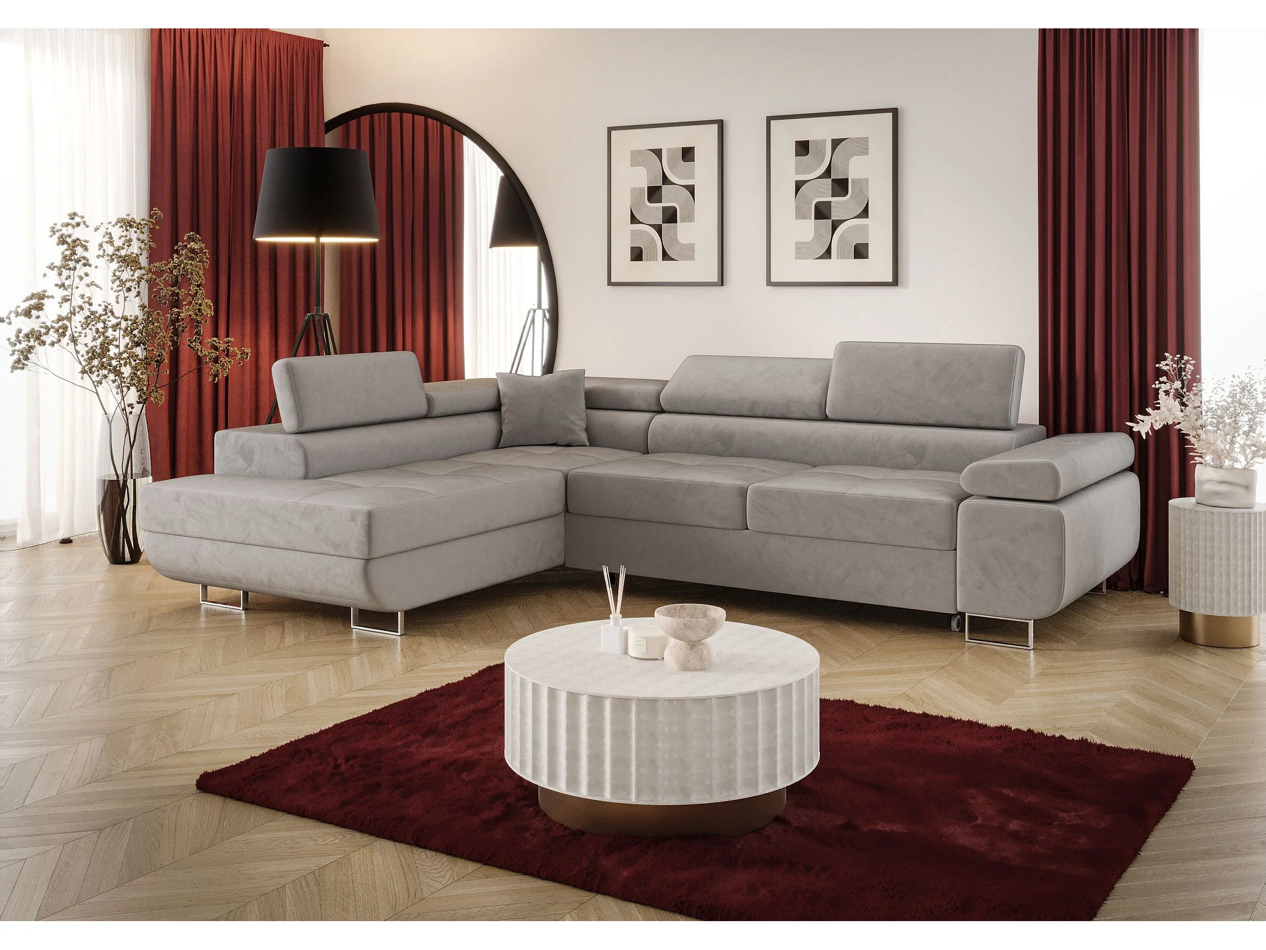 Hoekbank met slaapfunctie SAVIO Poso 34 grijs links L-vormige bank met opbergruimte woonkamerbank, slaapbank, bank met opbergruimte