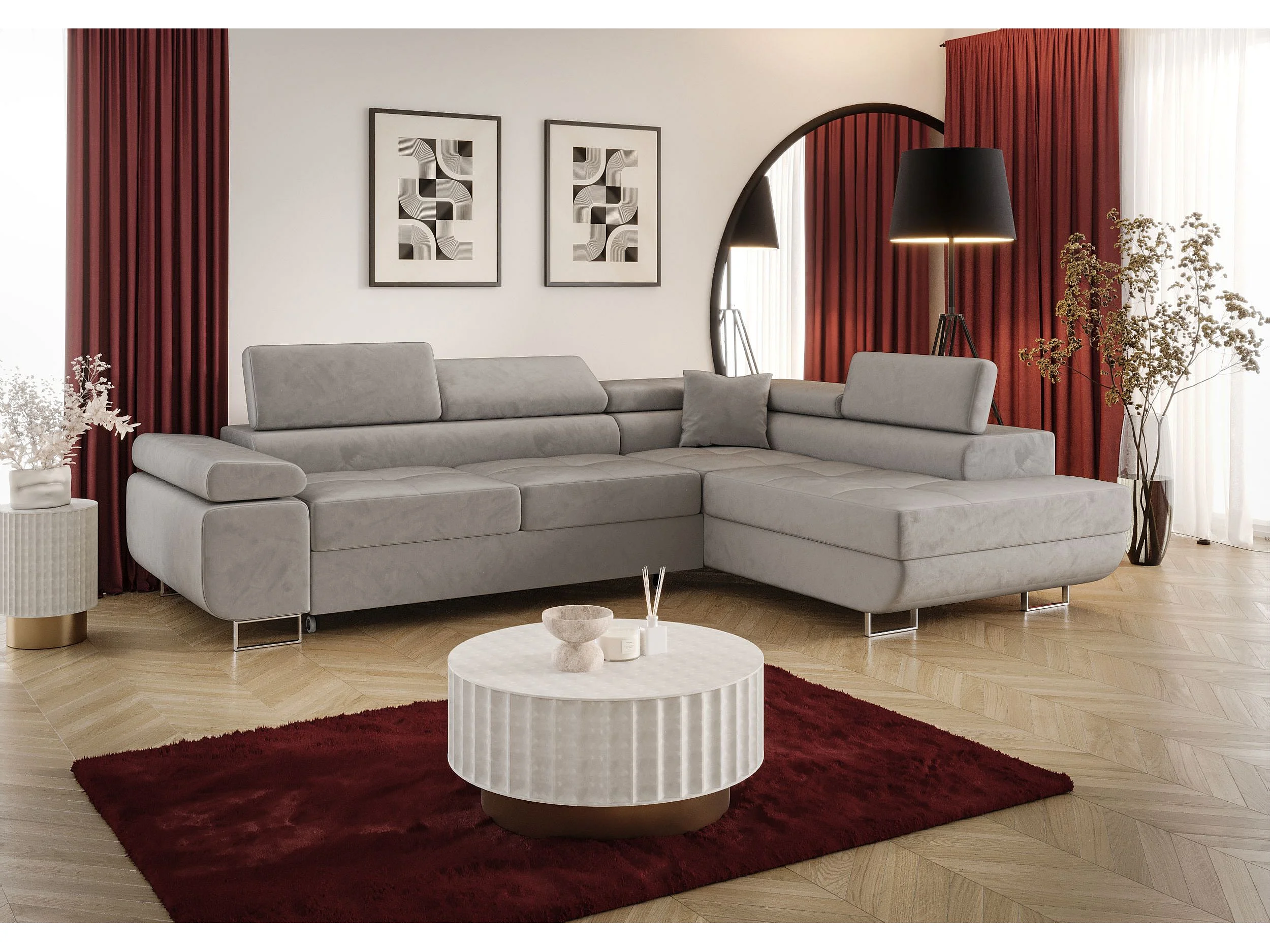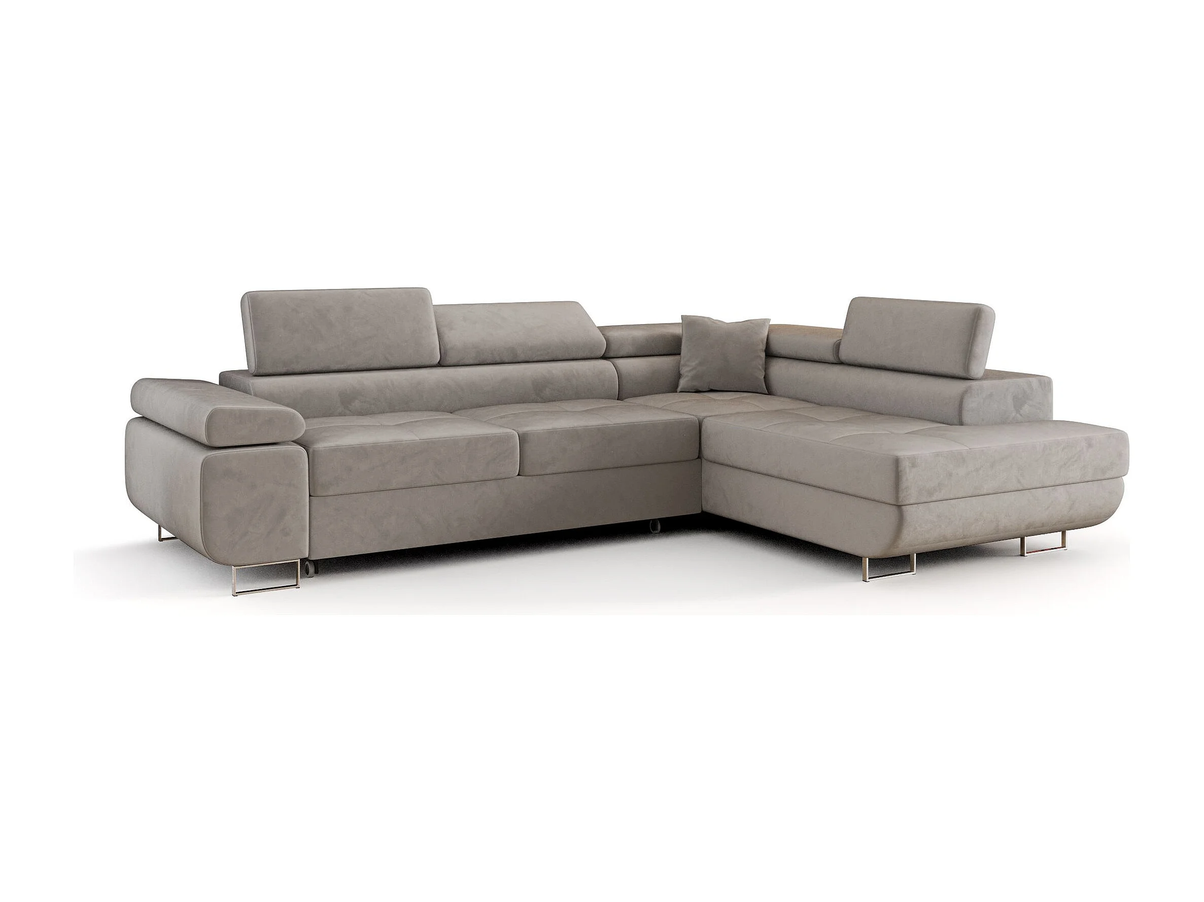Hoekbank met slaapfunctie SAVIO MINI Curio 83 grijs rechts L-vormige bank met opbergruimte woonkamerbank, slaapbank, bank met opbergruimte