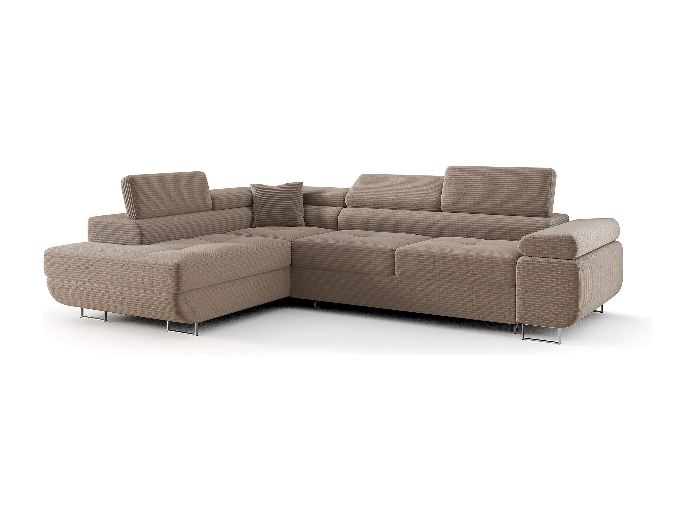 HOEKBANK EMILY met slaapfunctie Poso 02 Lichtbruin Links L-vorm bank met opbergruimte, slaapbank, woonkamerbank