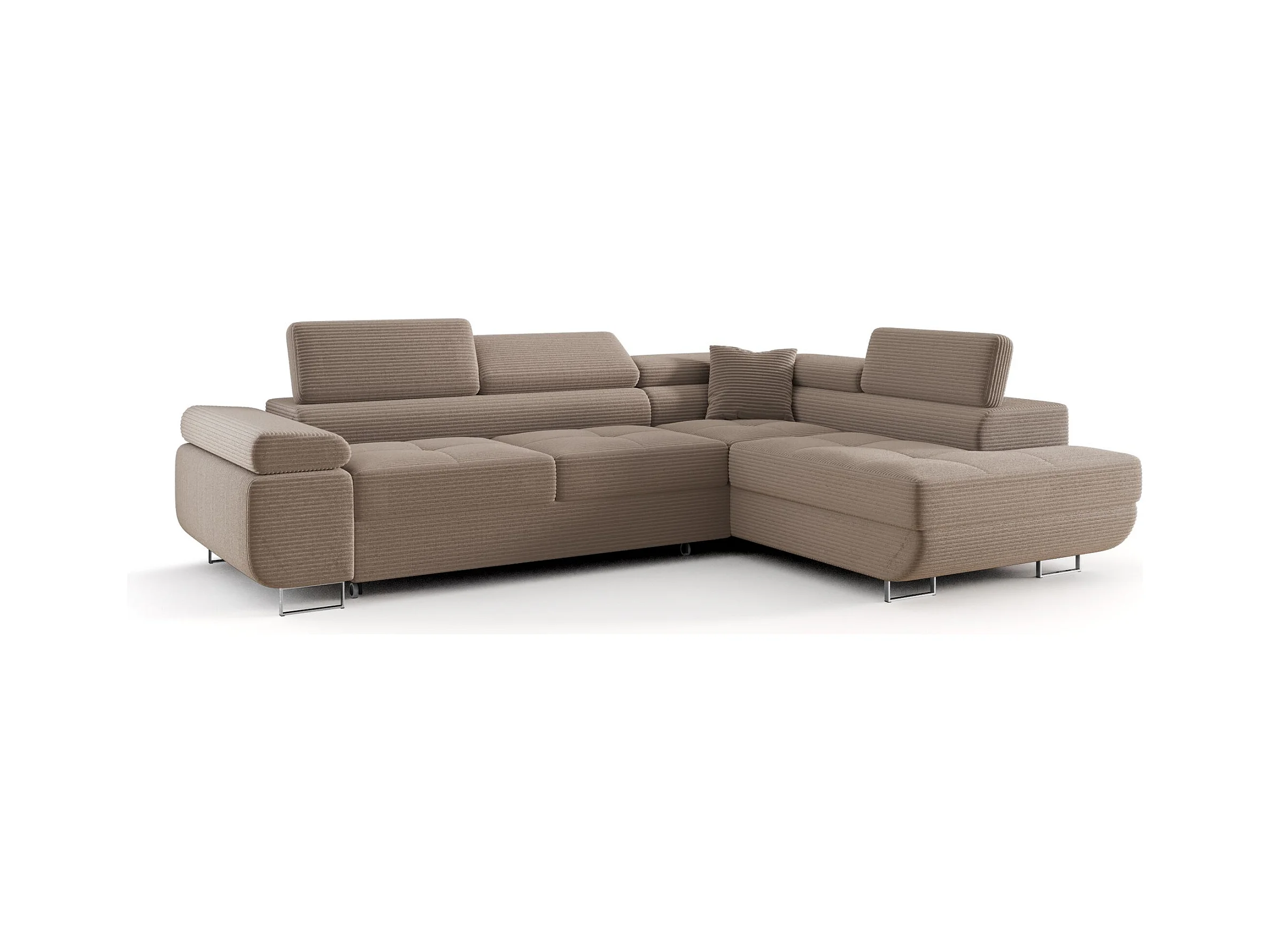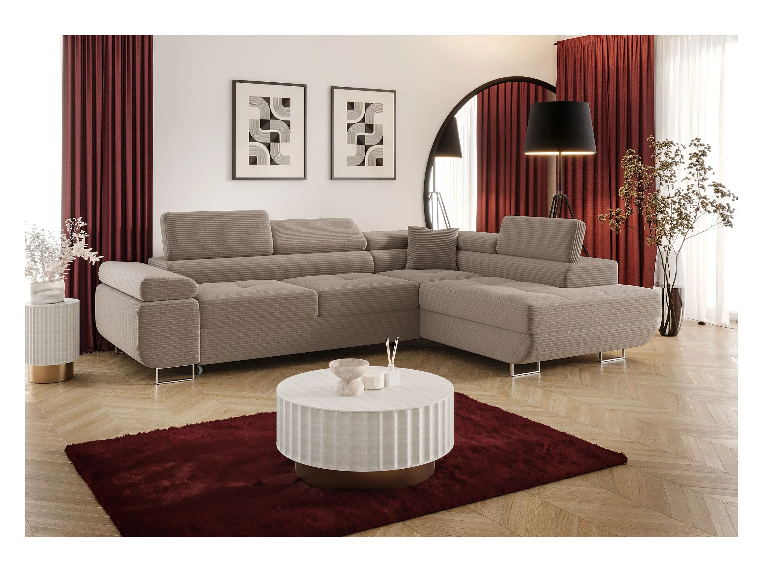 Hoekbank met slaapfunctie SAVIO Poso 02 lichtbruin rechts L-vormige bank met opbergruimte woonkamerbank, slaapbank, bank met opbergruimte