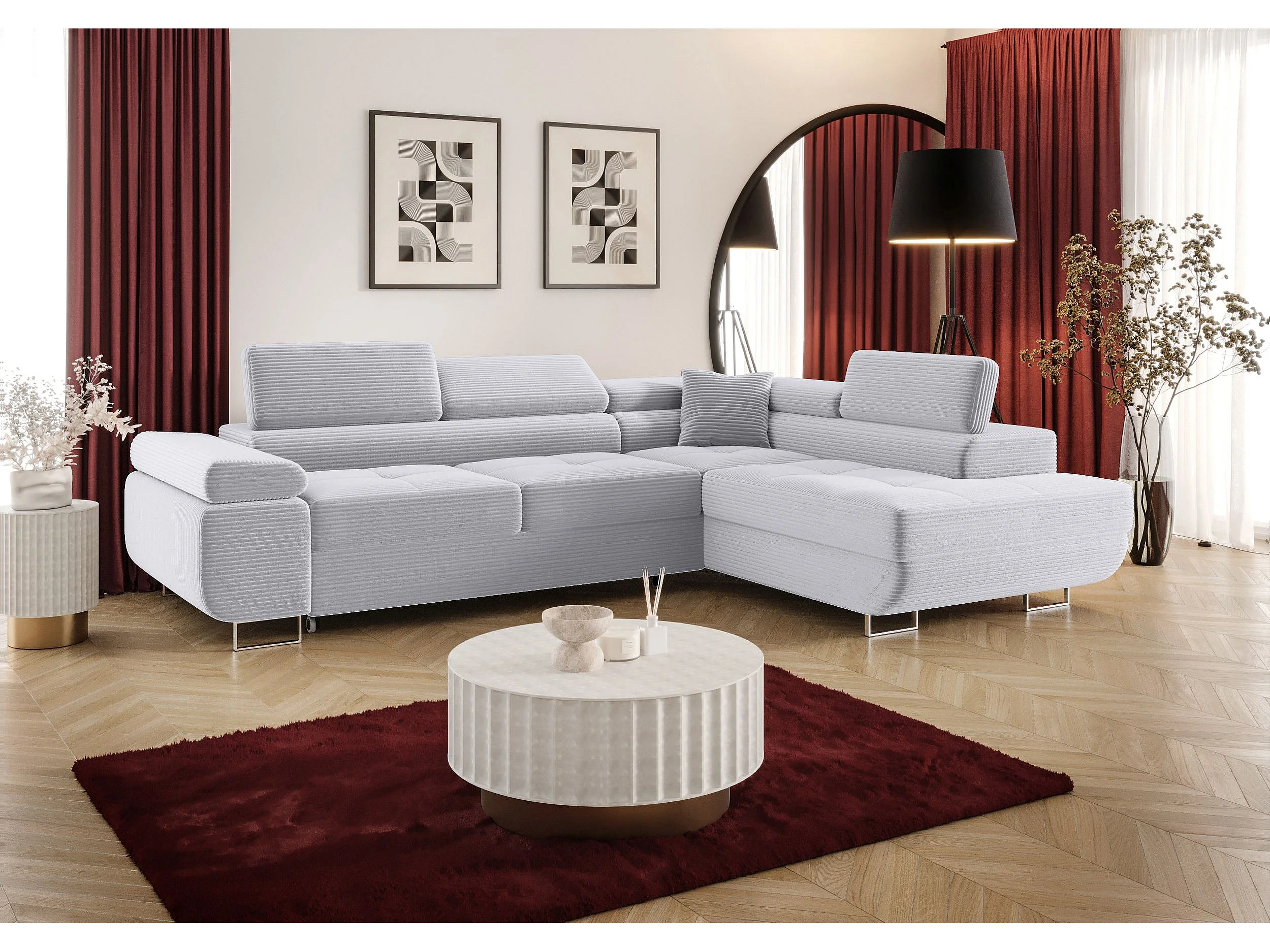 HOEKBANK EMILY met slaapfunctie Poso 110 Lichtgrijs Rechts L-vorm bank met opbergruimte, slaapbank, woonkamerbank