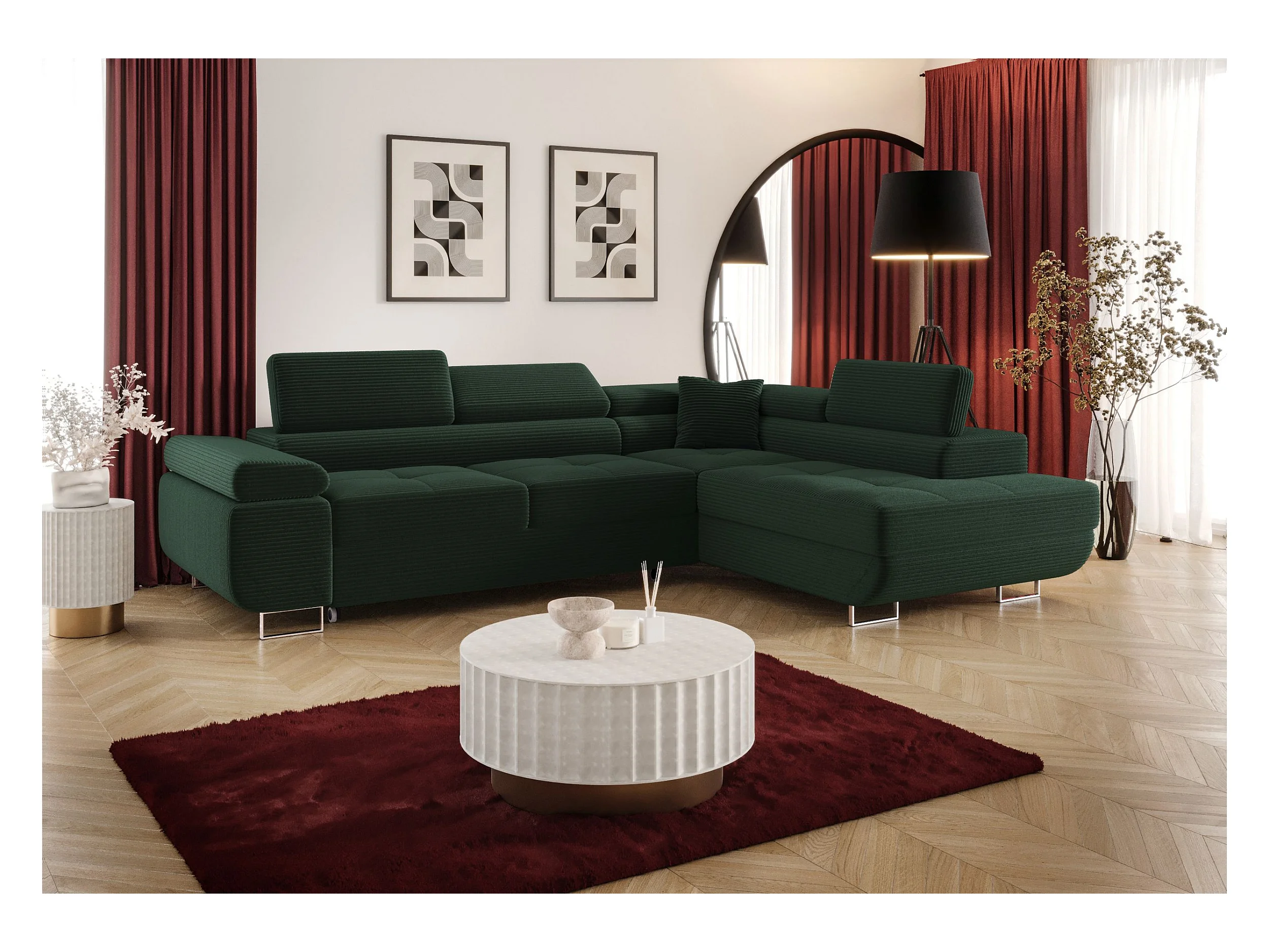 Hoekbank met slaapfunctie SAVIO Poso 14 donkergroen rechts L-vormige bank met opbergruimte woonkamerbank, slaapbank, bank met opbergruimte