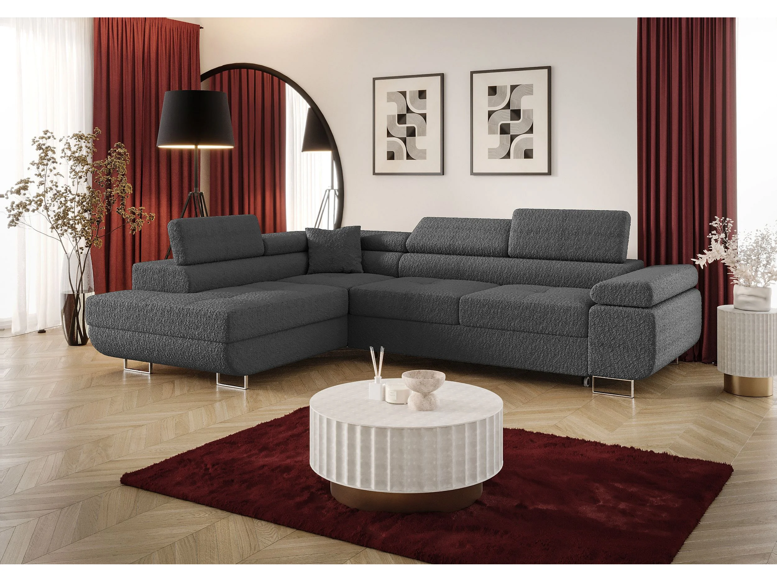 BEDANTE Hoekbank MOS L Cosmic 160 Grijs Links met slaapfunctie, L-vormige bank met opbergruimte, slaapbank, bedbank