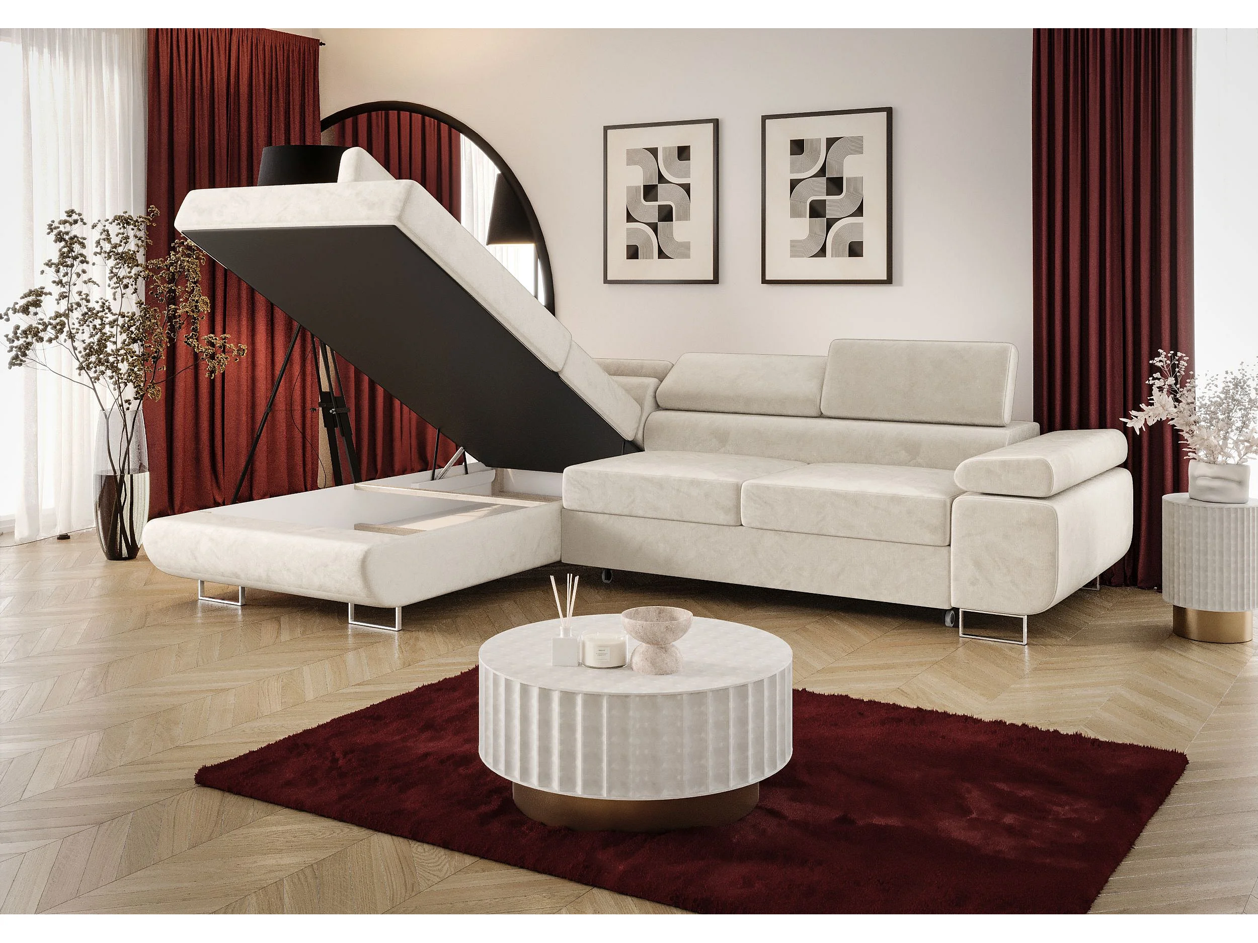 Hoekbank met slaapfunctie SAVIO Curio 80 lichtgrijs links L-vormige bank met opbergruimte woonkamerbank, slaapbank, bank met opbergruimte