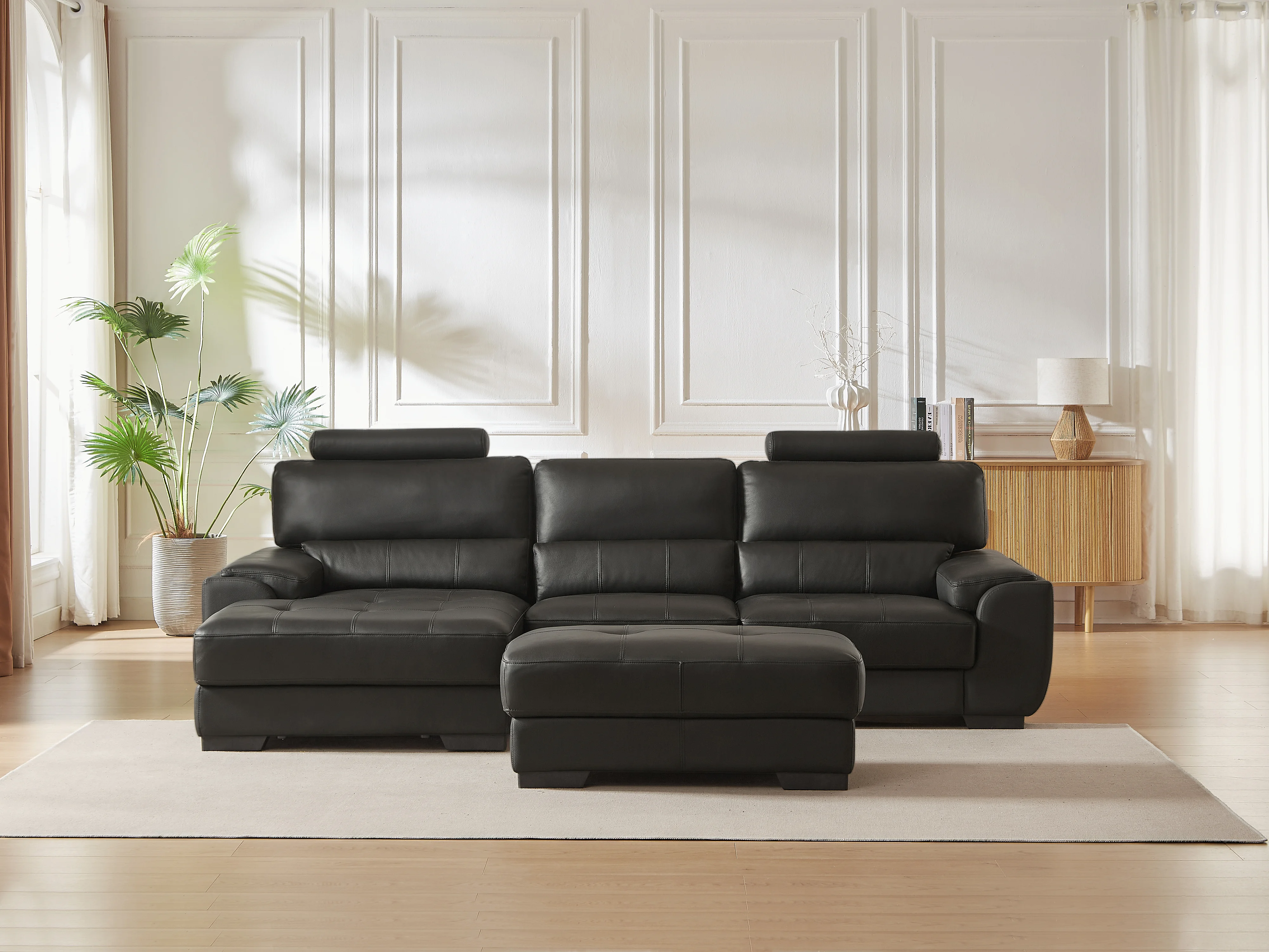 Hoekbank en poef van leer METROPOLITAN II - zwart - hoek links