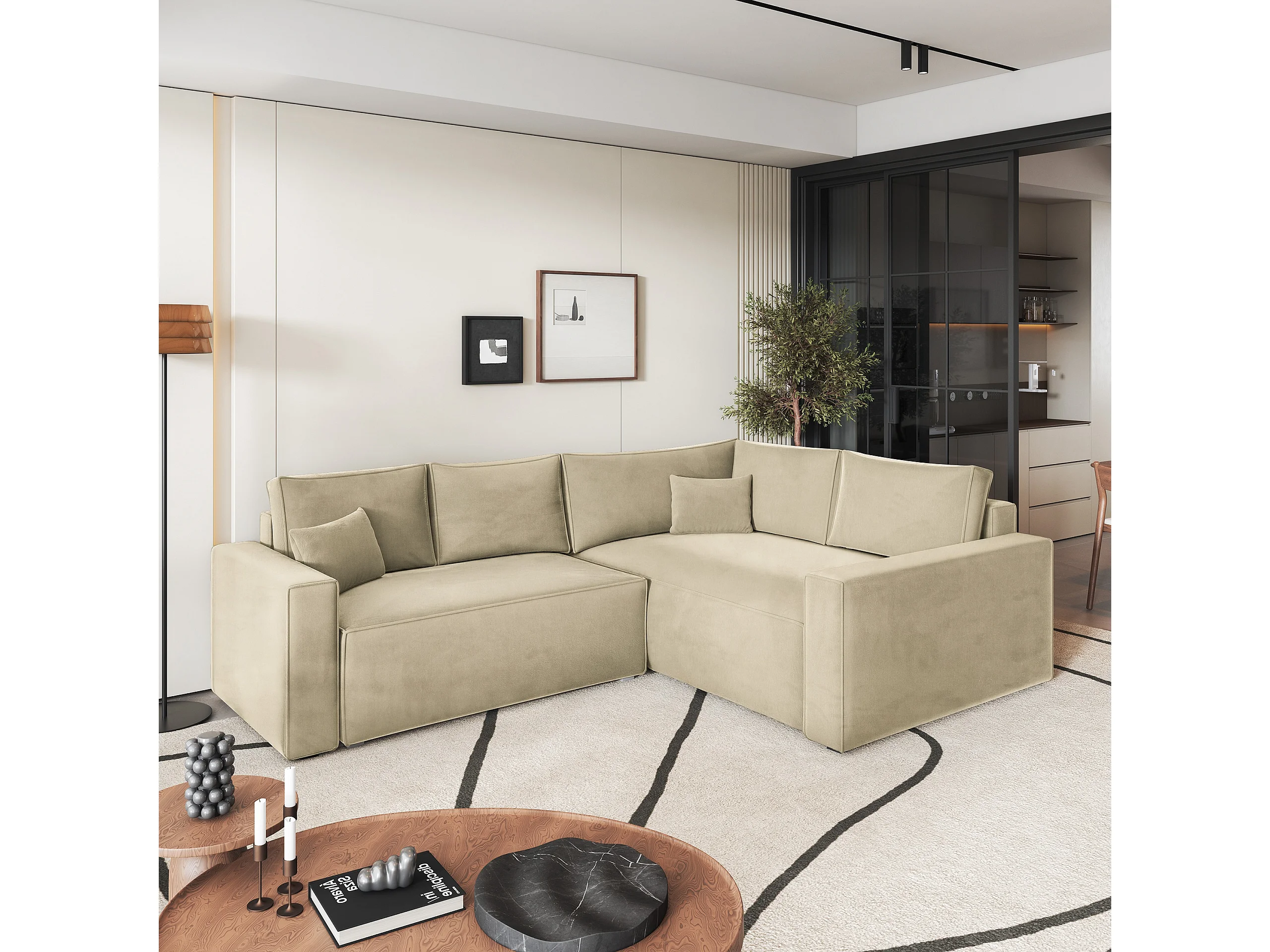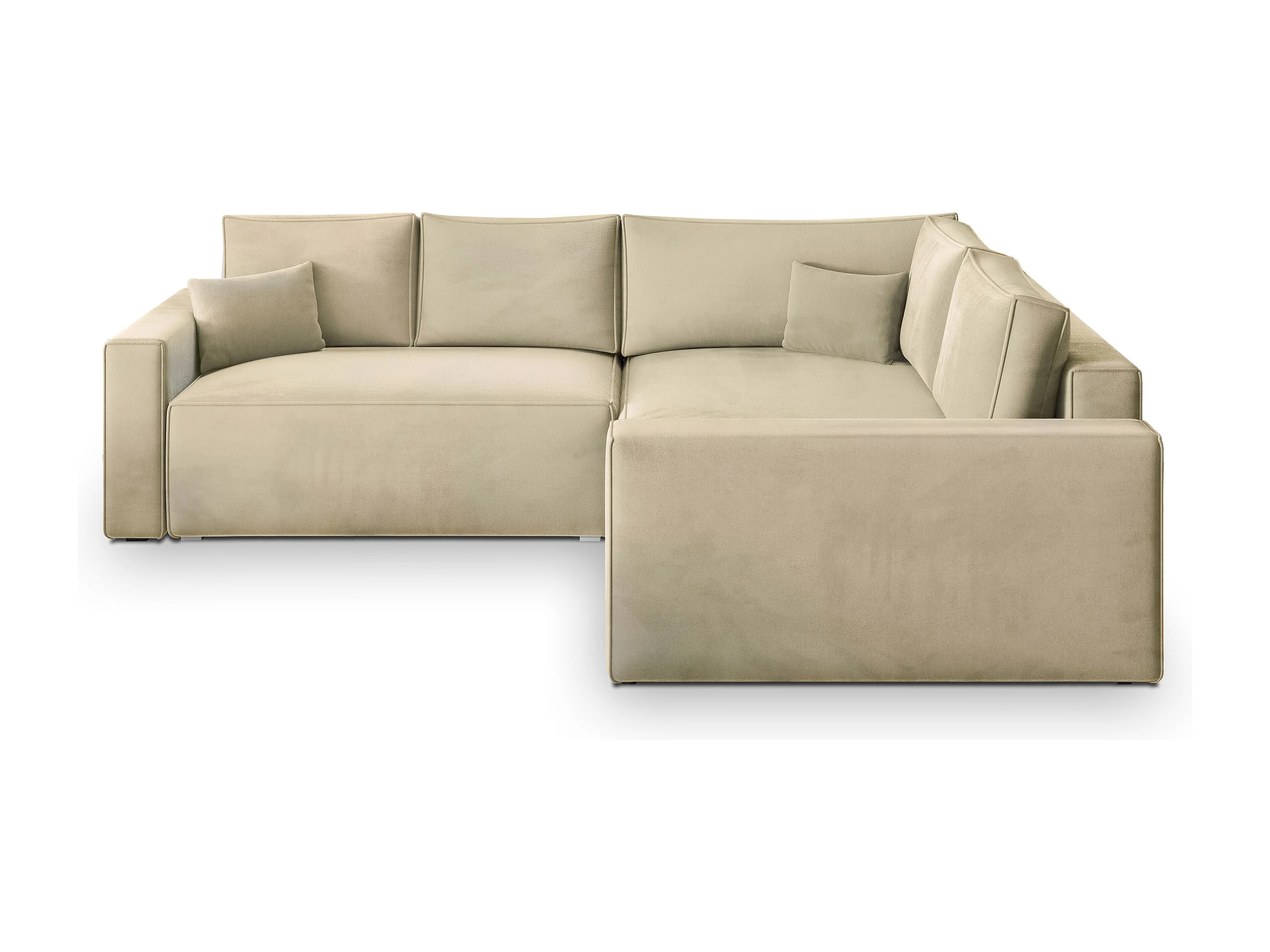Hoekbank ERONIS van fluweel met slaapfunctie Creme