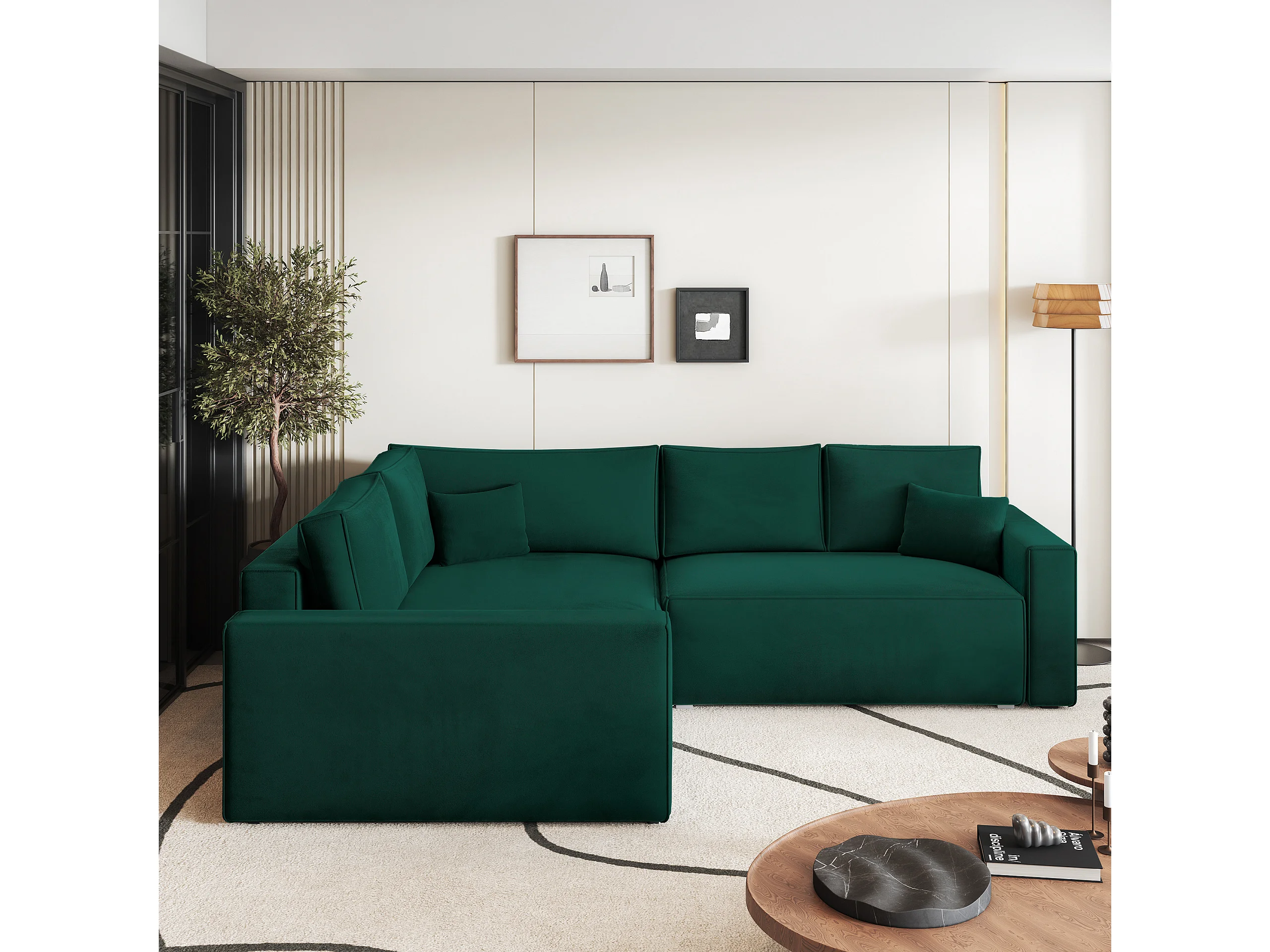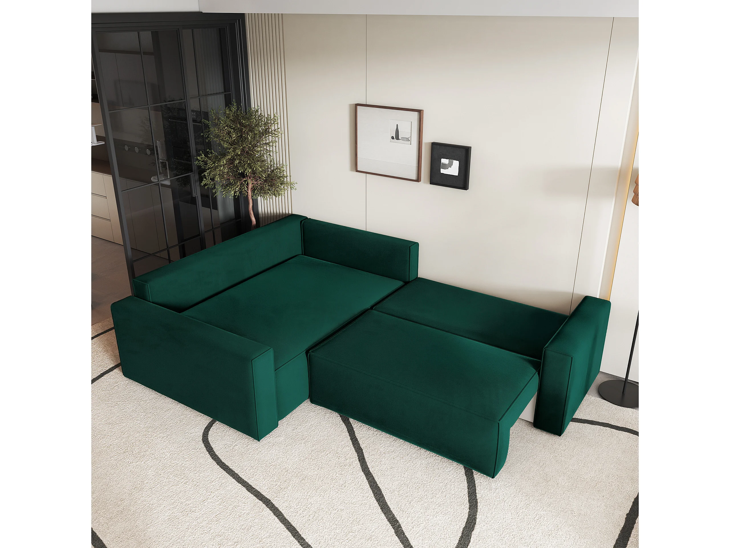 Hoekbank ERONIS van fluweel met slaapfunctie Grün