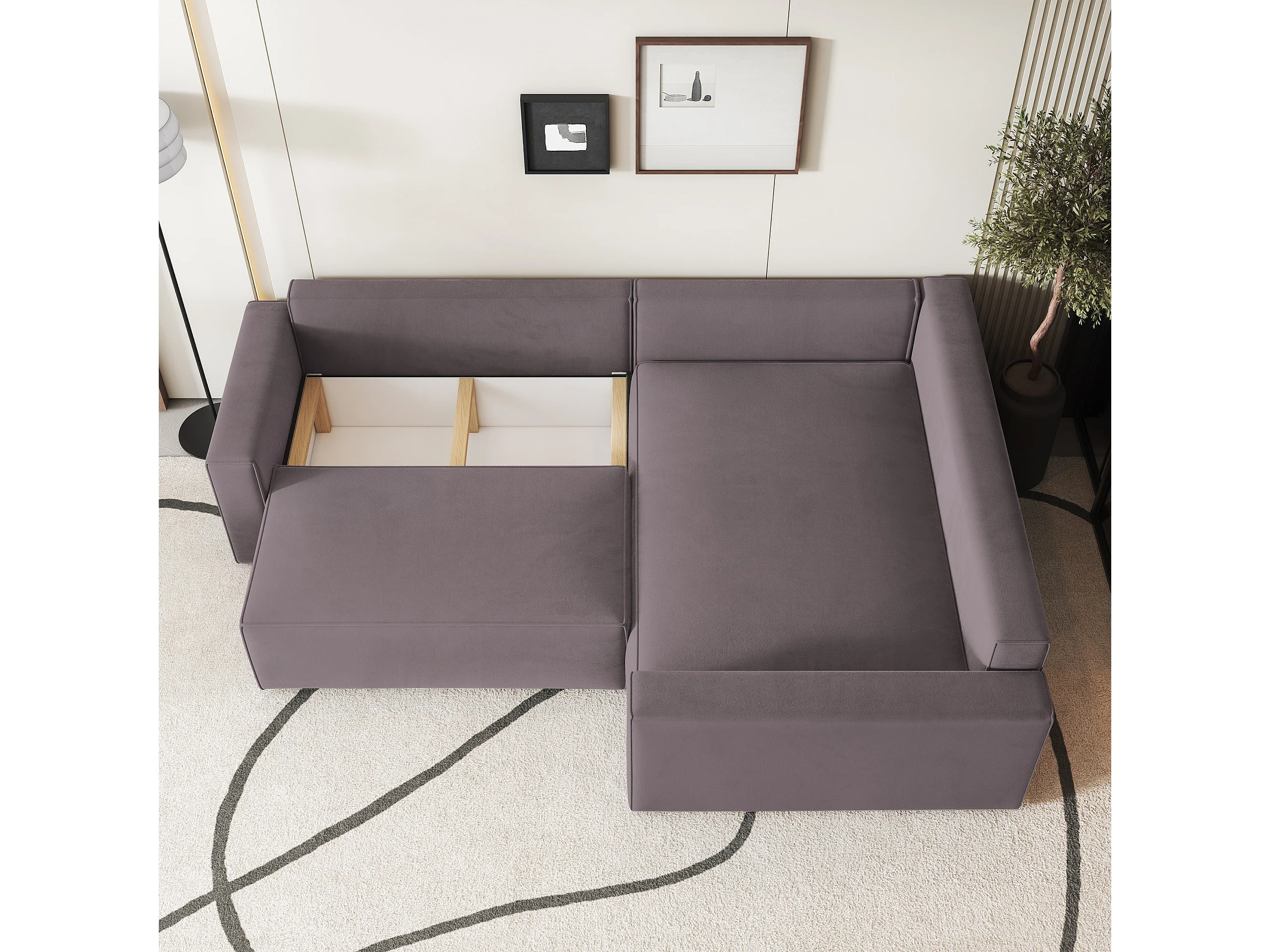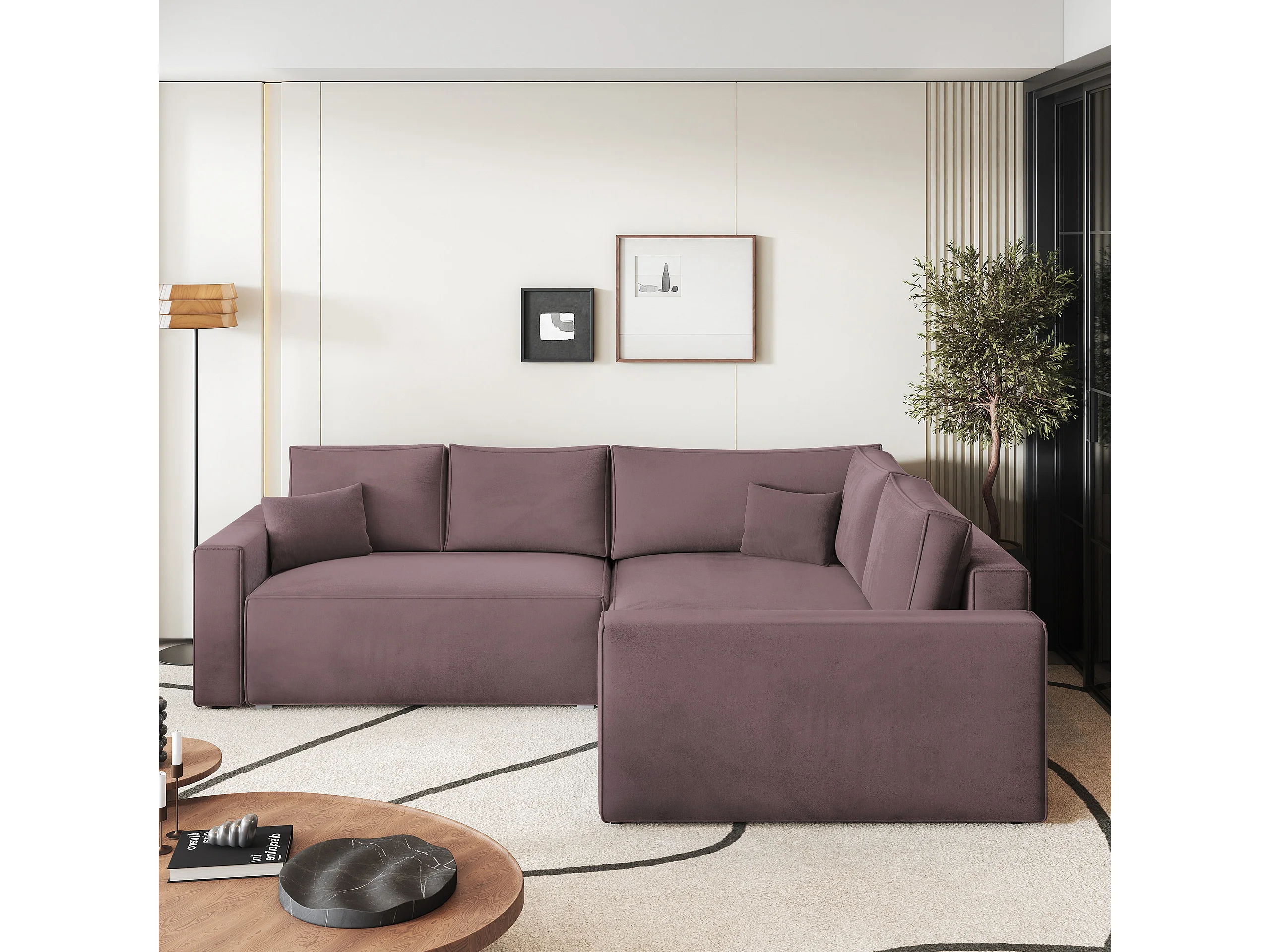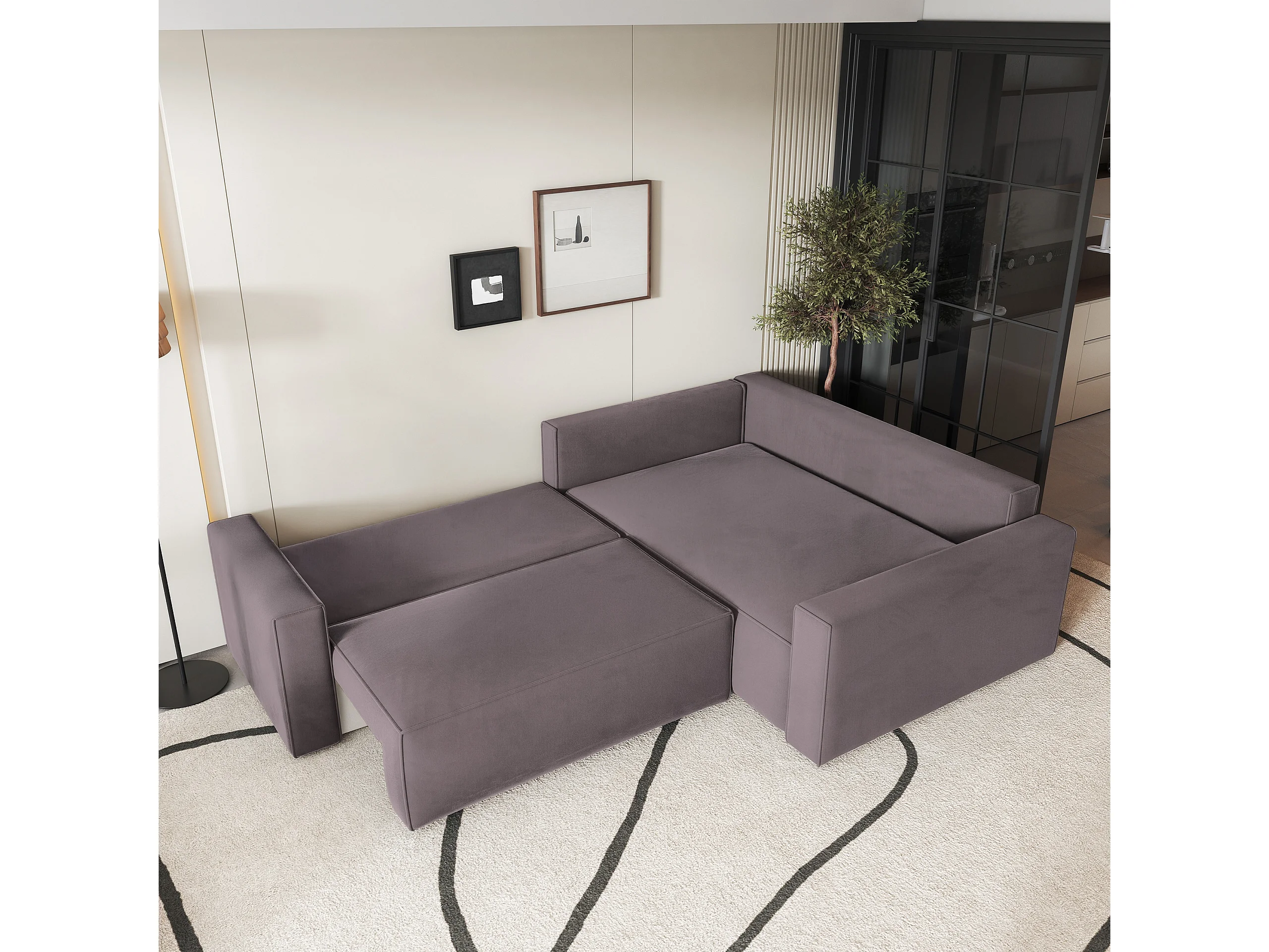 Hoekbank ERONIS van fluweel met slaapfunctie Lila