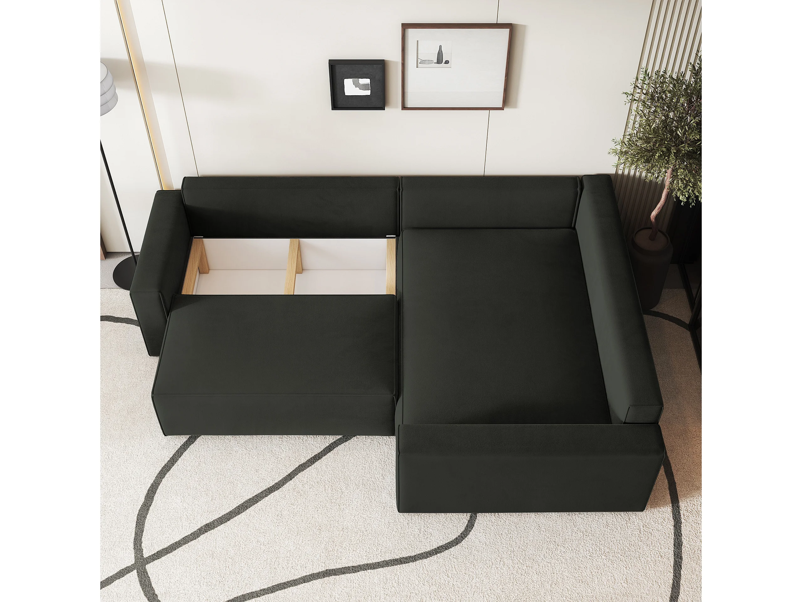 Hoekbank ERONIS van fluweel met slaapfunctie Schwarz
