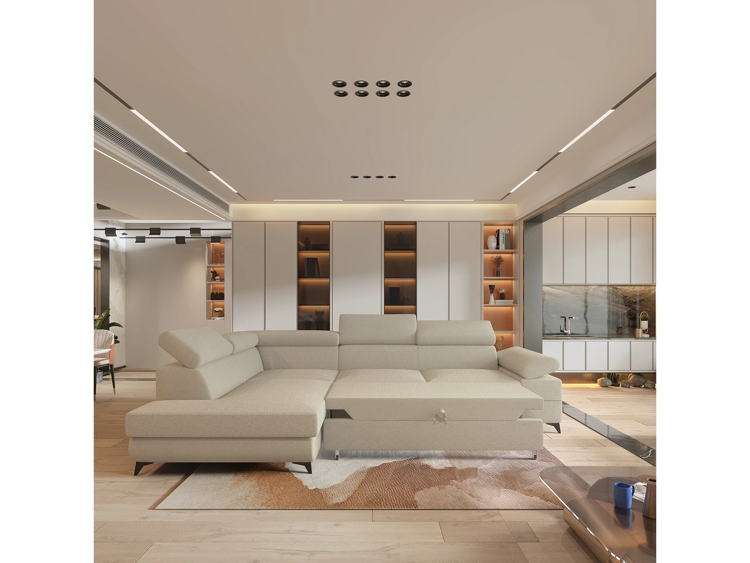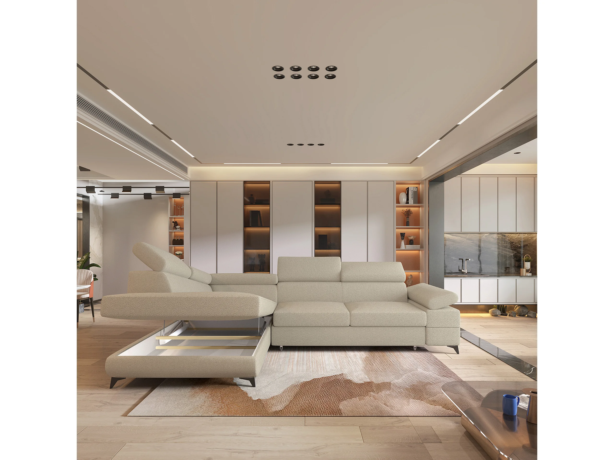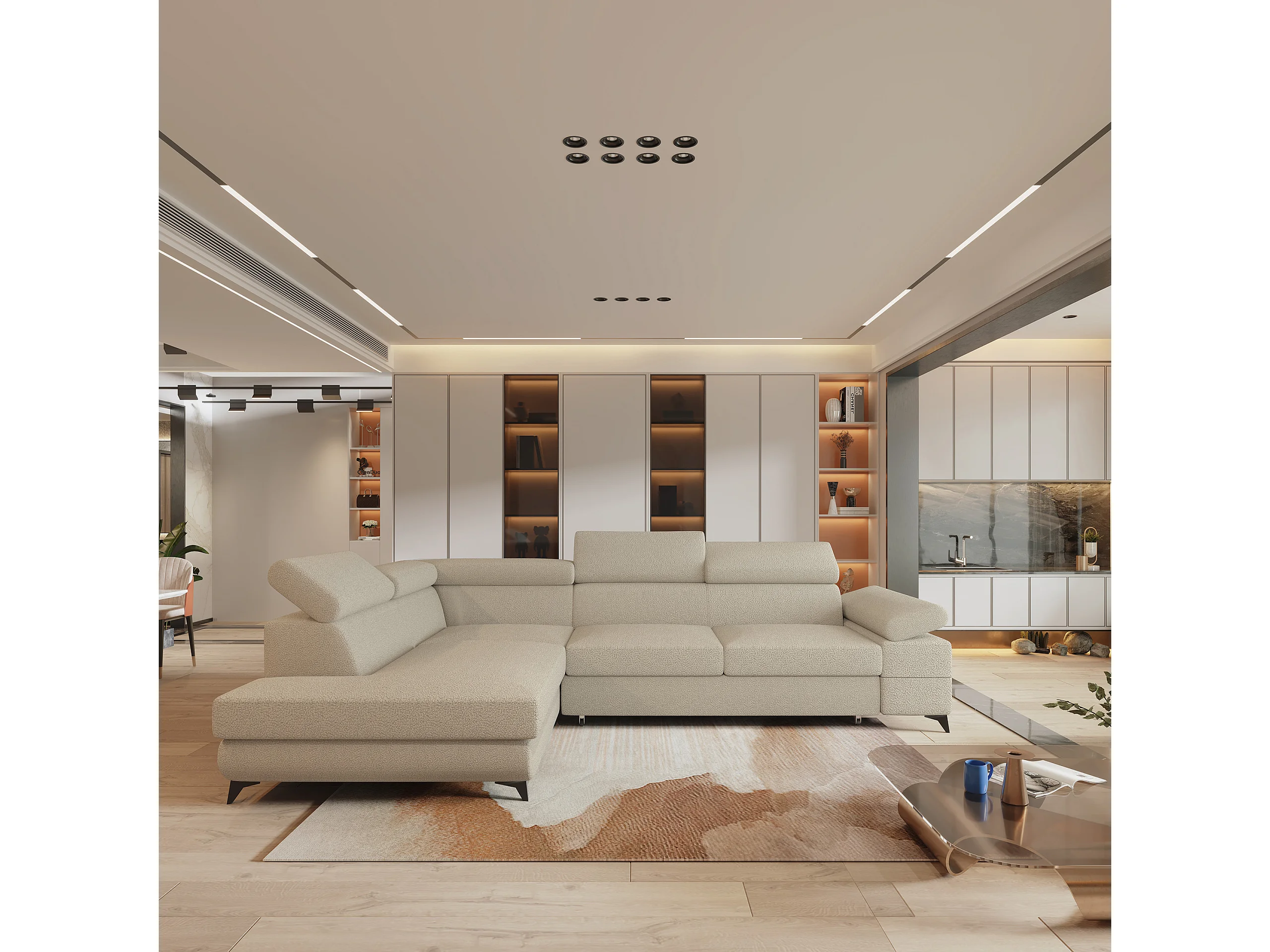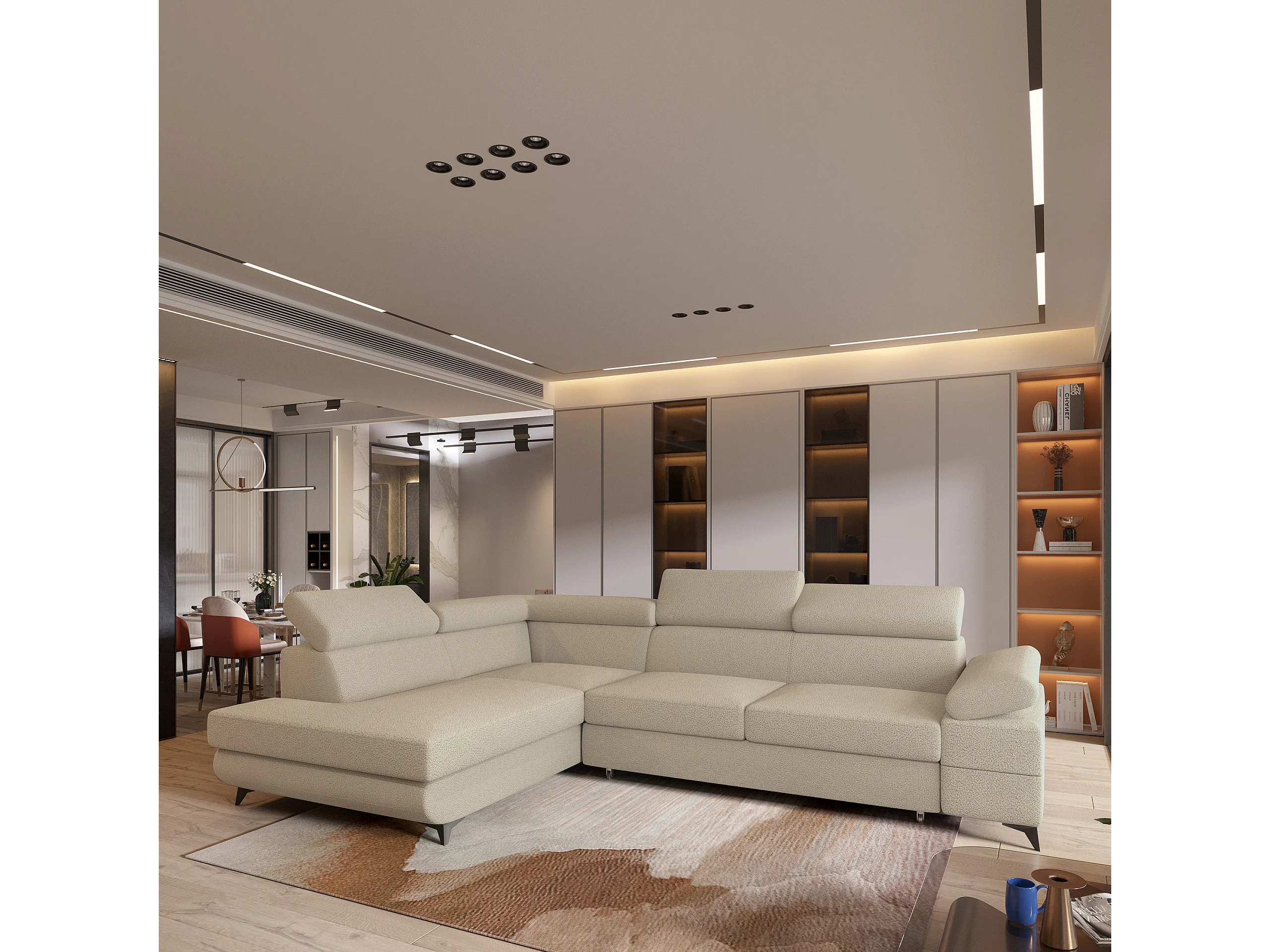 Hoekbank FAVIEN van fluweel met slaapfunctie Beige