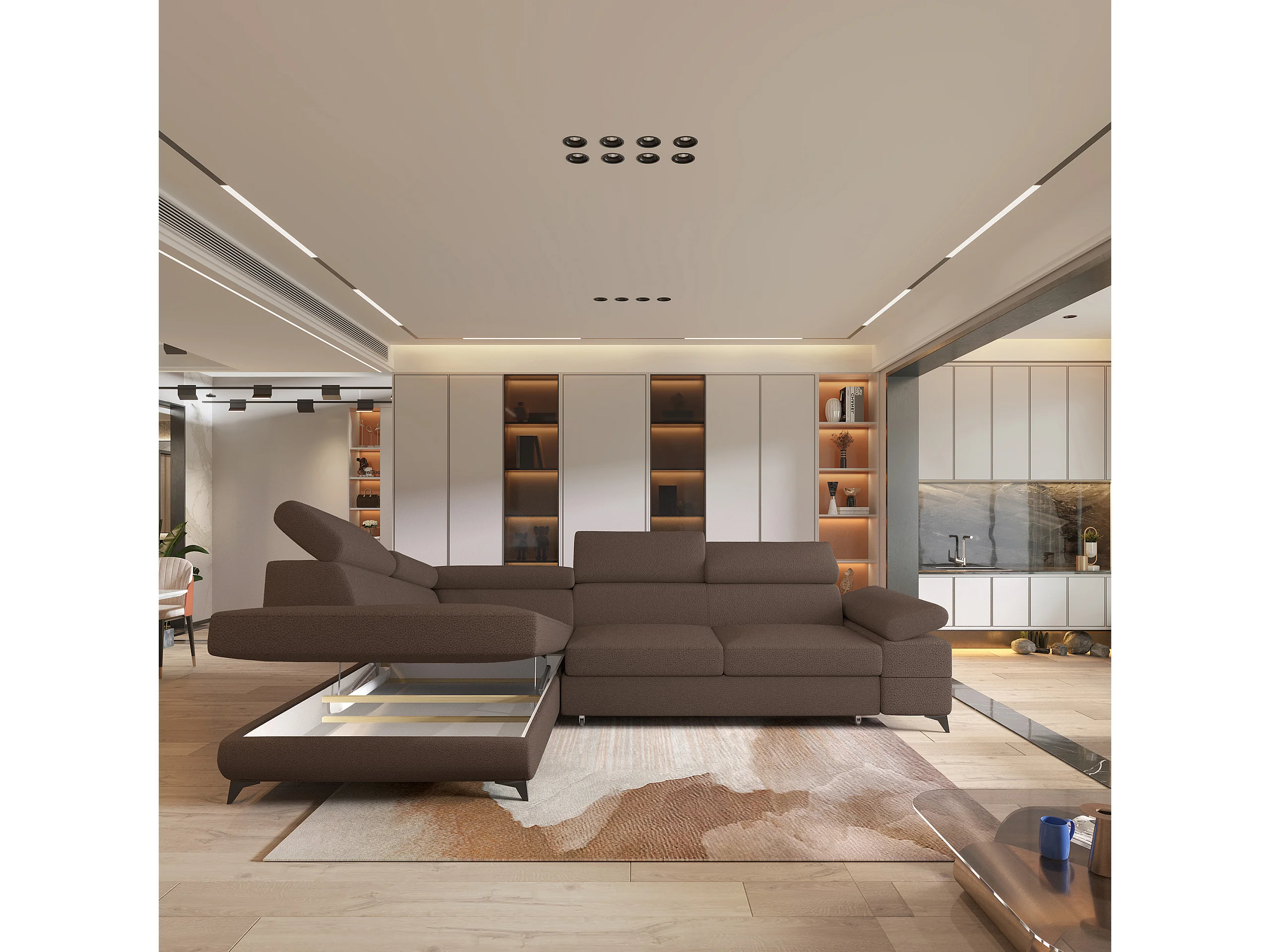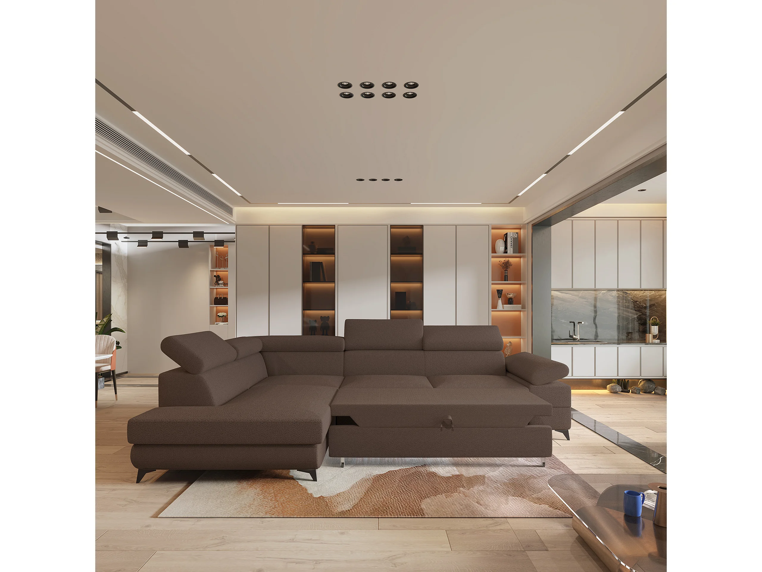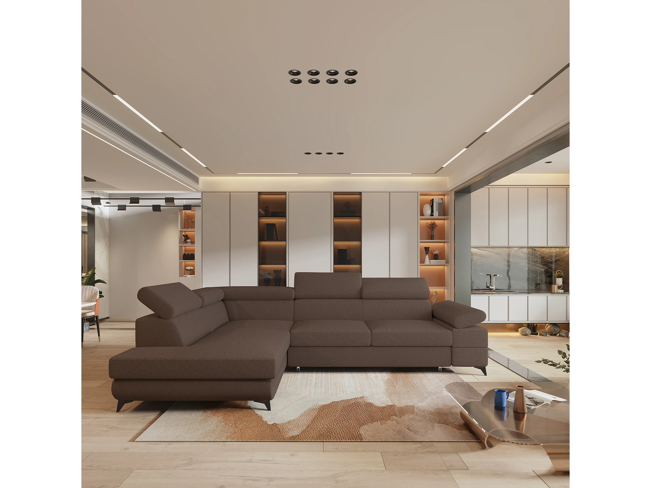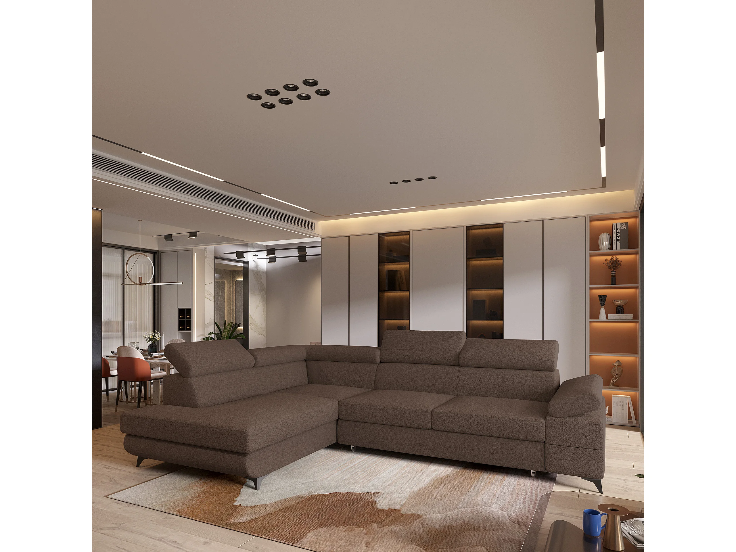 Hoekbank FAVIEN van fluweel met slaapfunctie Braun