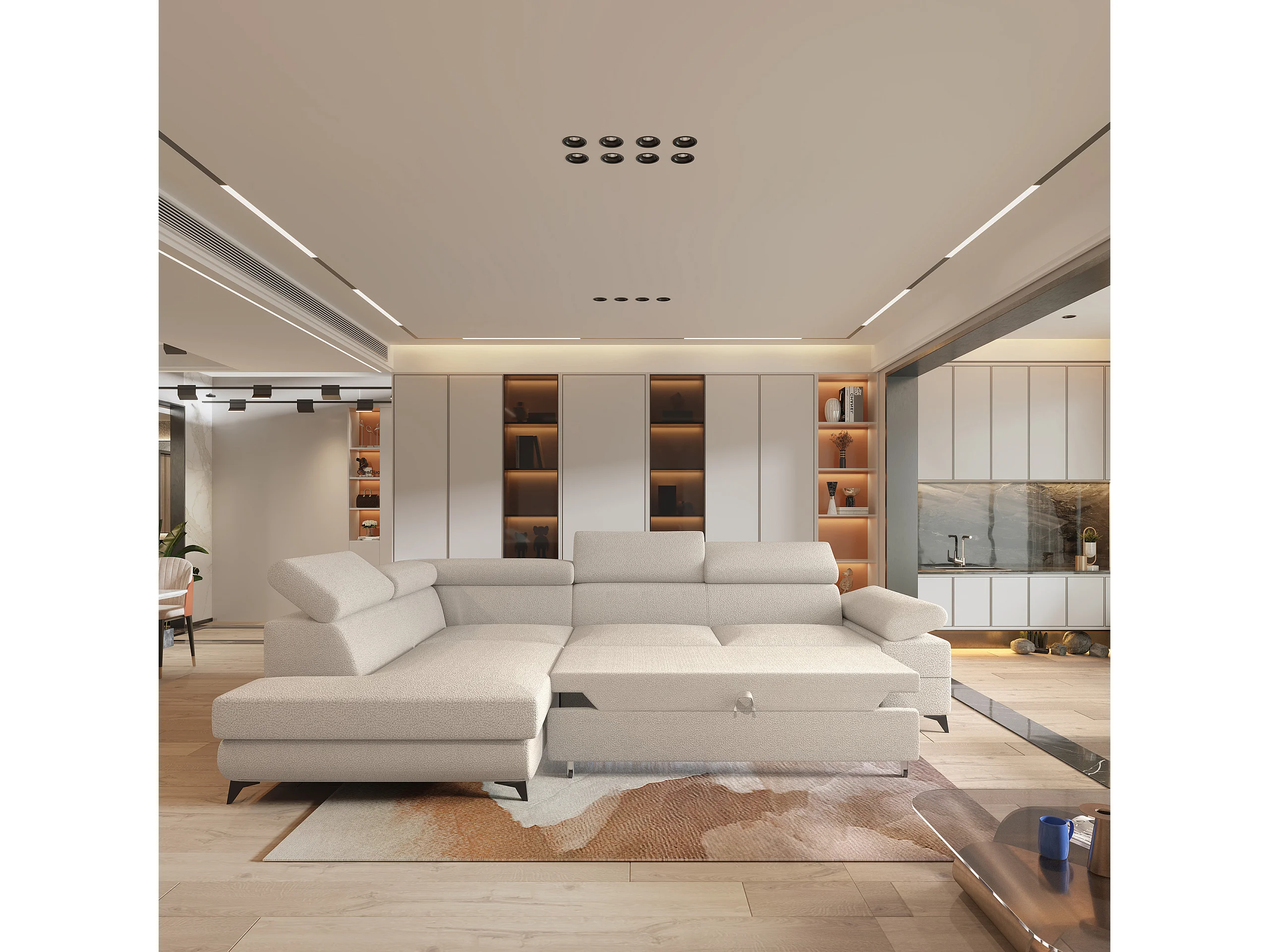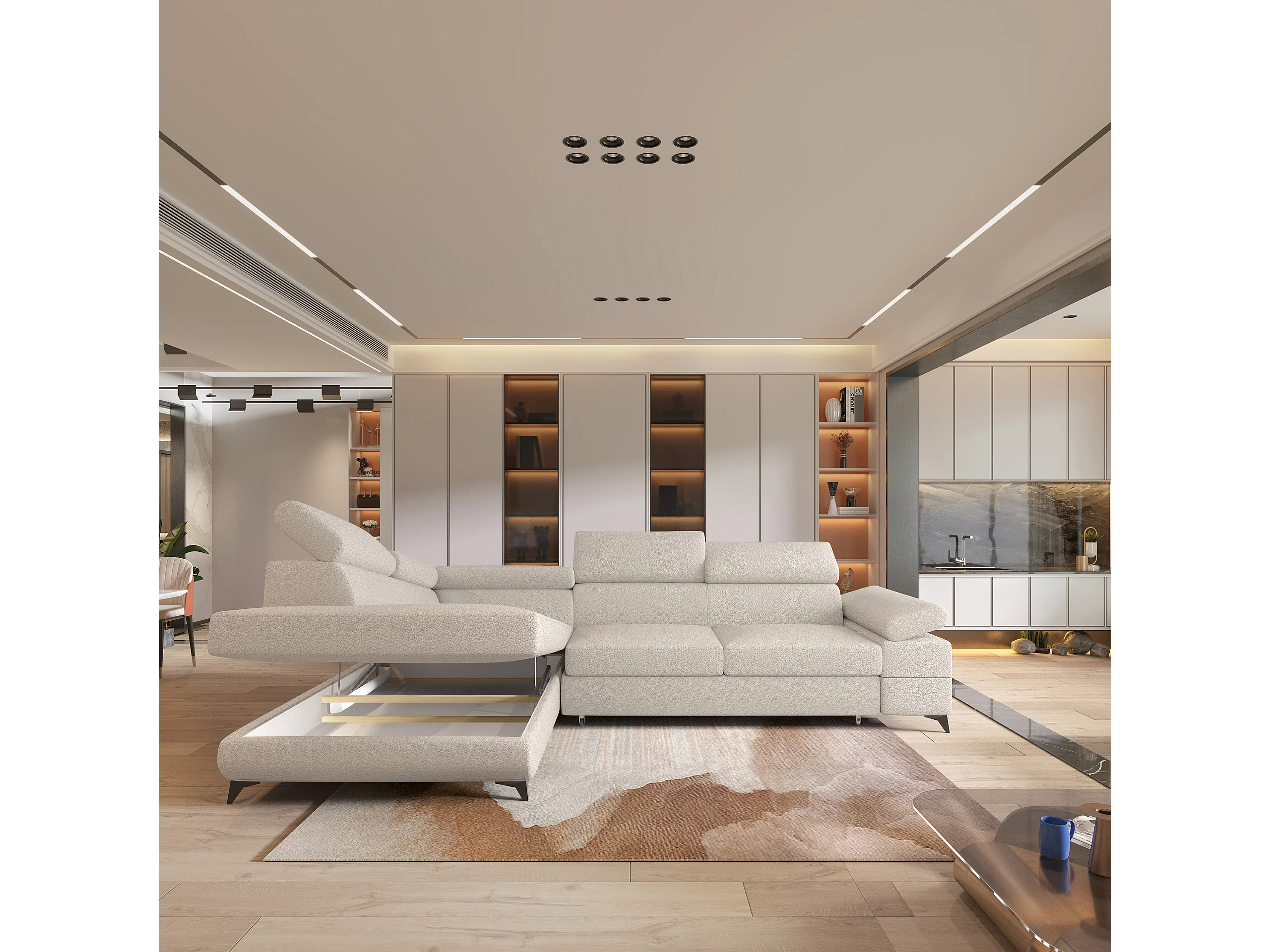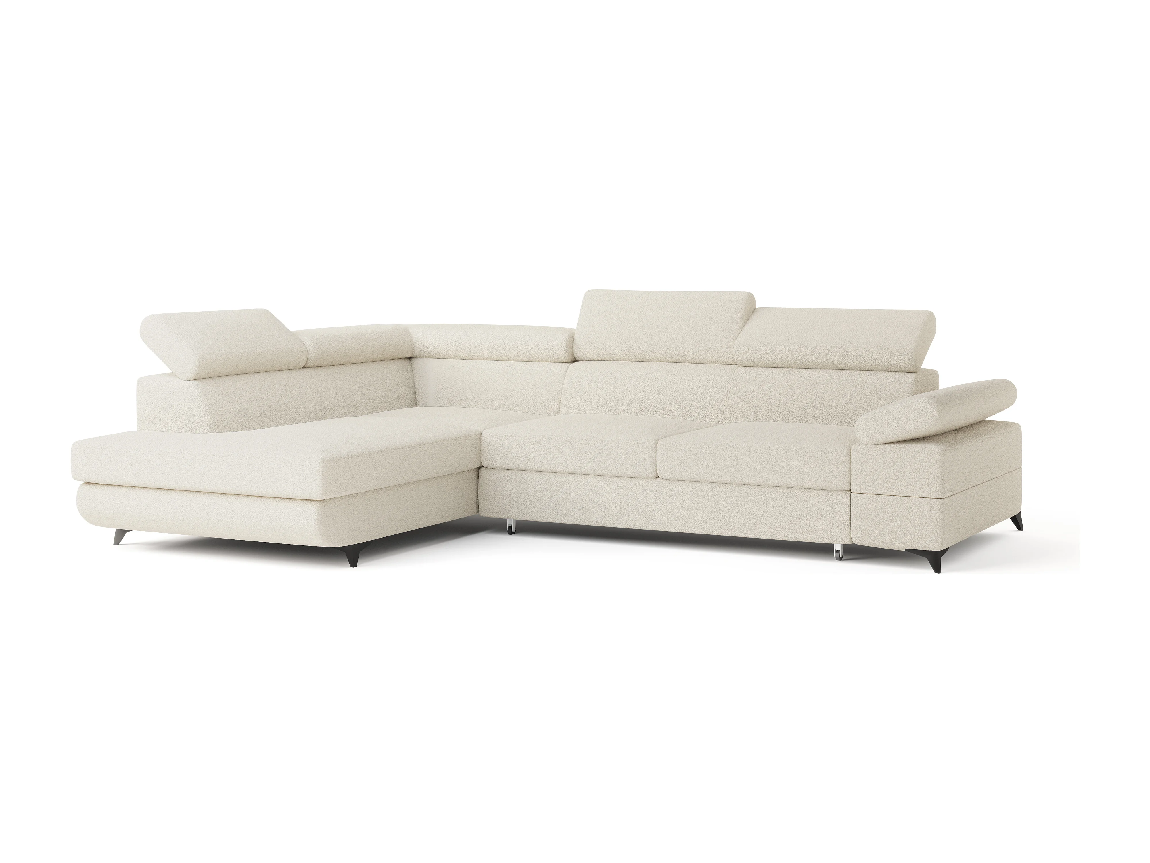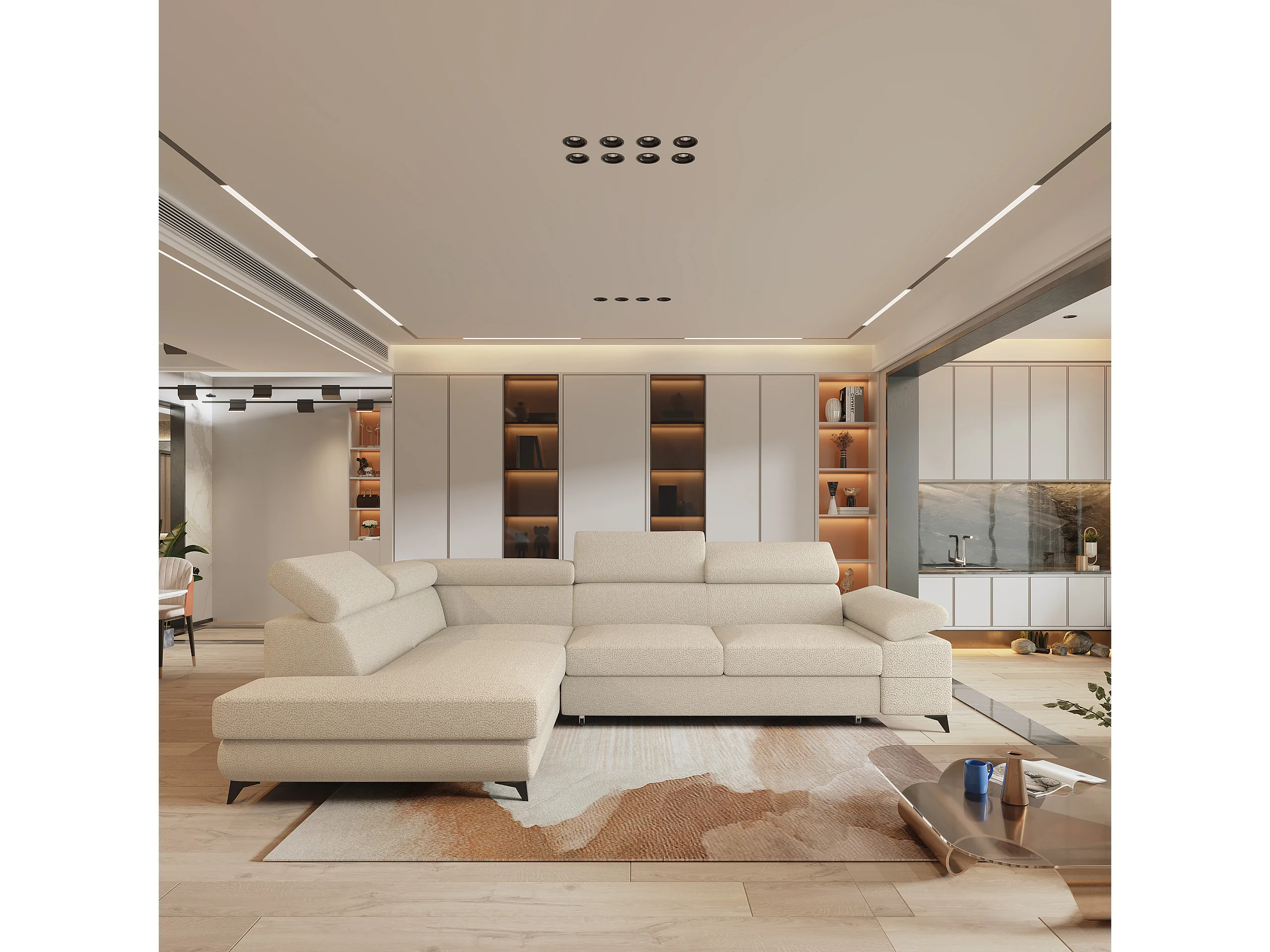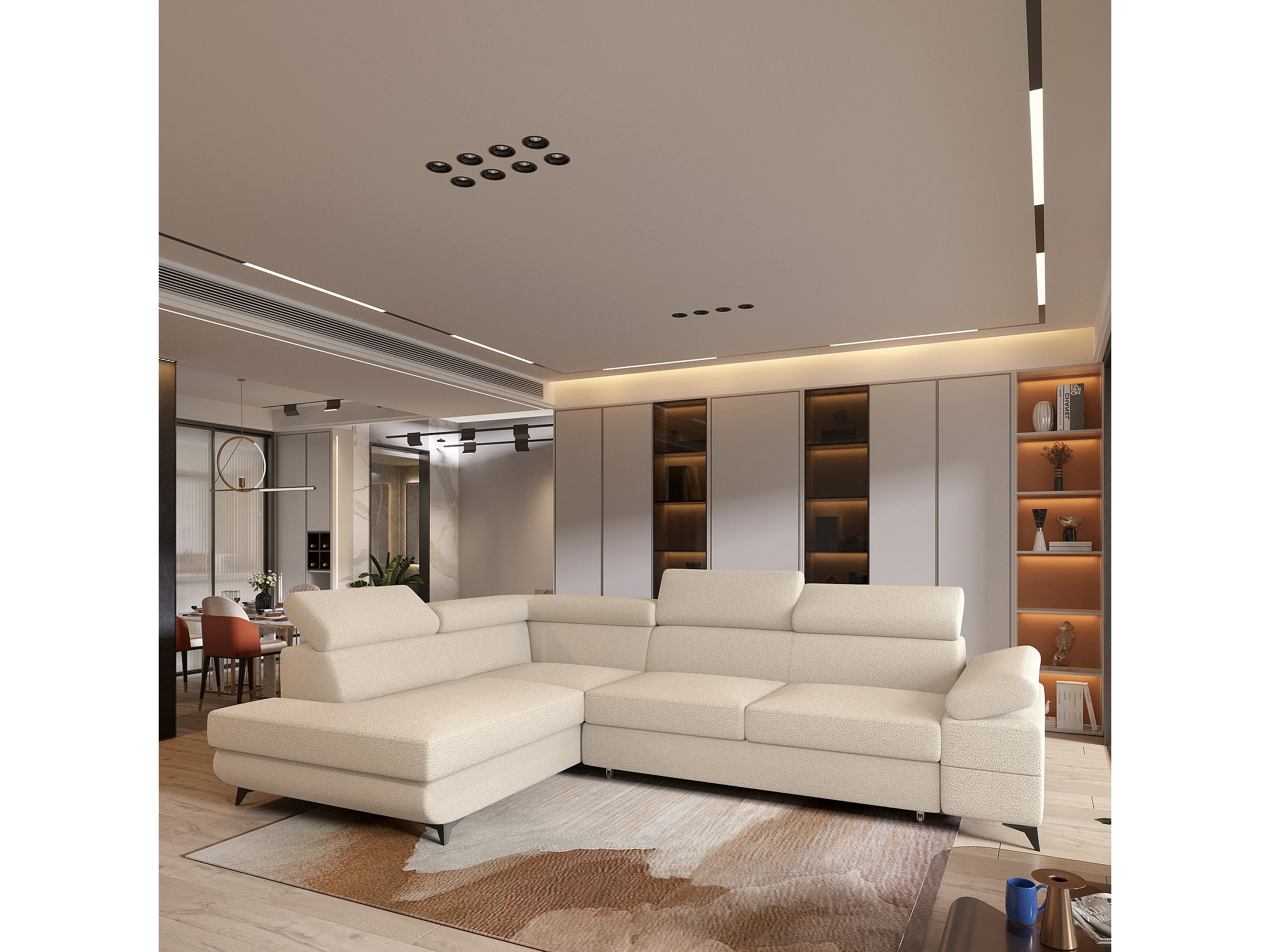 Hoekbank FAVIEN van fluweel met slaapfunctie Creme
