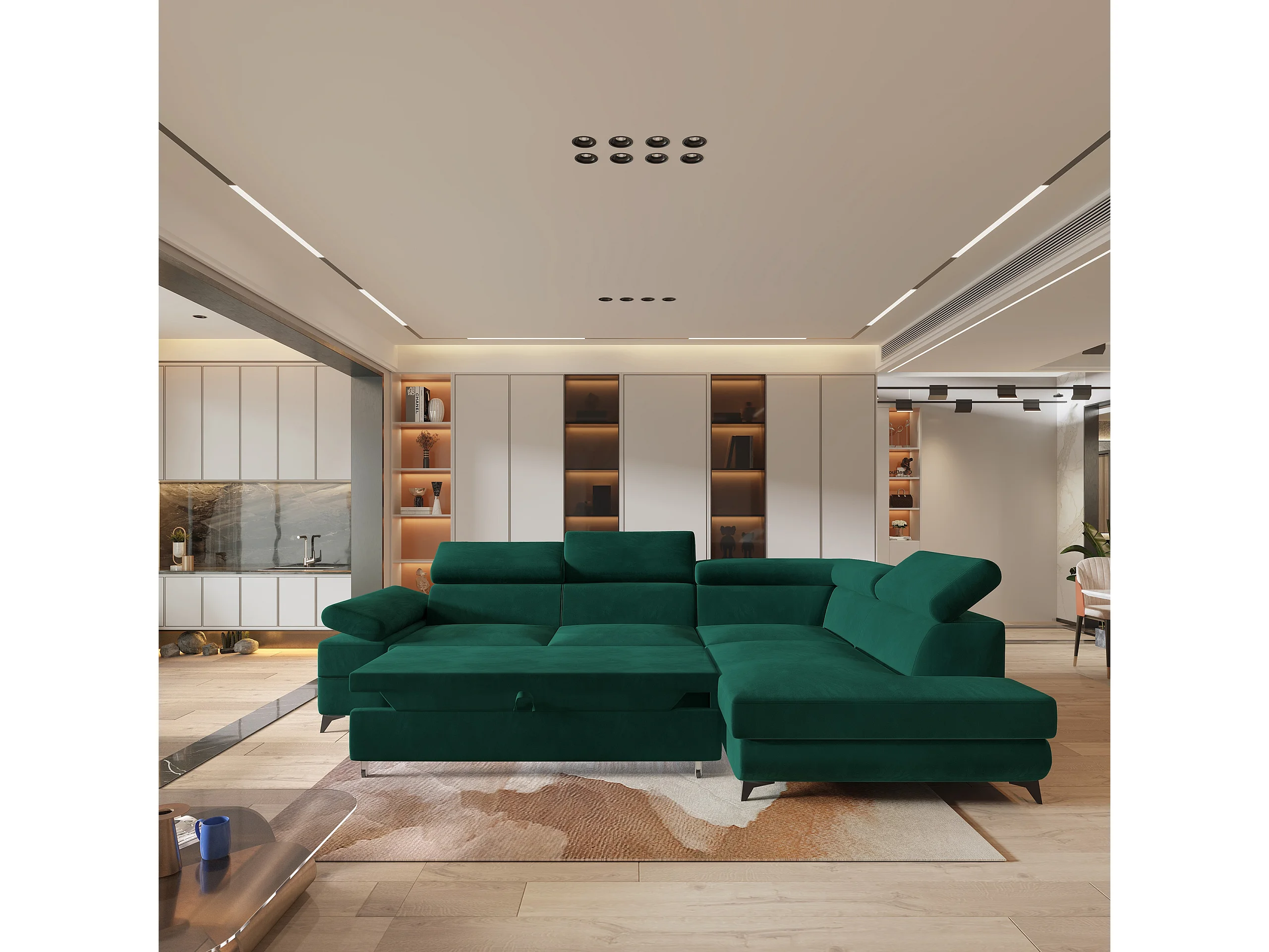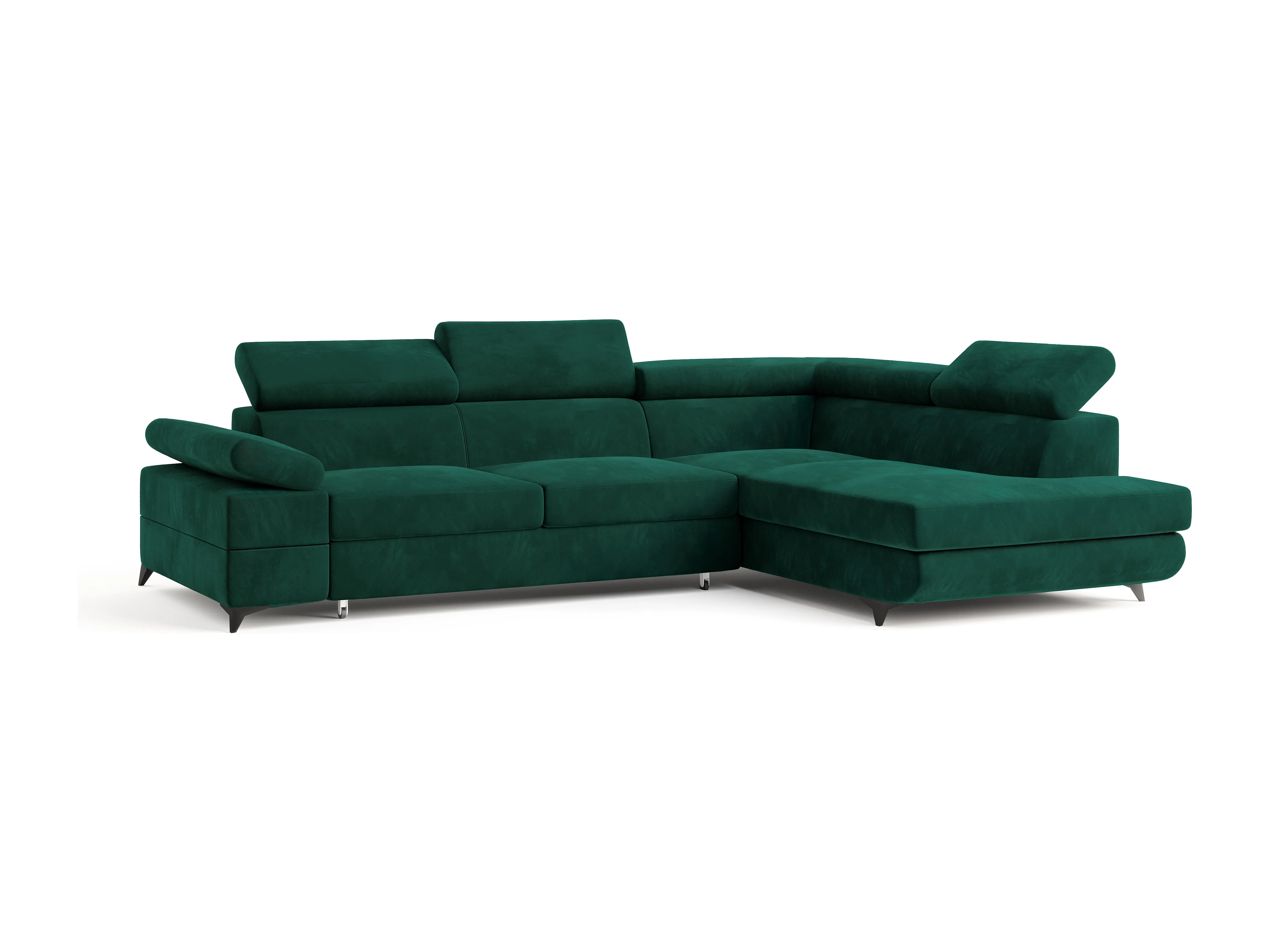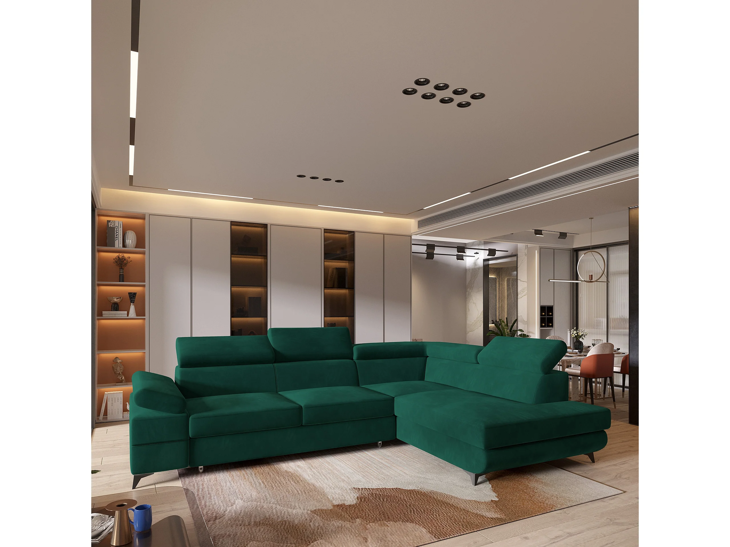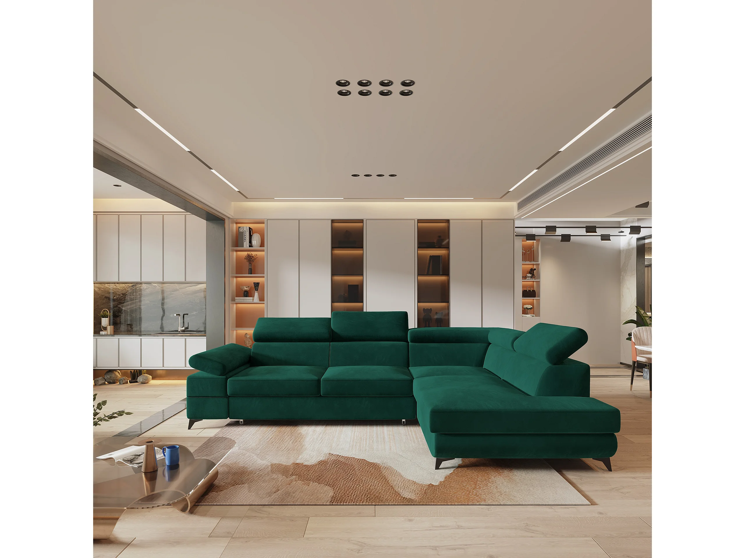 Hoekbank FAVIEN van fluweel met slaapfunctie Grün