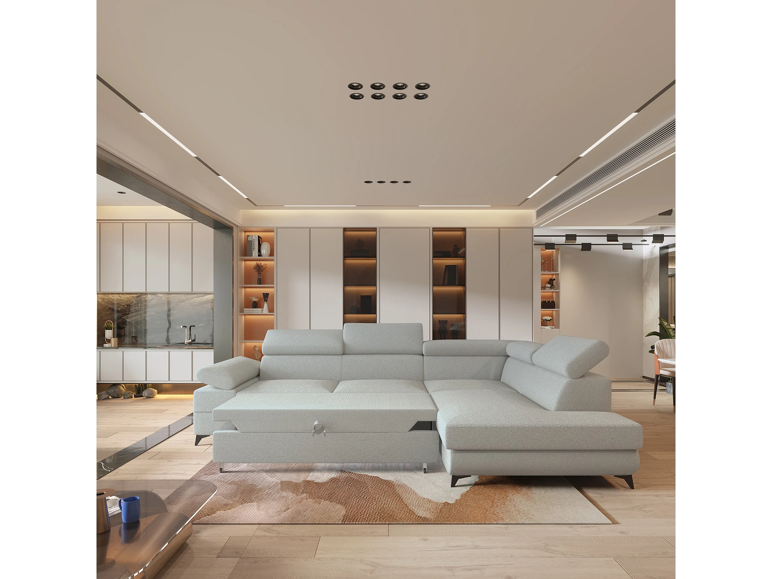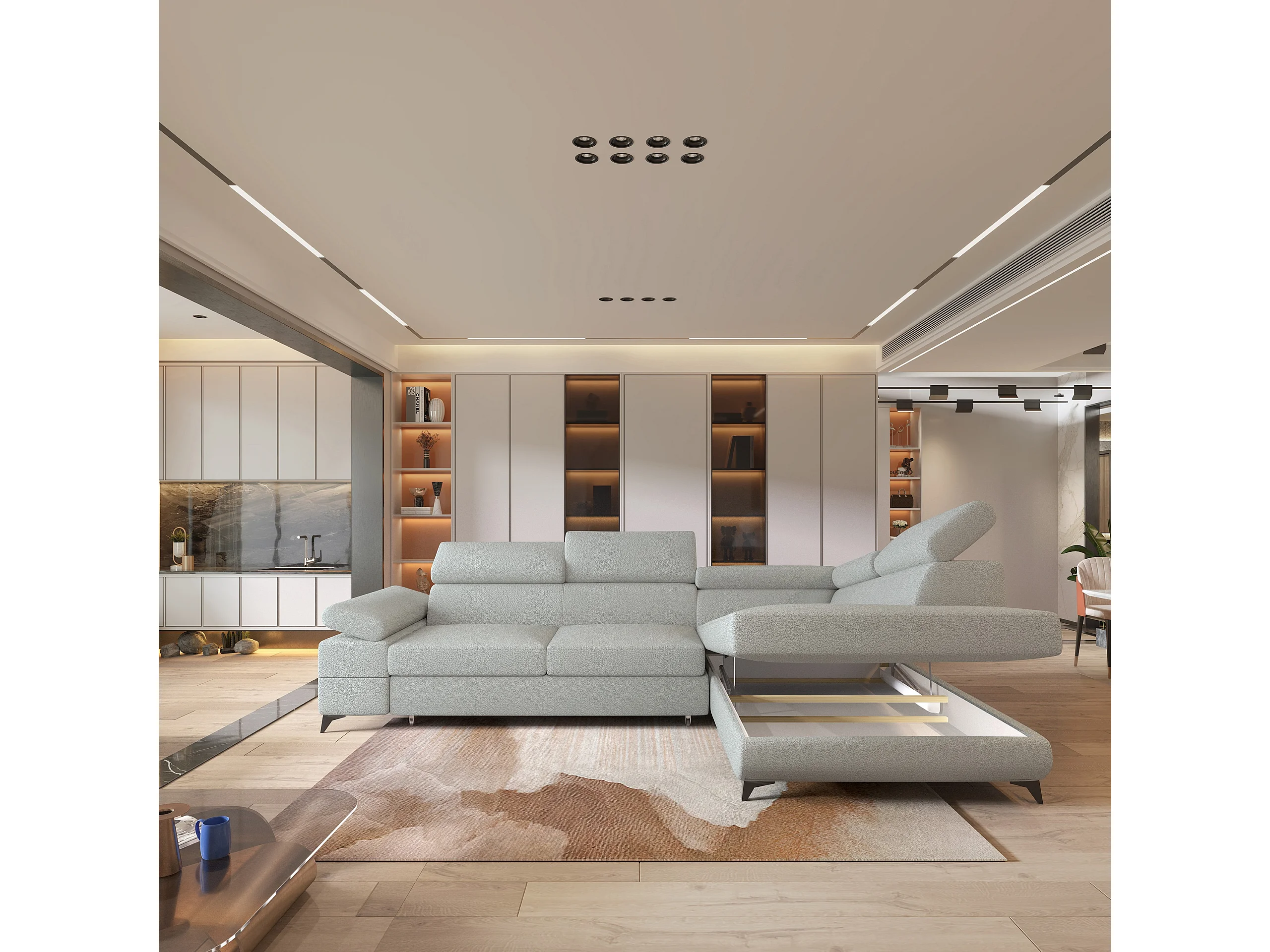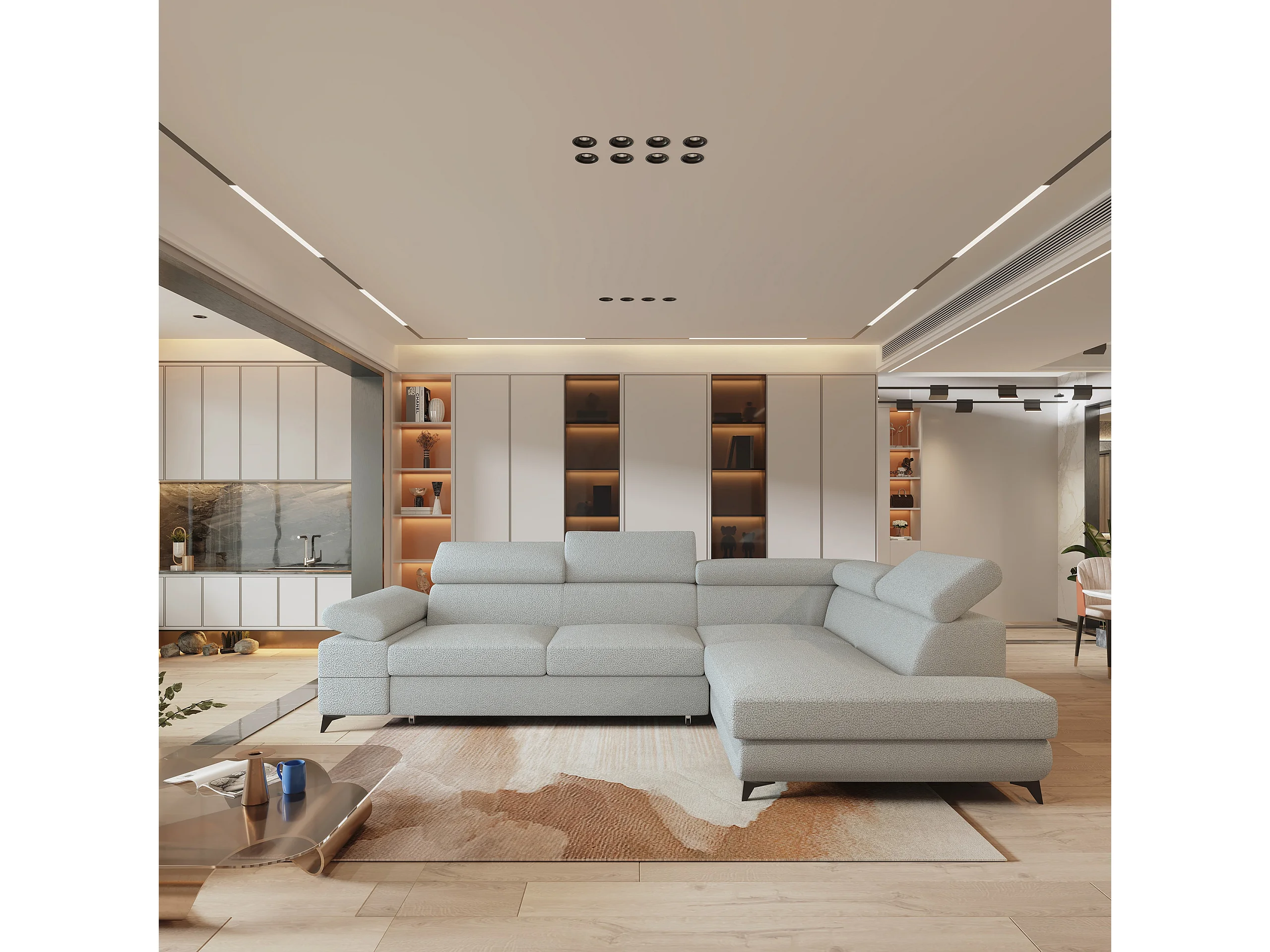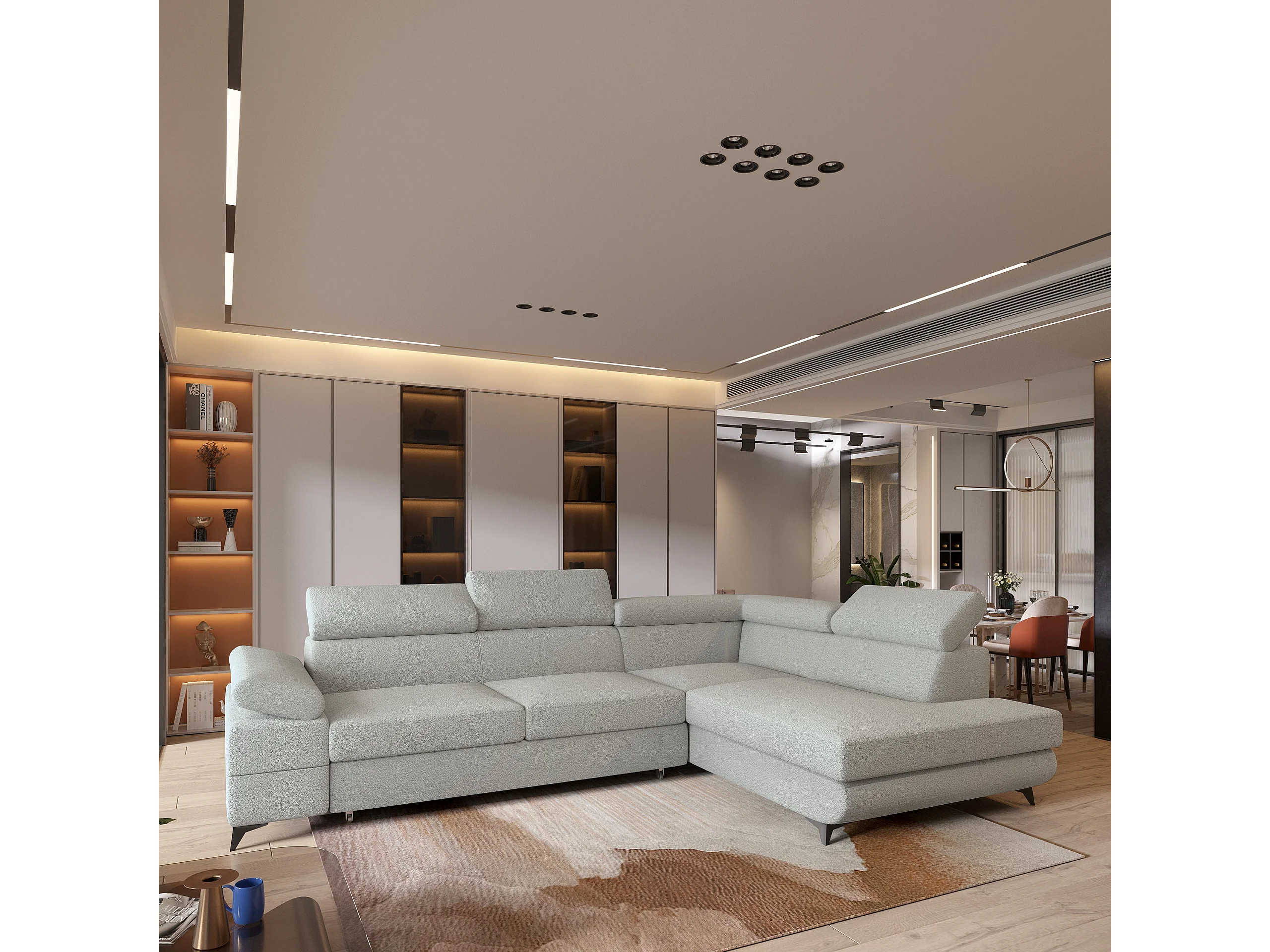 Hoekbank FAVIEN van fluweel met slaapfunctie Hellgrau