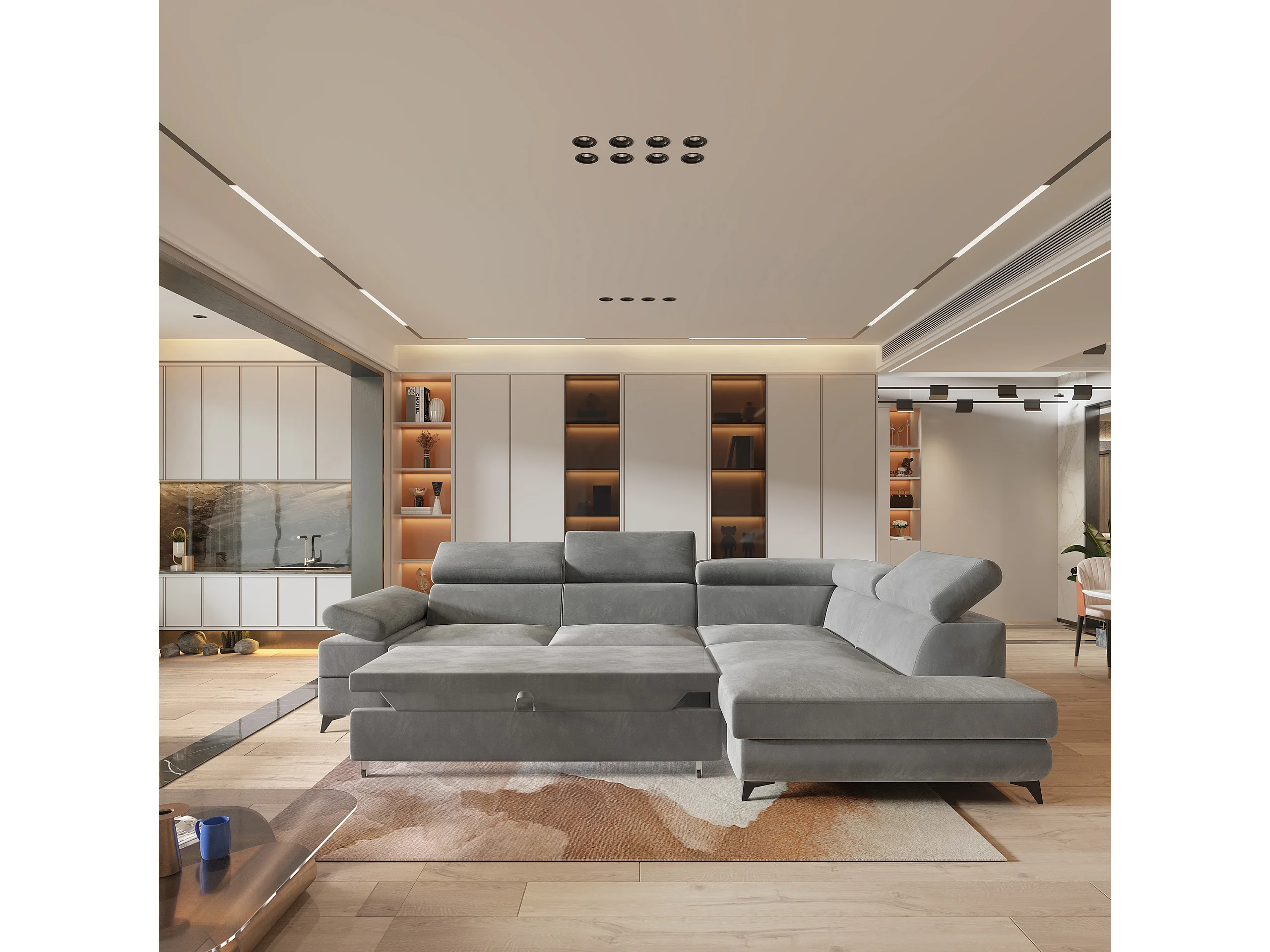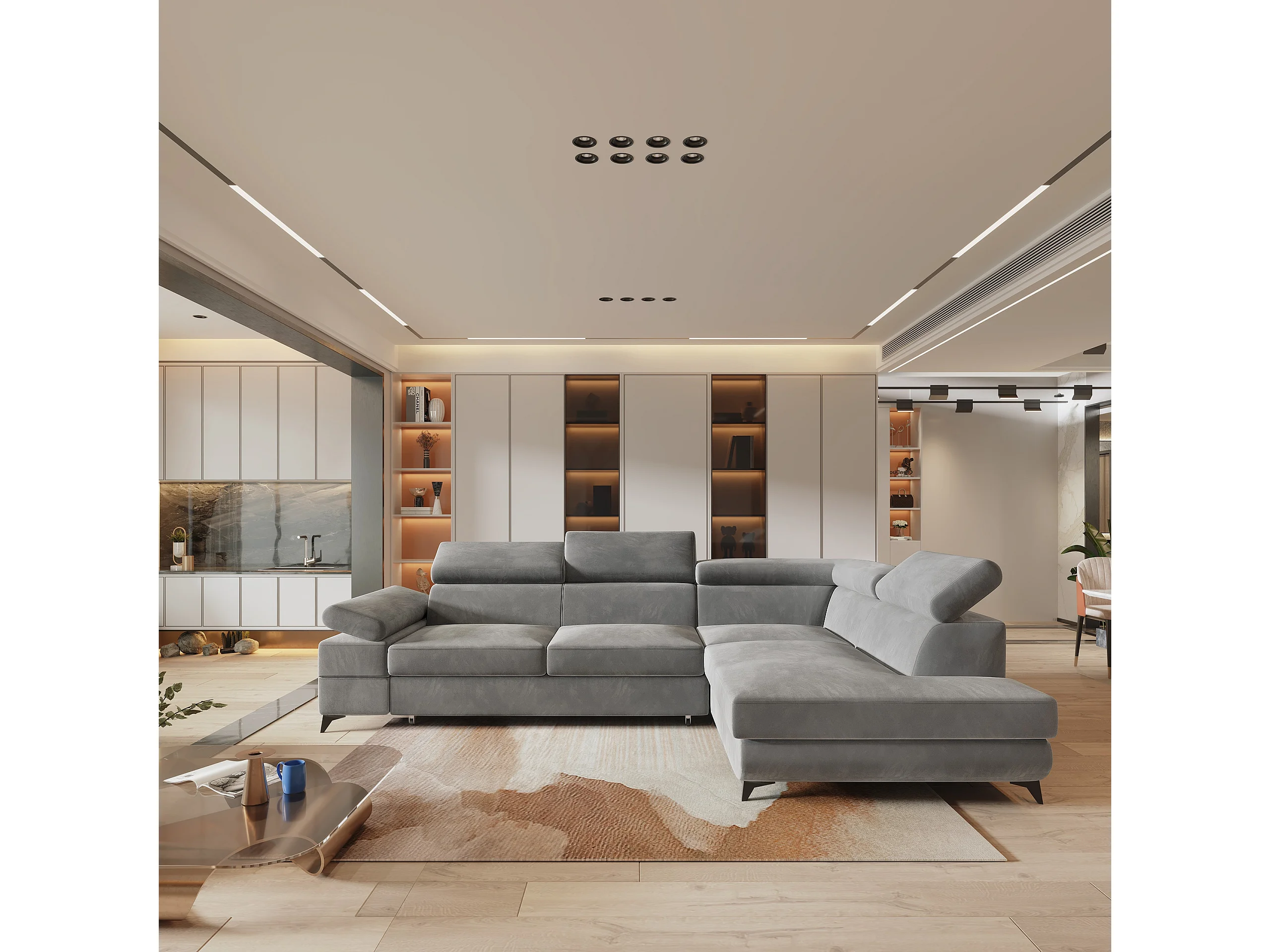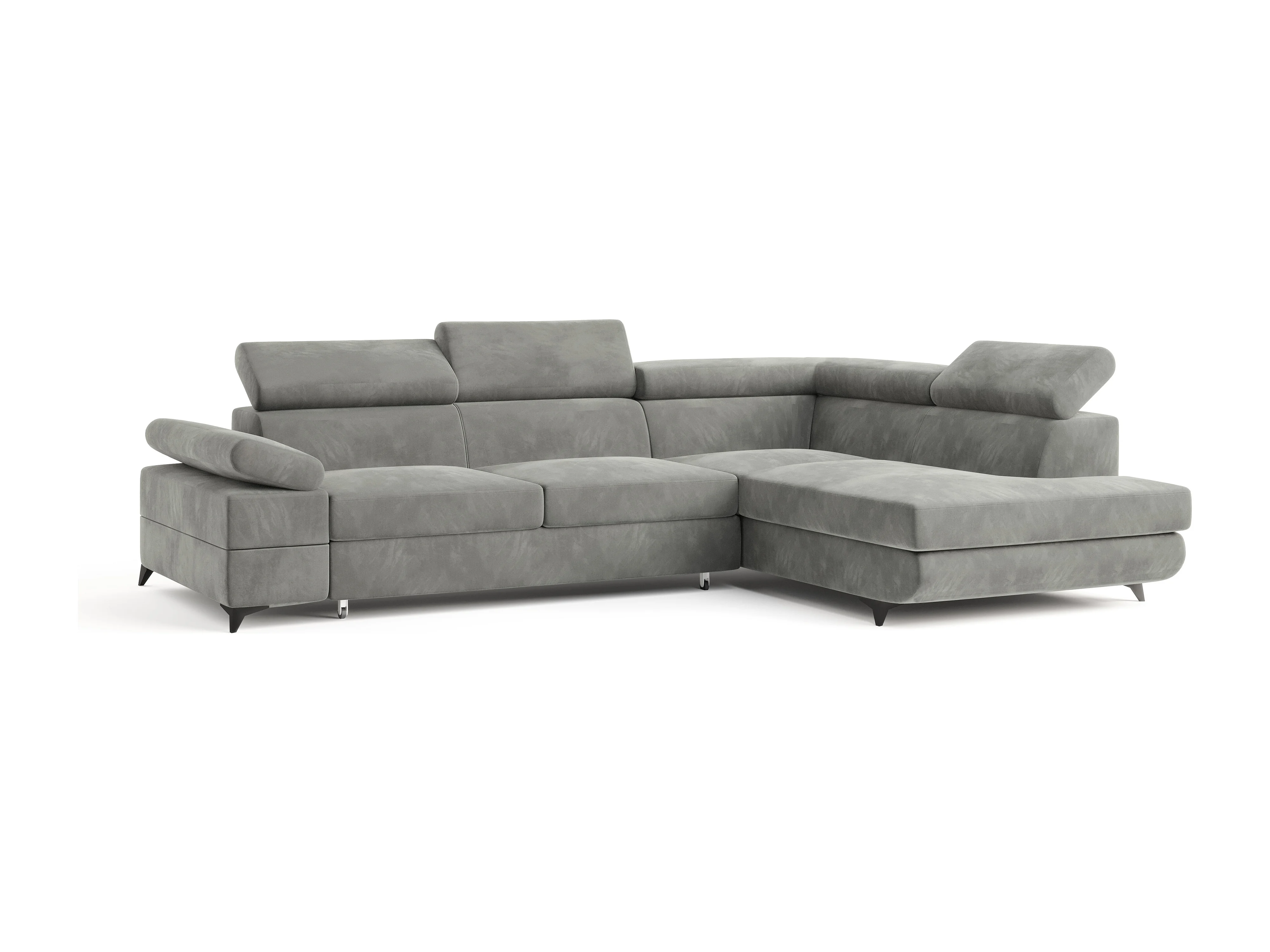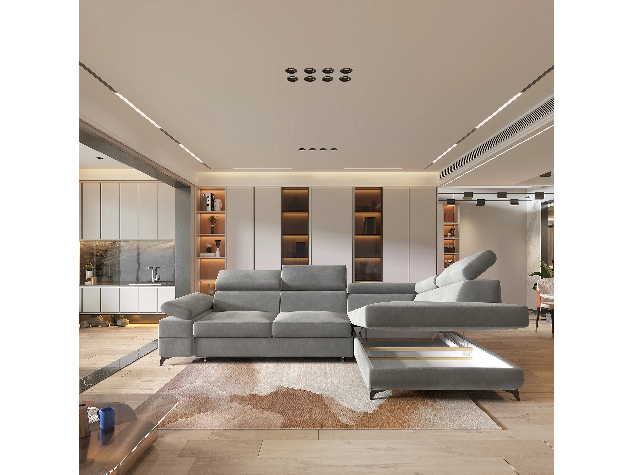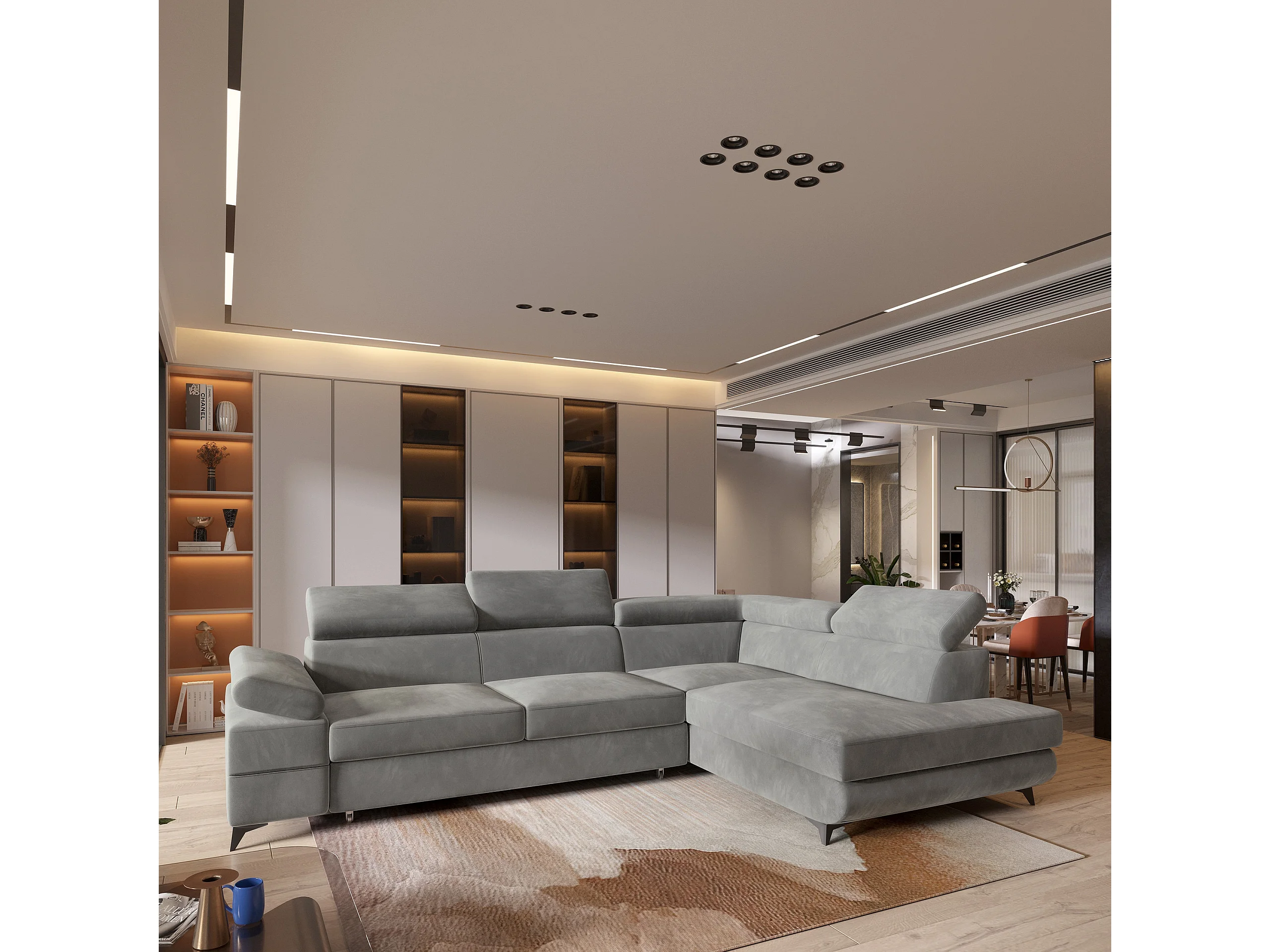 Hoekbank FAVIEN van fluweel met slaapfunctie Hellgrau