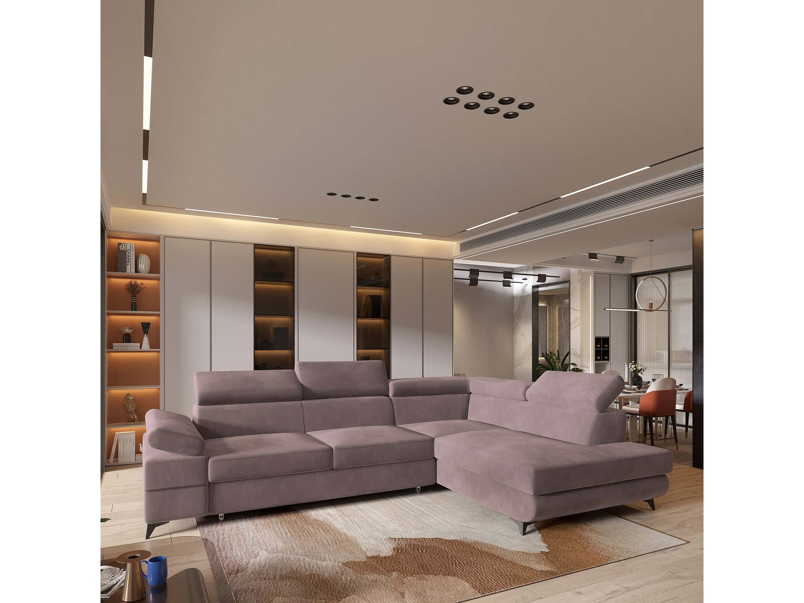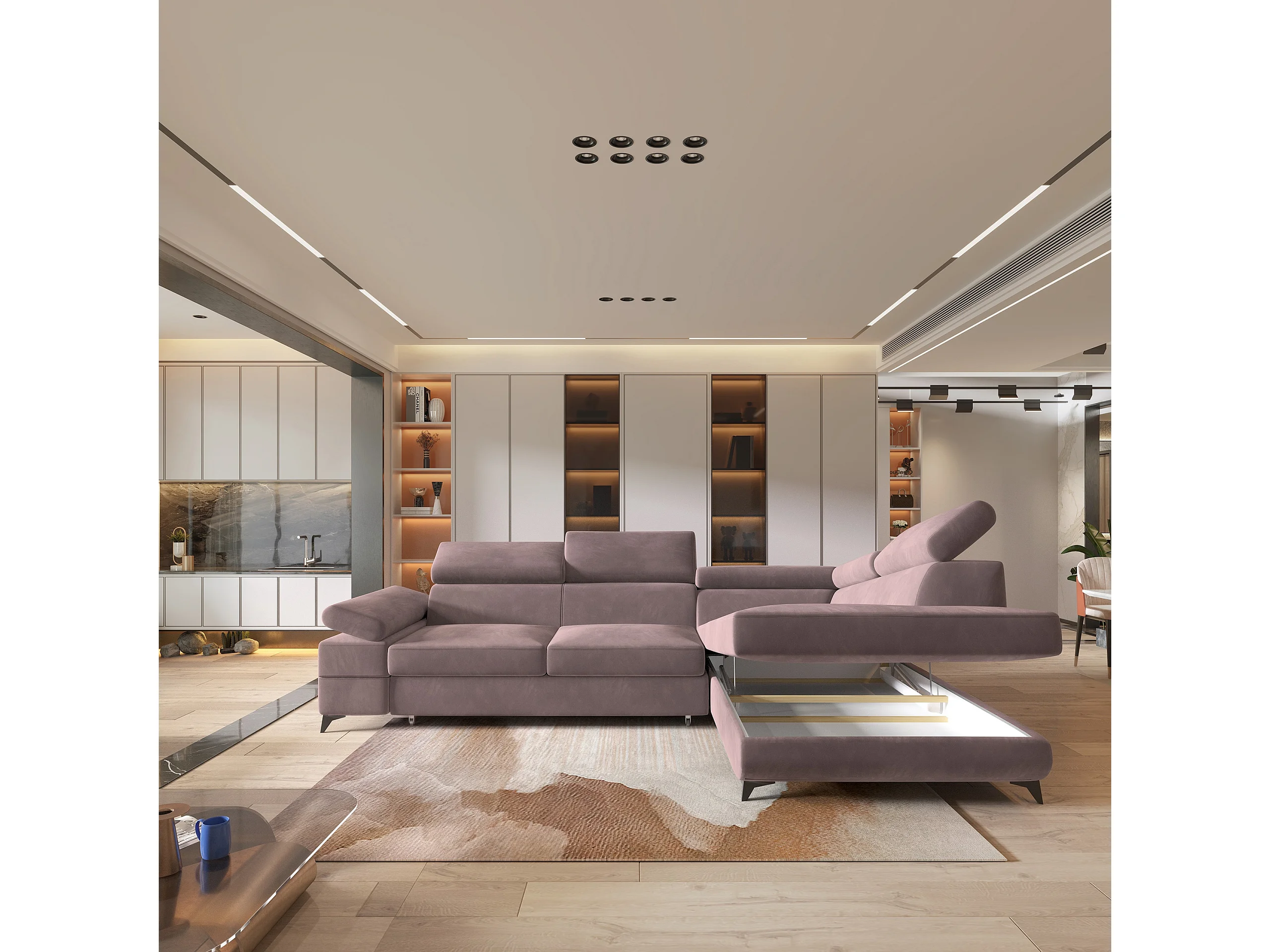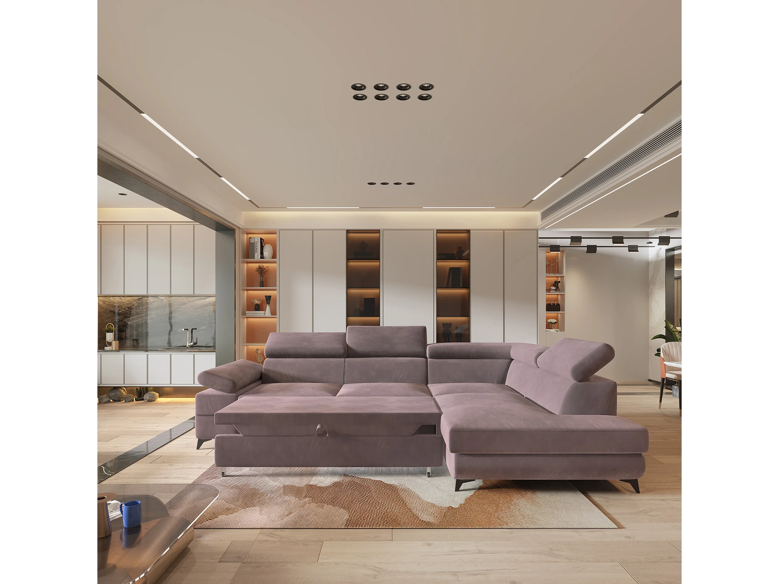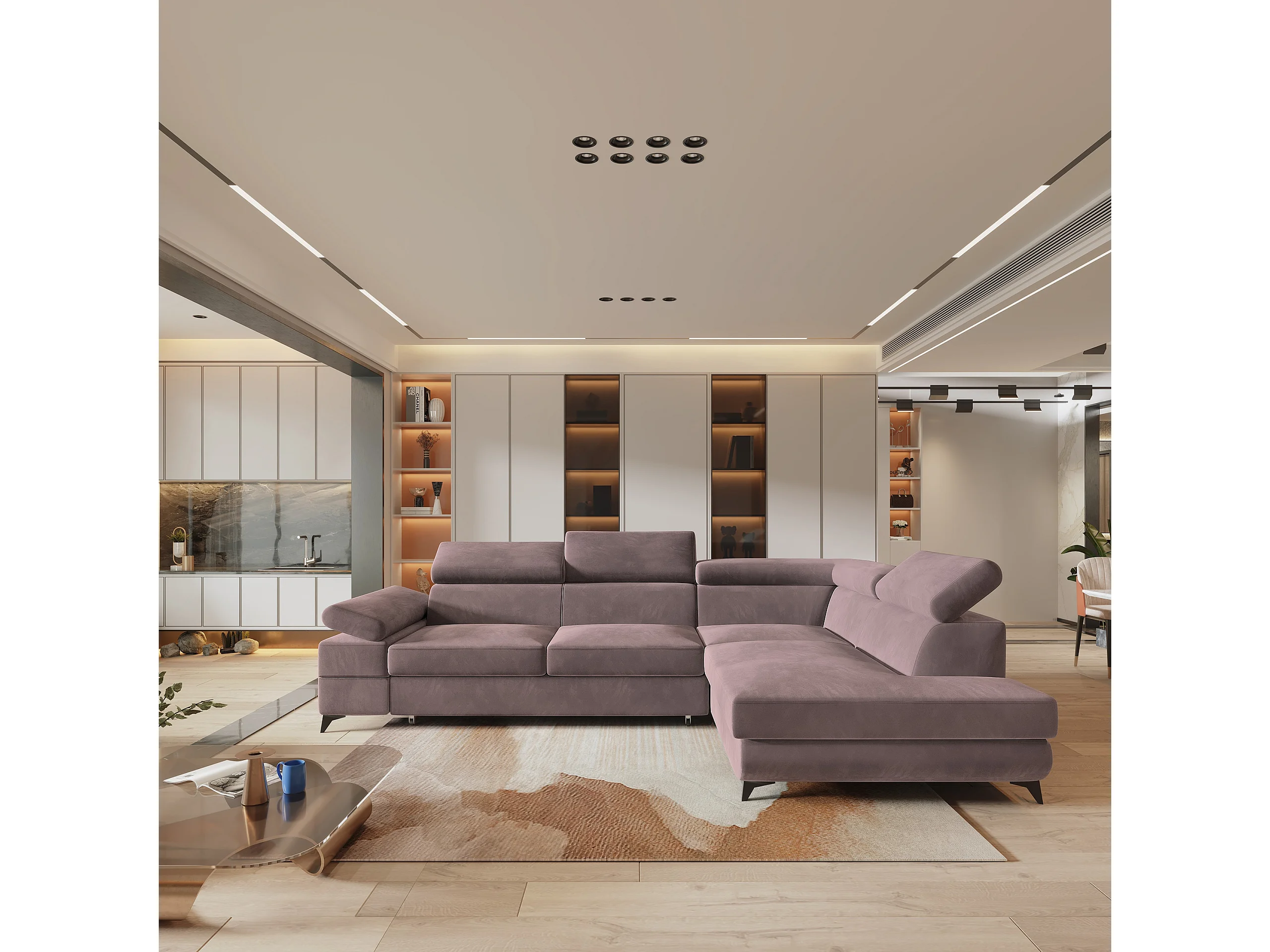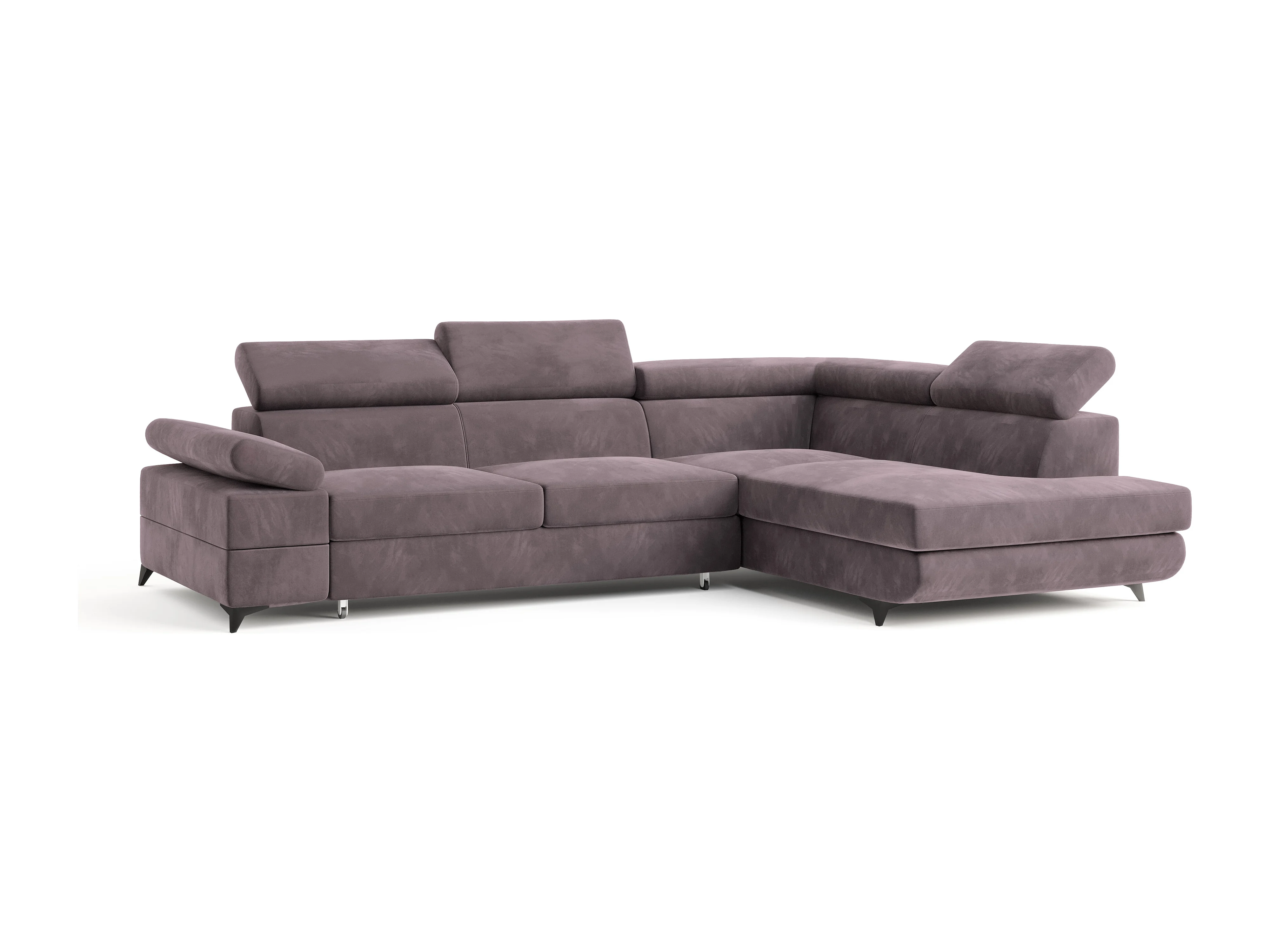 Hoekbank FAVIEN van fluweel met slaapfunctie Lila