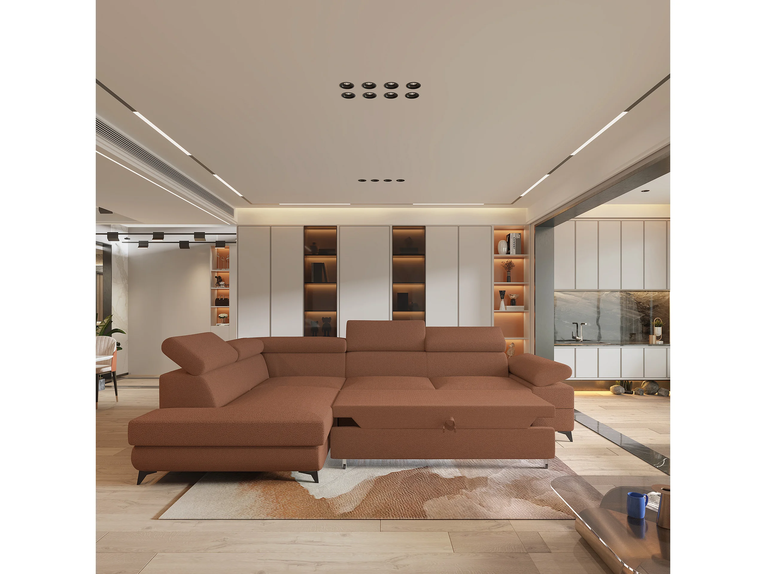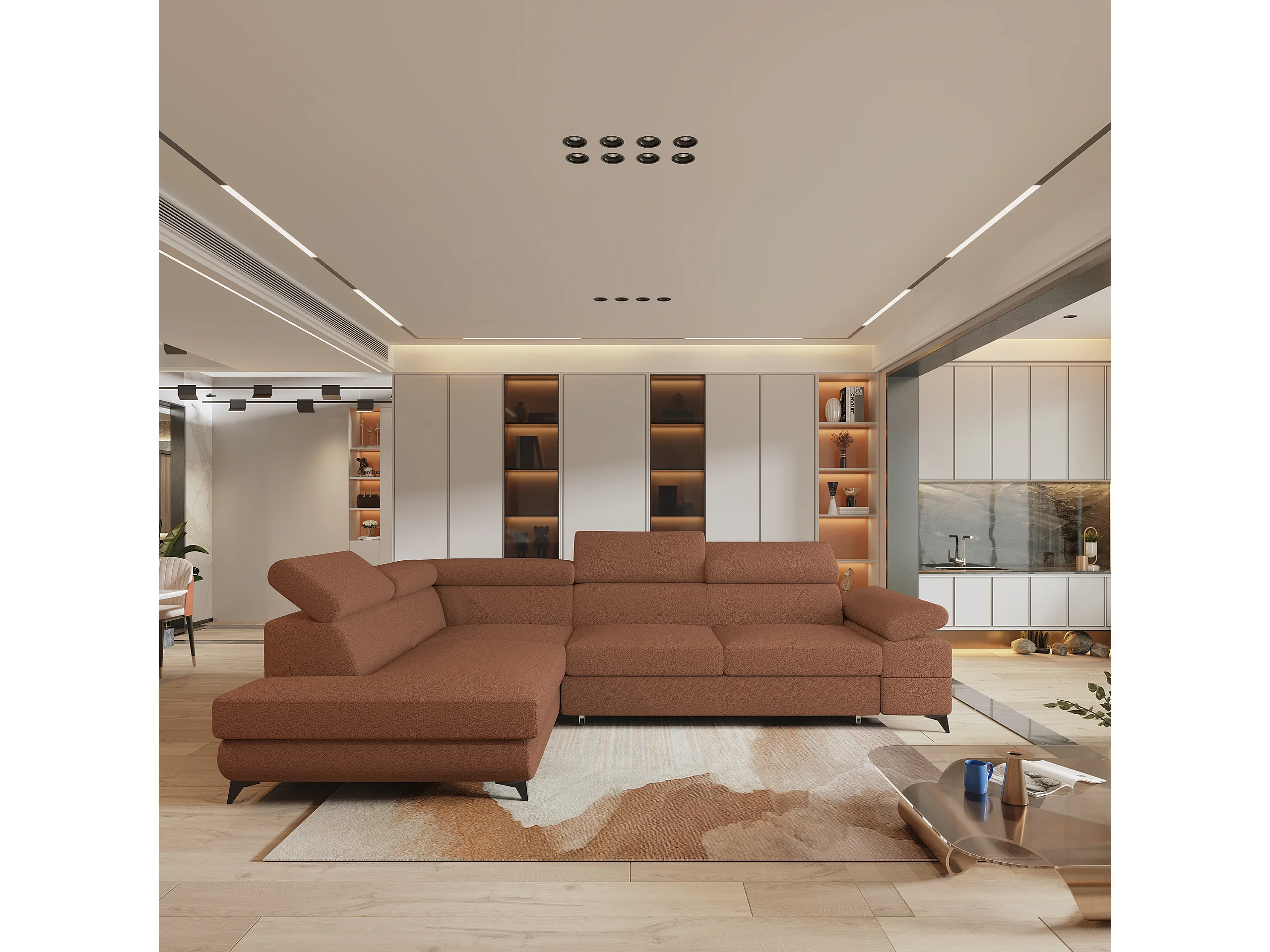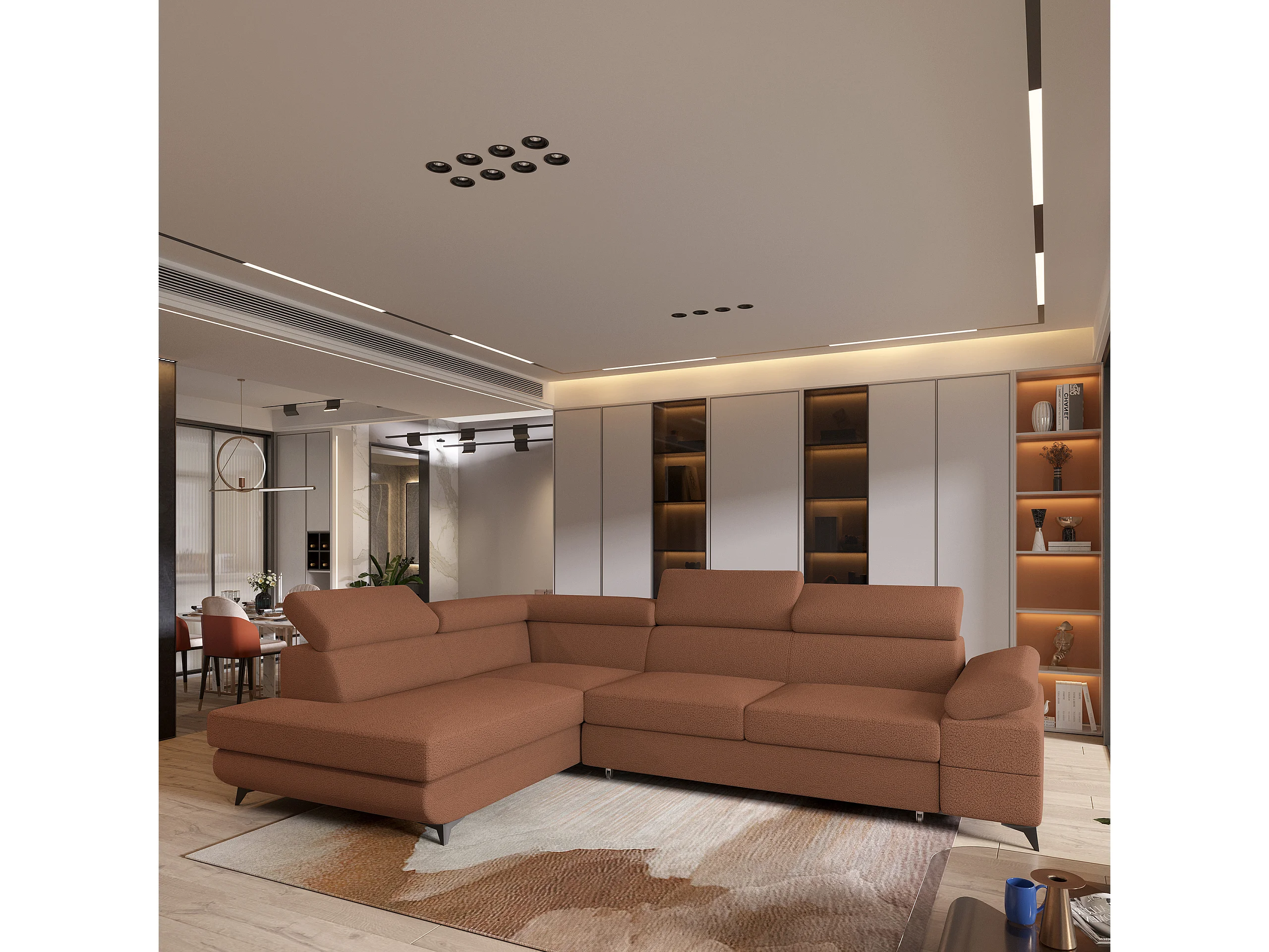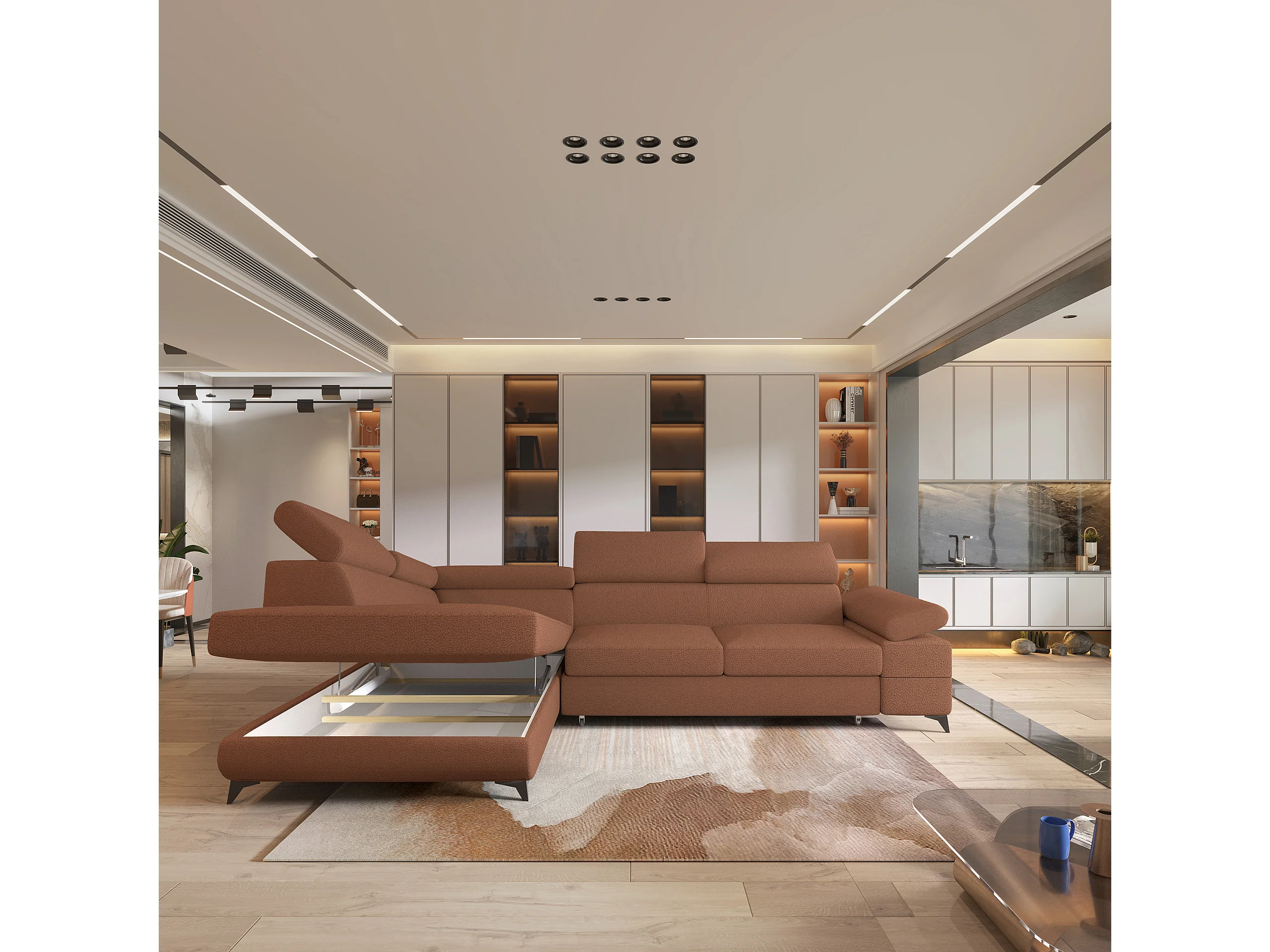 Hoekbank FAVIEN van fluweel met slaapfunctie Orange