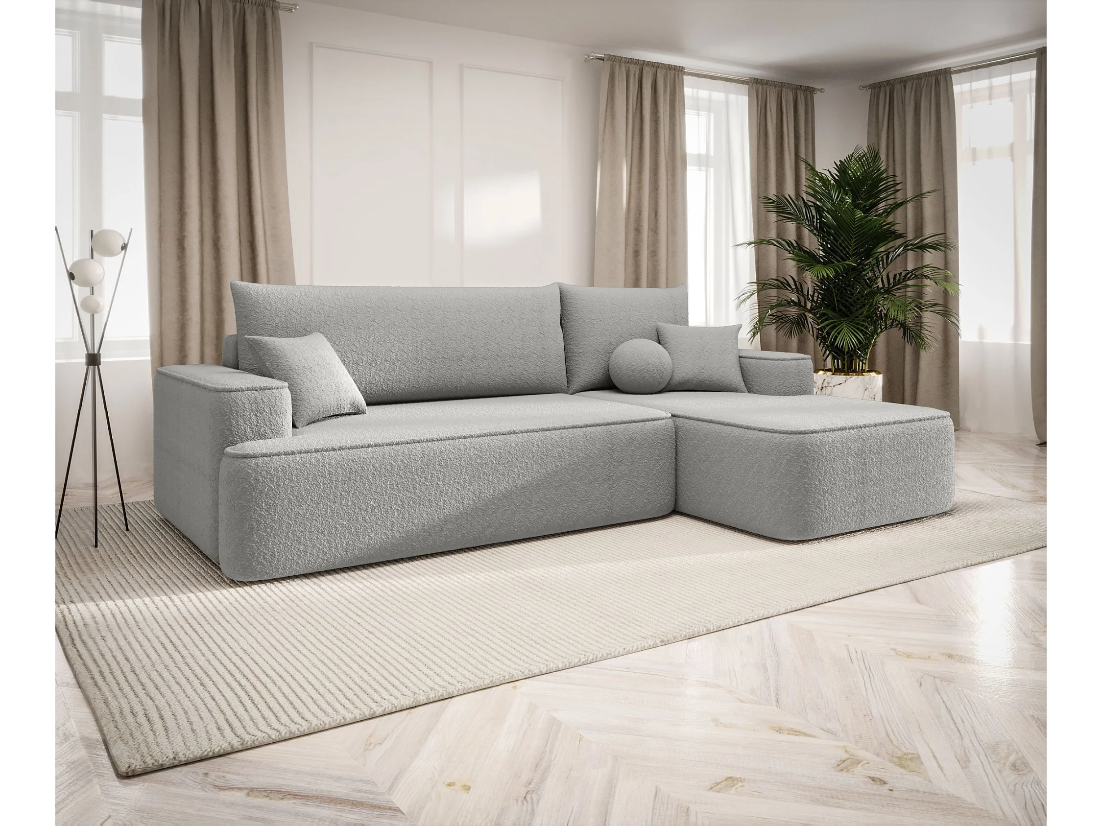 Hoekbank met slaapfunctie LUCAS Curio 80 lichtgrijs rechts L-vormige bank met opbergruimte woonkamerbank, slaapbank, bank met opbergruimte