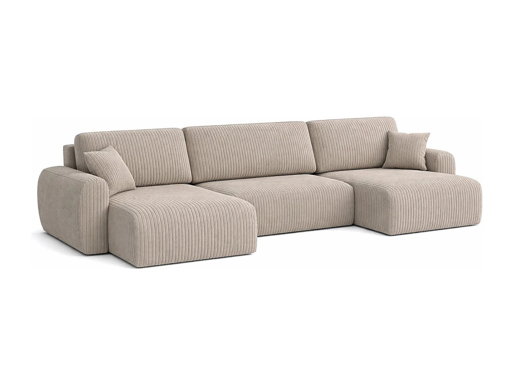Hoekbank in U-vorm met slaapfunctie en opbergruimte Ivo U, ribfluweel Poso, Donkerbeige