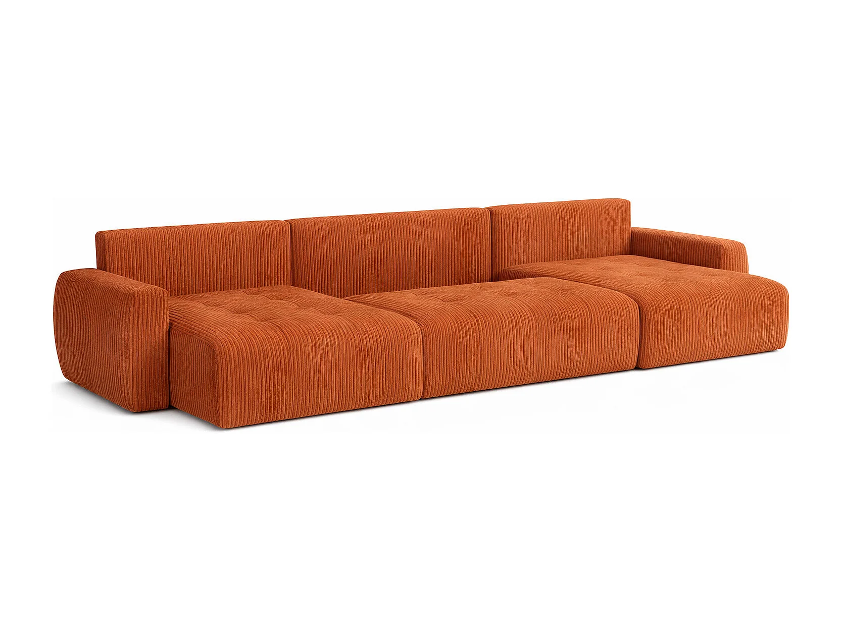 Hoekbank in U-vorm met slaapfunctie en opbergruimte Ivo U, ribfluweel Poso, Koper