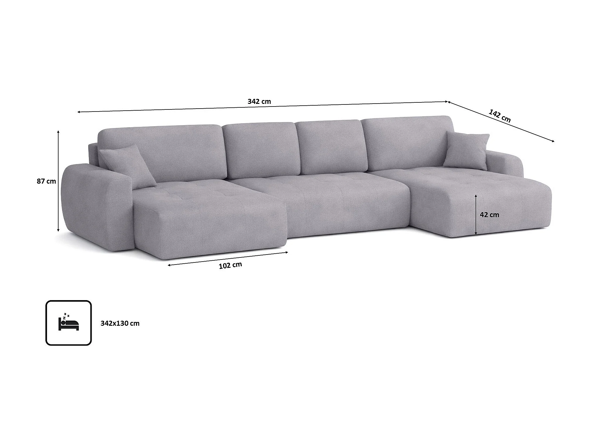 Hoekbank in U-vorm met slaapfunctie en opbergruimte Ivo U, velours Salvador, Grijs
