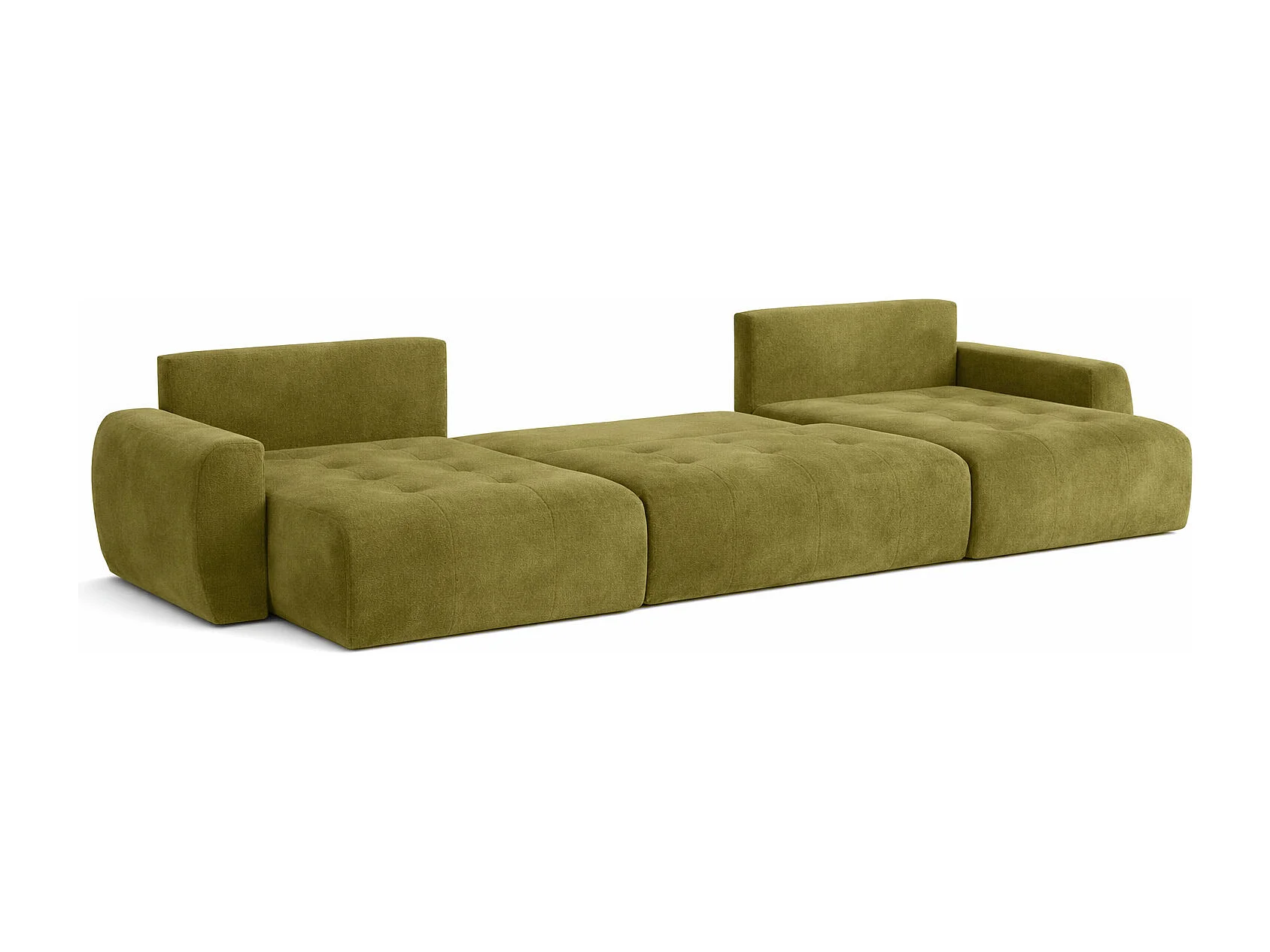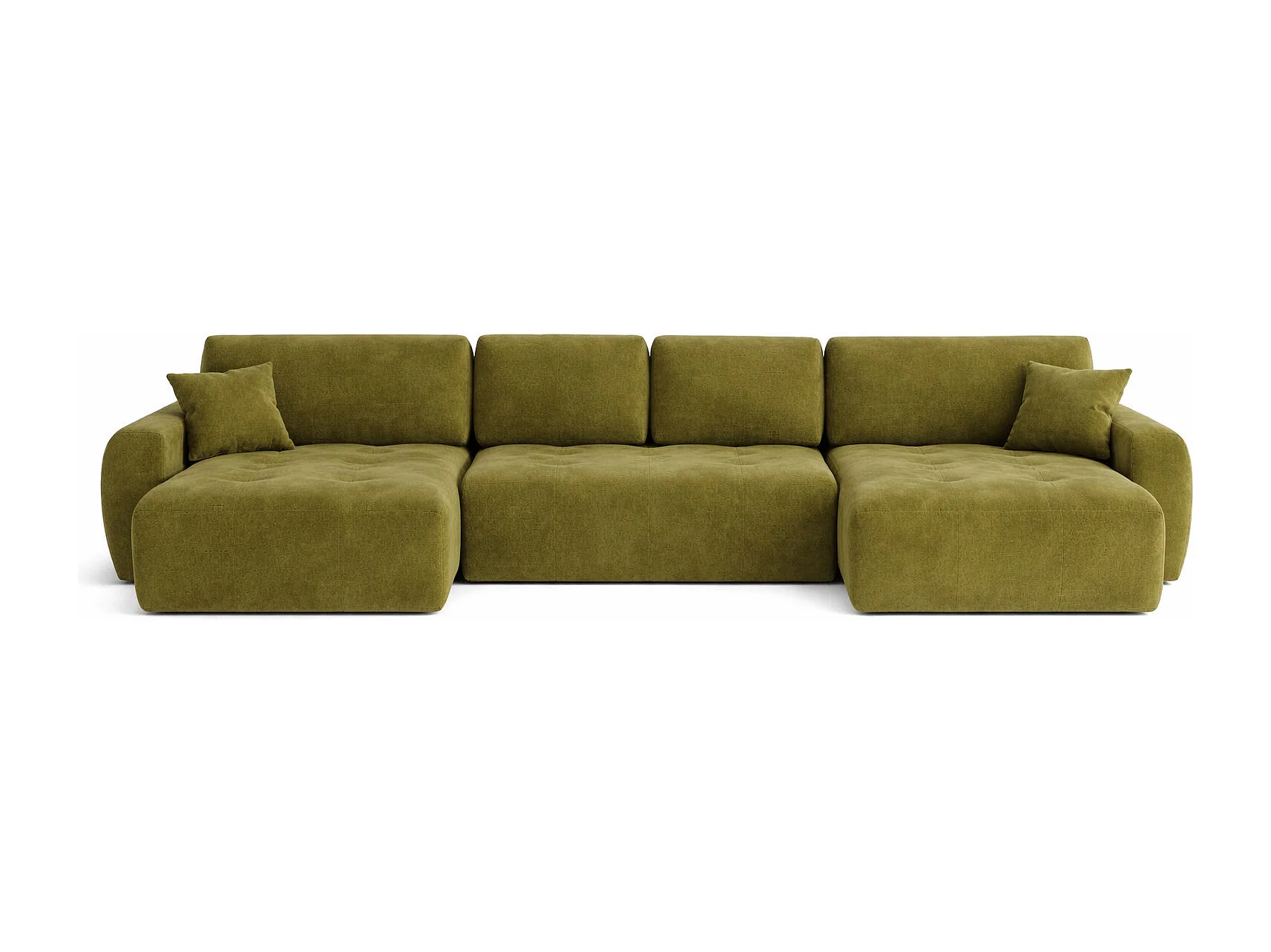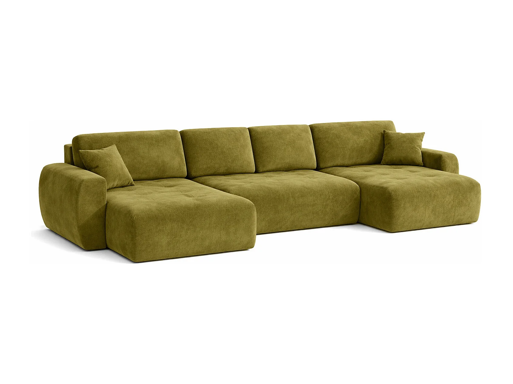 Hoekbank in U-vorm met slaapfunctie en opbergruimte Ivo U, velours Salvador, Olijfgroen