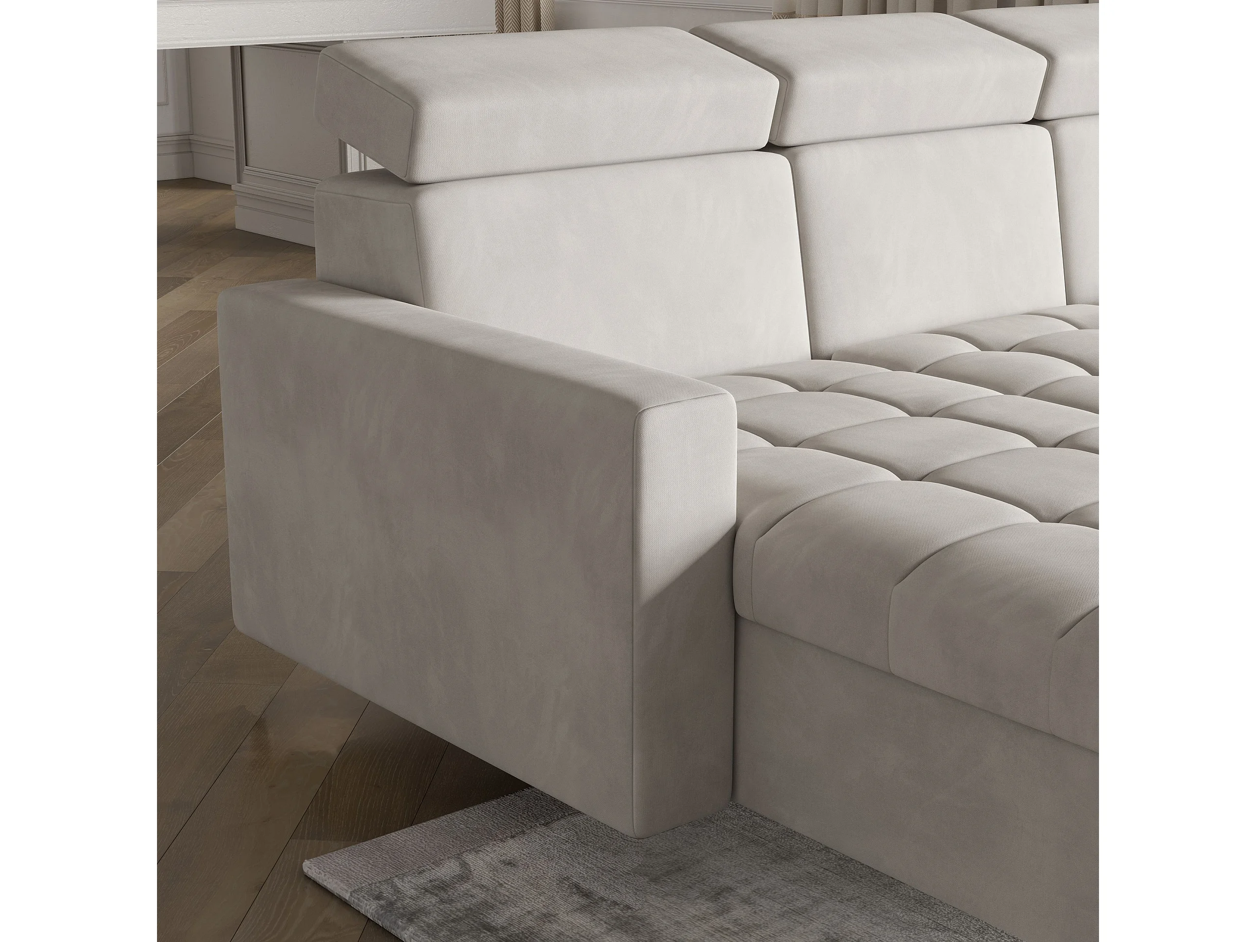 Hoekbank KAME van fluweel met slaapfunctie Grau