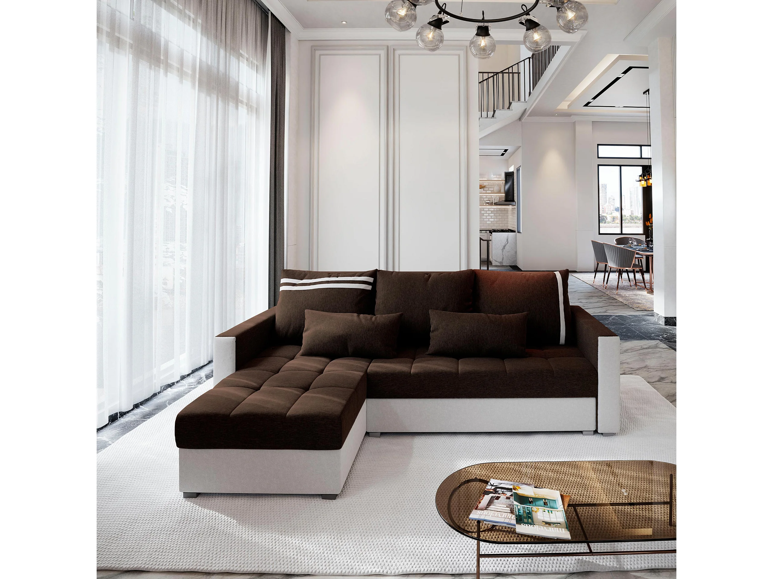 Hoekbank KOS PIK van fluweel met slaapfunctie Braun