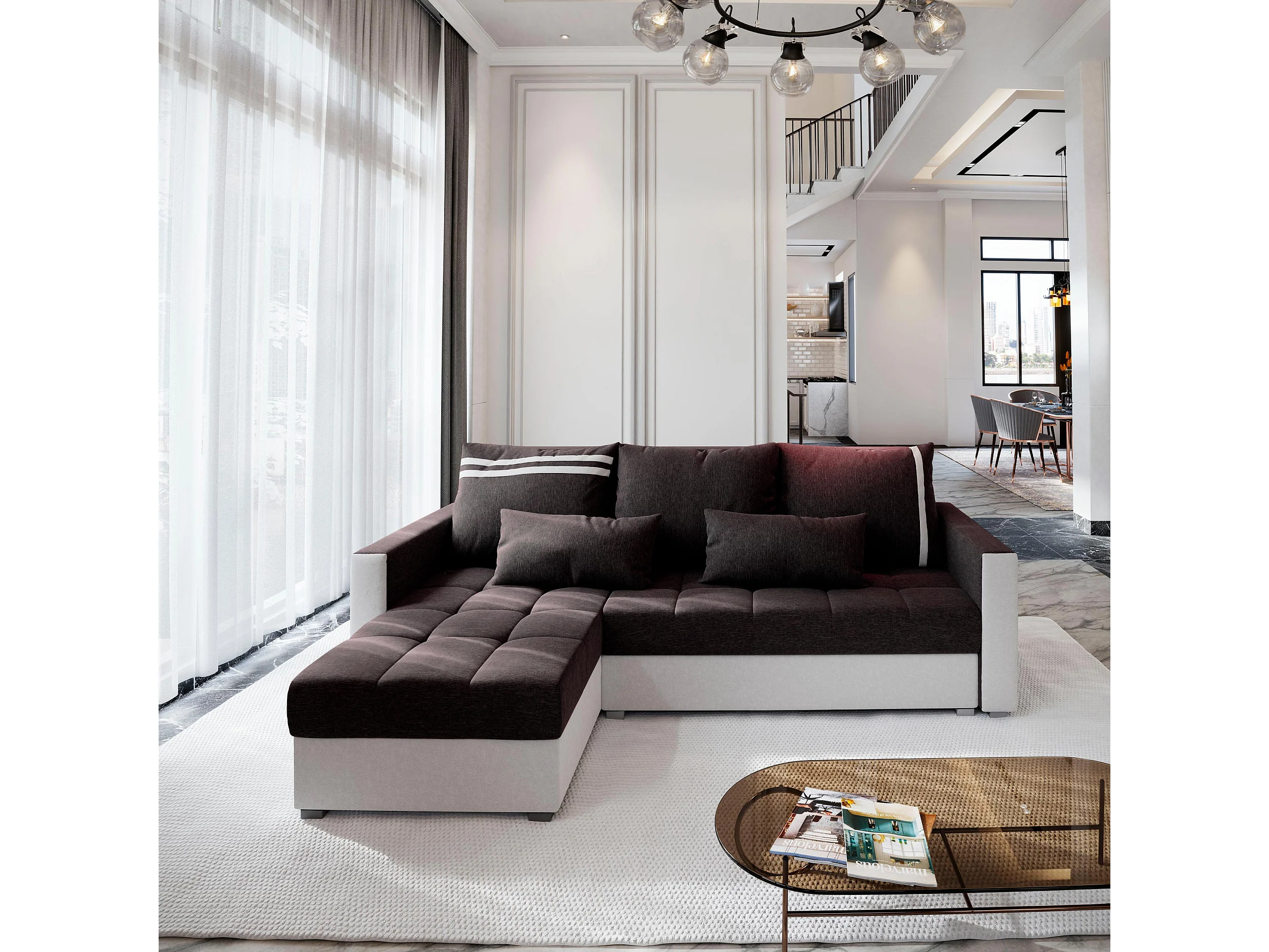 Hoekbank KOS PIK van fluweel met slaapfunctie Grau