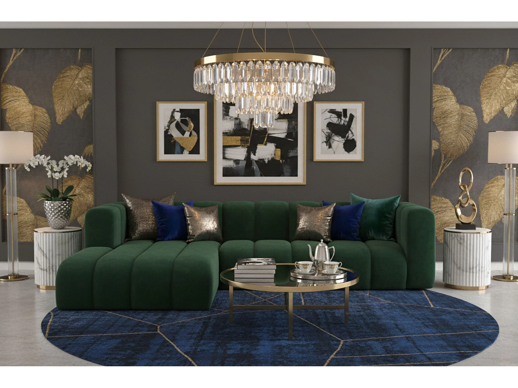 Hoekbank L-Vorm Grand L 287 cm, Veloursstof Salvador, Groen, Links