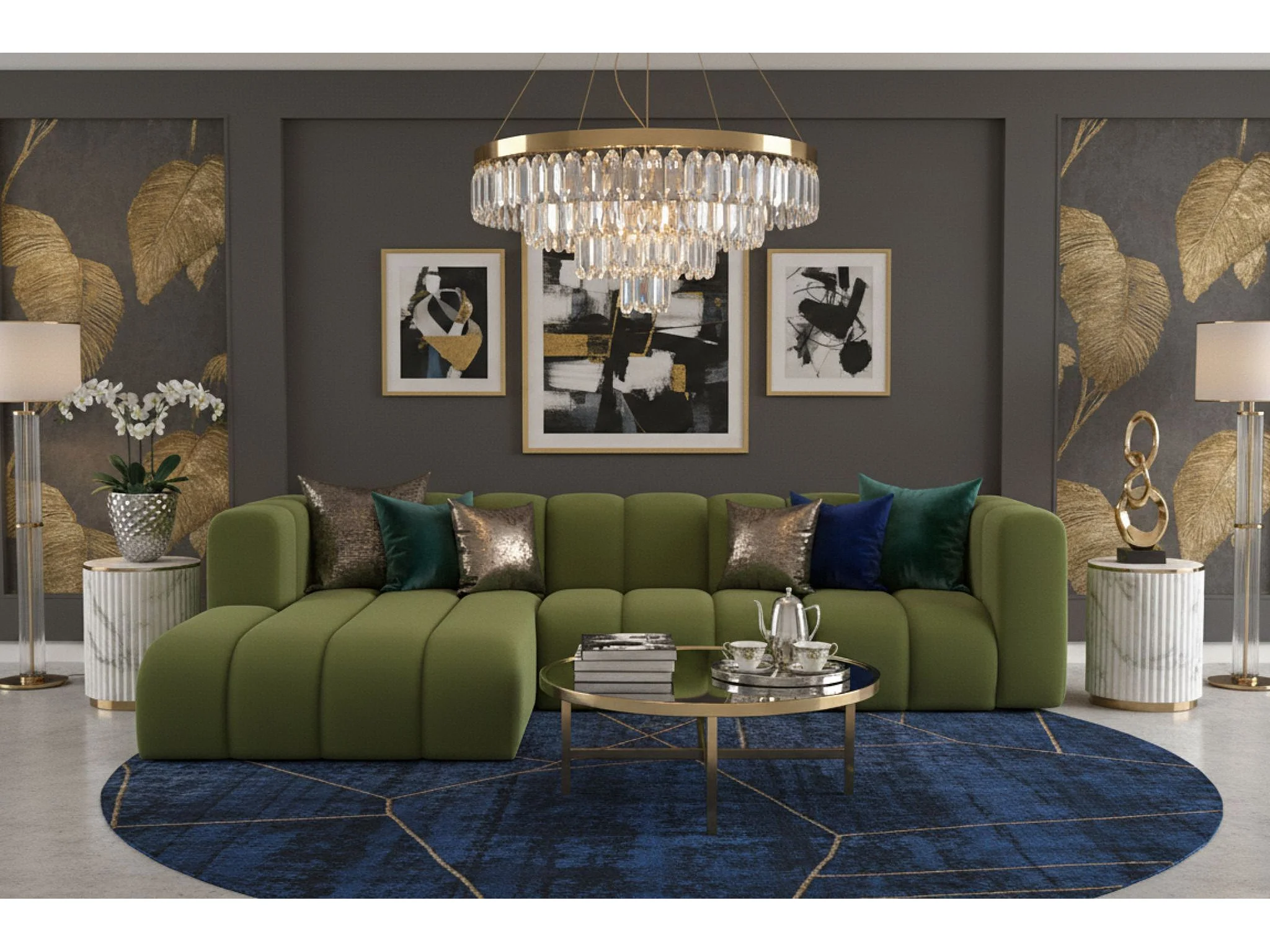 Hoekbank L-Vorm Grand L 287 cm, Veloursstof Salvador, Olijfgroen, Links