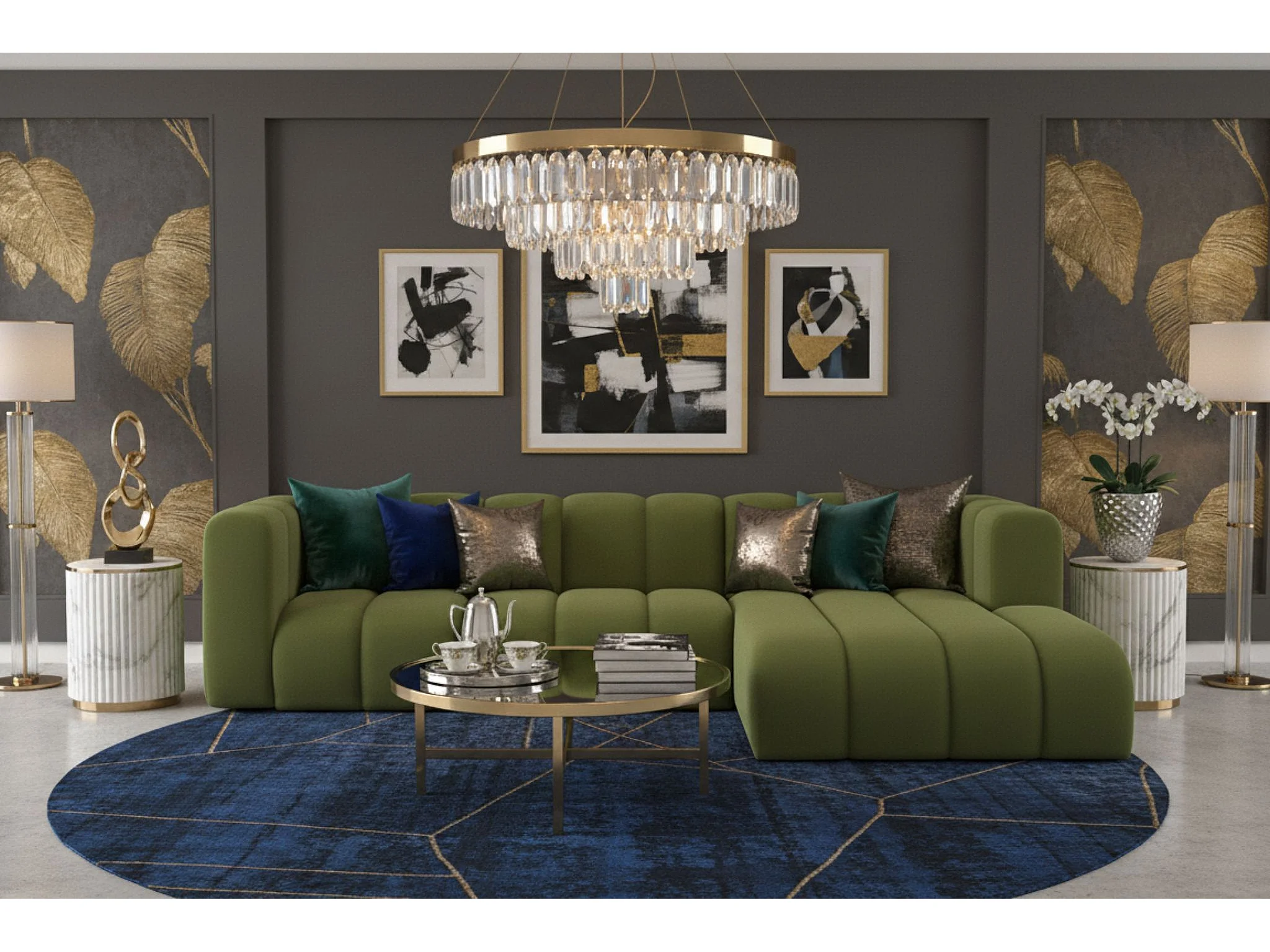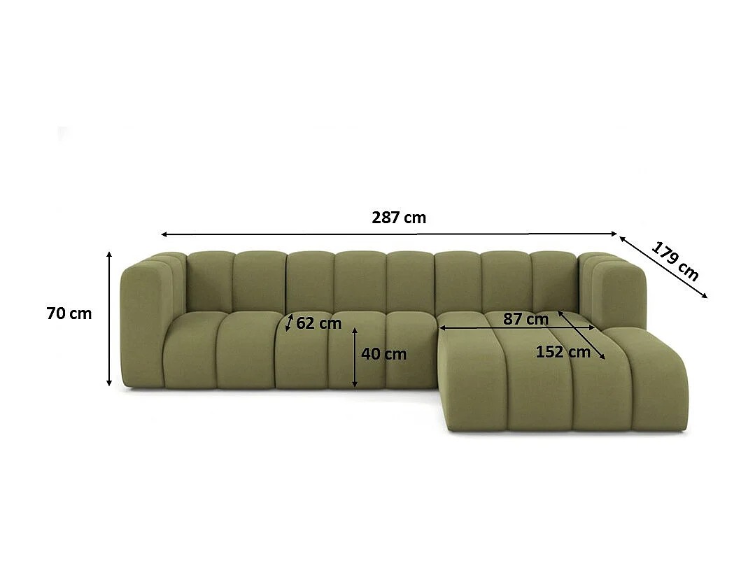 Hoekbank L-Vorm Grand L 287 cm, Veloursstof Salvador, Olijfgroen, Rechts