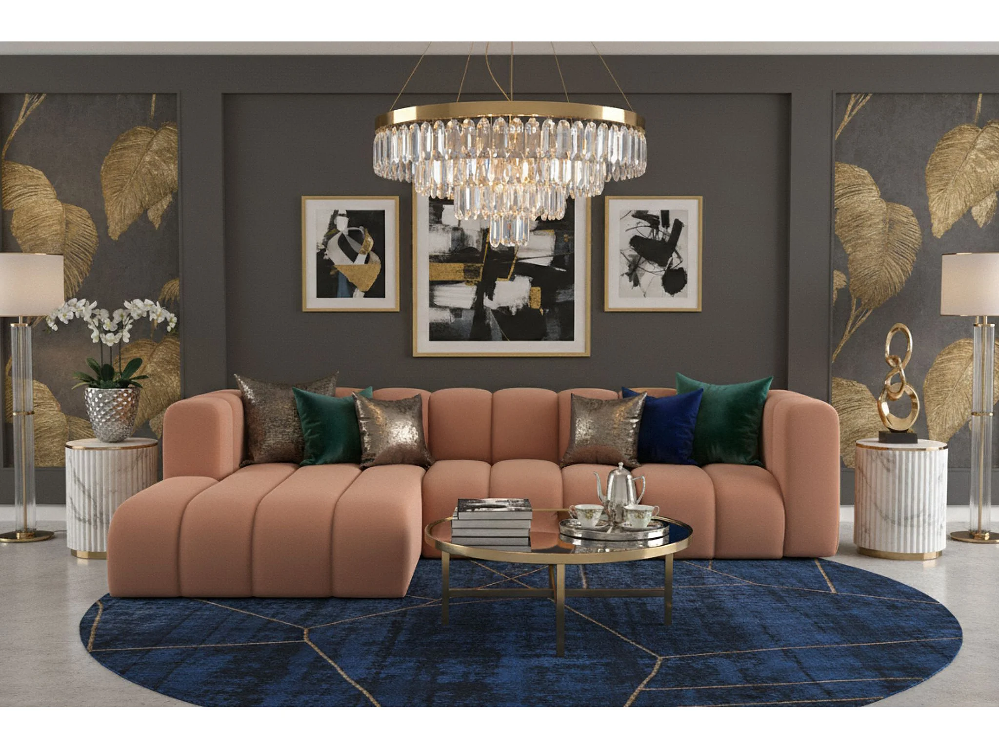Hoekbank L-Vorm Grand L 287 cm, Veloursstof Salvador, Roze, Links