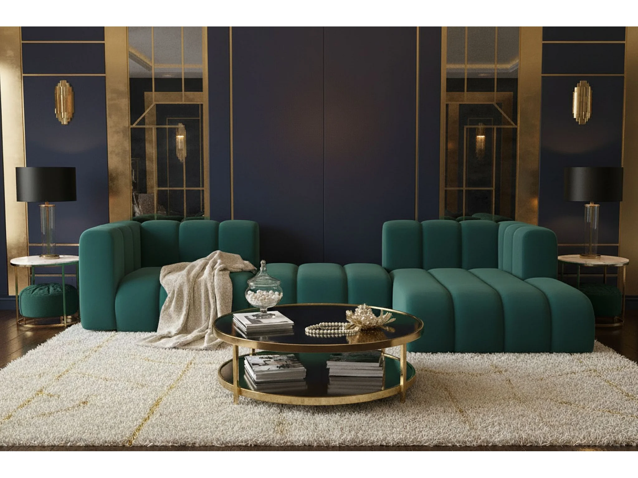 Hoekbank L-Vorm Grand L 319 cm, Veloursstof Salvador, Azurblauw, Rechts