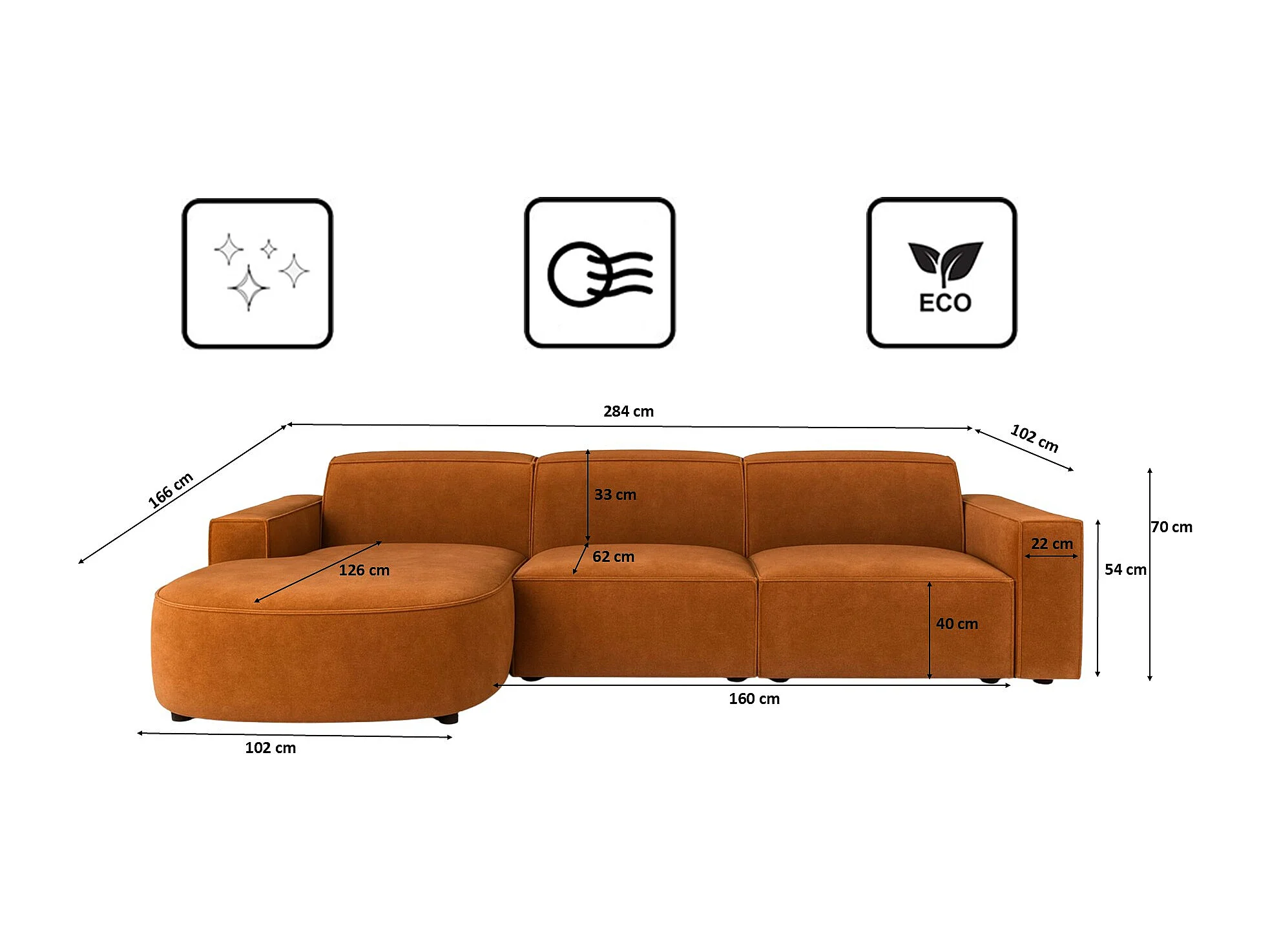 Hoekbank L-vormig Rond Cursal, stof Salvador, bruin, links