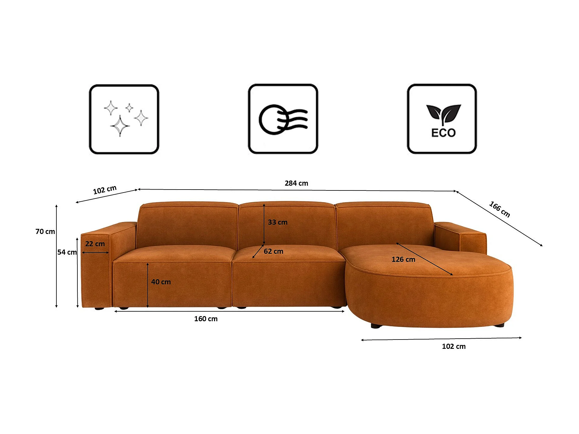 Hoekbank L-vormig Rond Cursal, stof Salvador, bruin, rechts