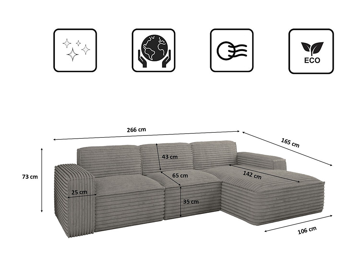 Hoekbank L-vorm Siena stof Velo Grijs Rechts