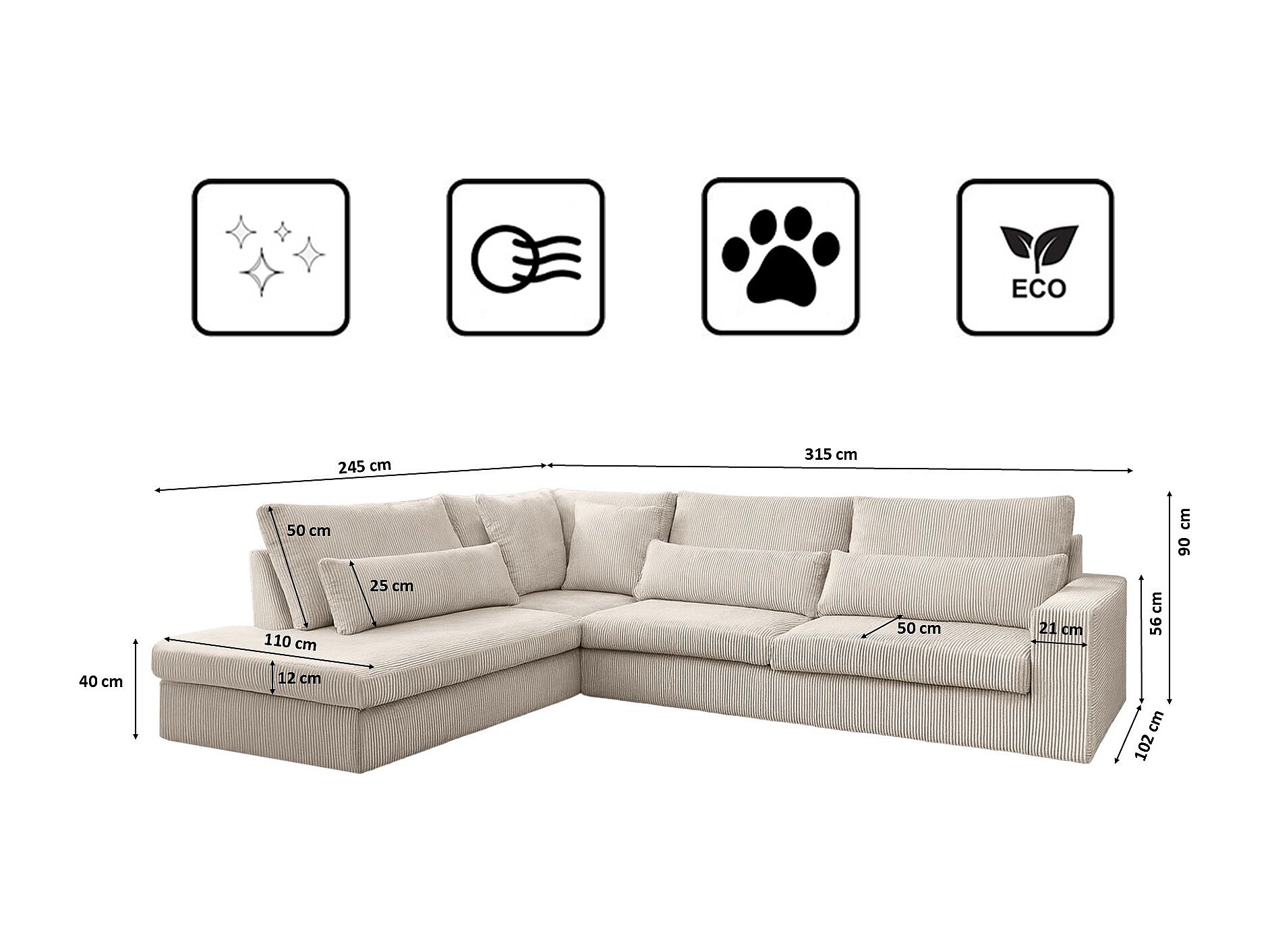 Hoekbank L-vorm SVEN stof Poso Beige Links