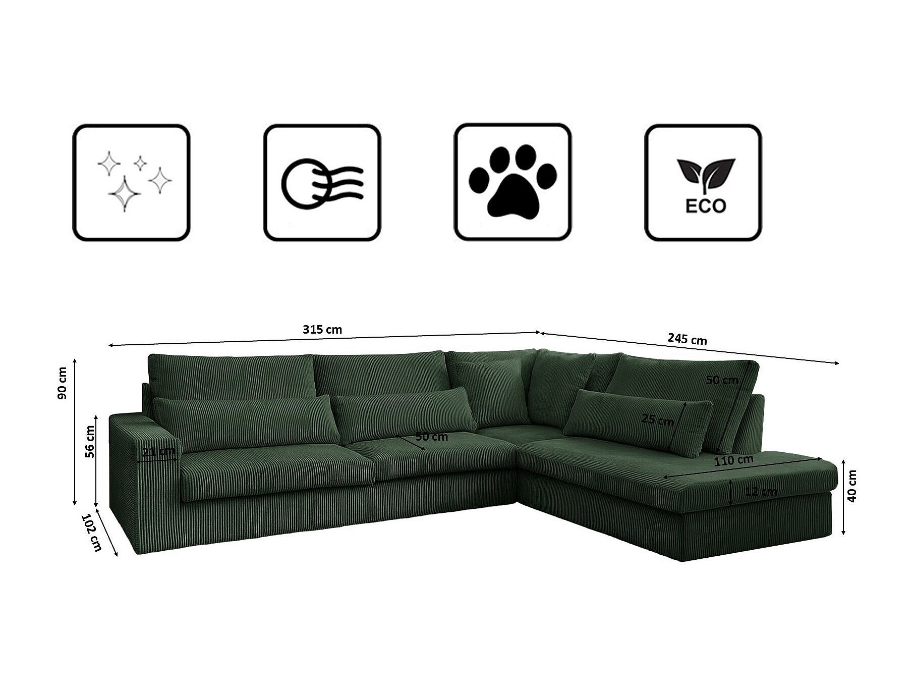 Hoekbank L-vorm SVEN stof Poso Groen Rechts