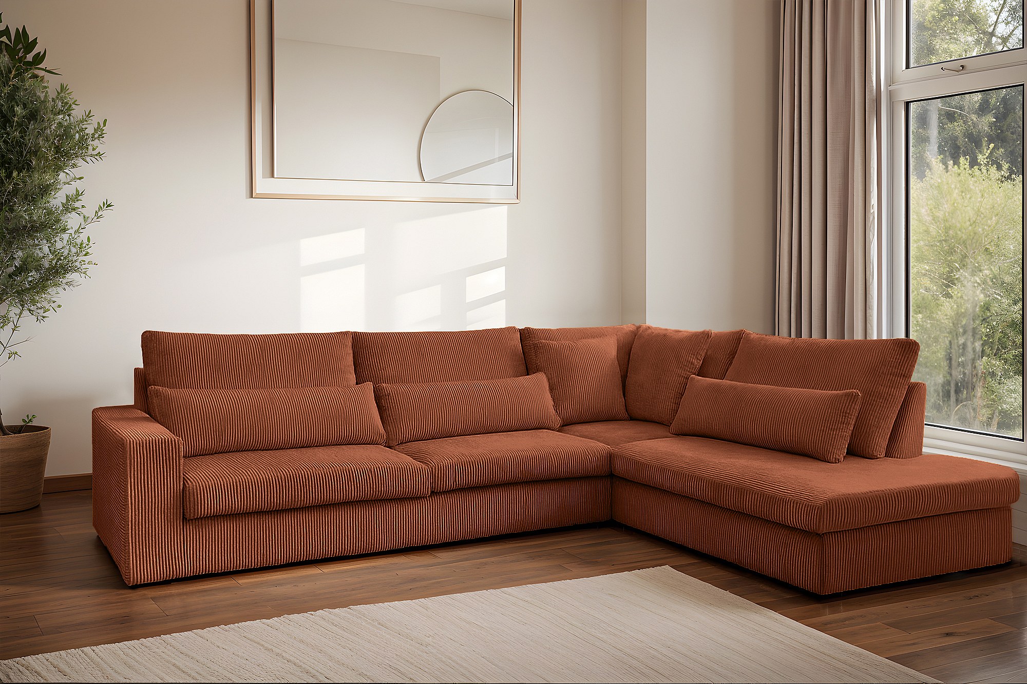 Hoekbank L-vorm SVEN stof Poso koper rechts