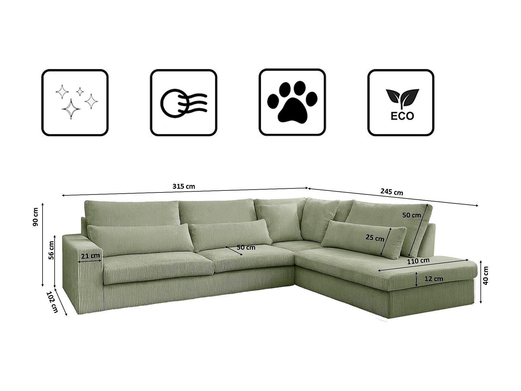 Hoekbank L-vorm SVEN stof Poso lichtgroen rechts