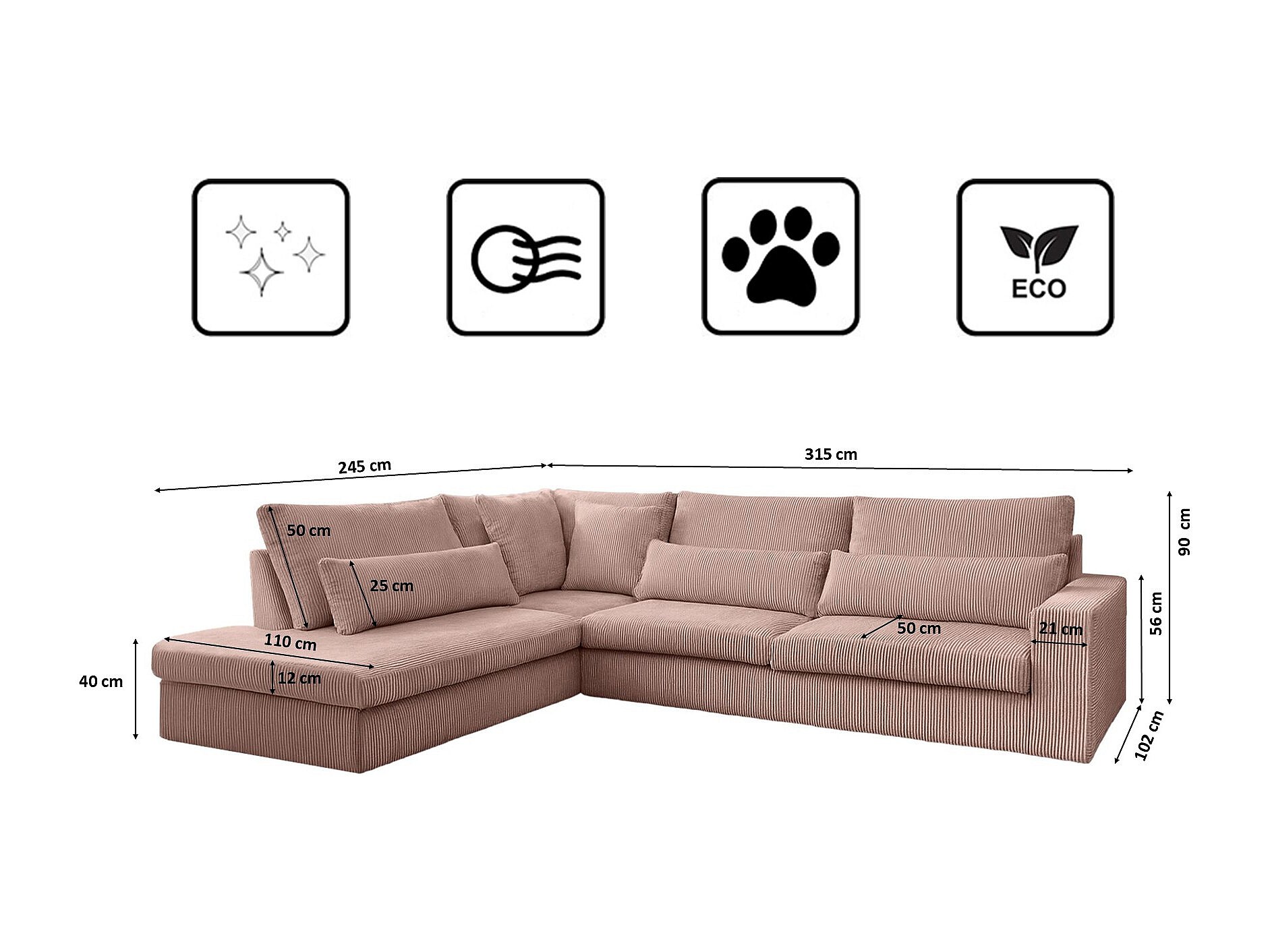 Hoekbank L-vorm SVEN stof Poso Rosa Links