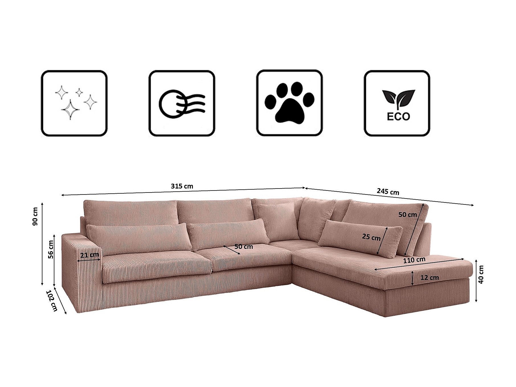Hoekbank L-vorm SVEN stof Poso Rosa rechts
