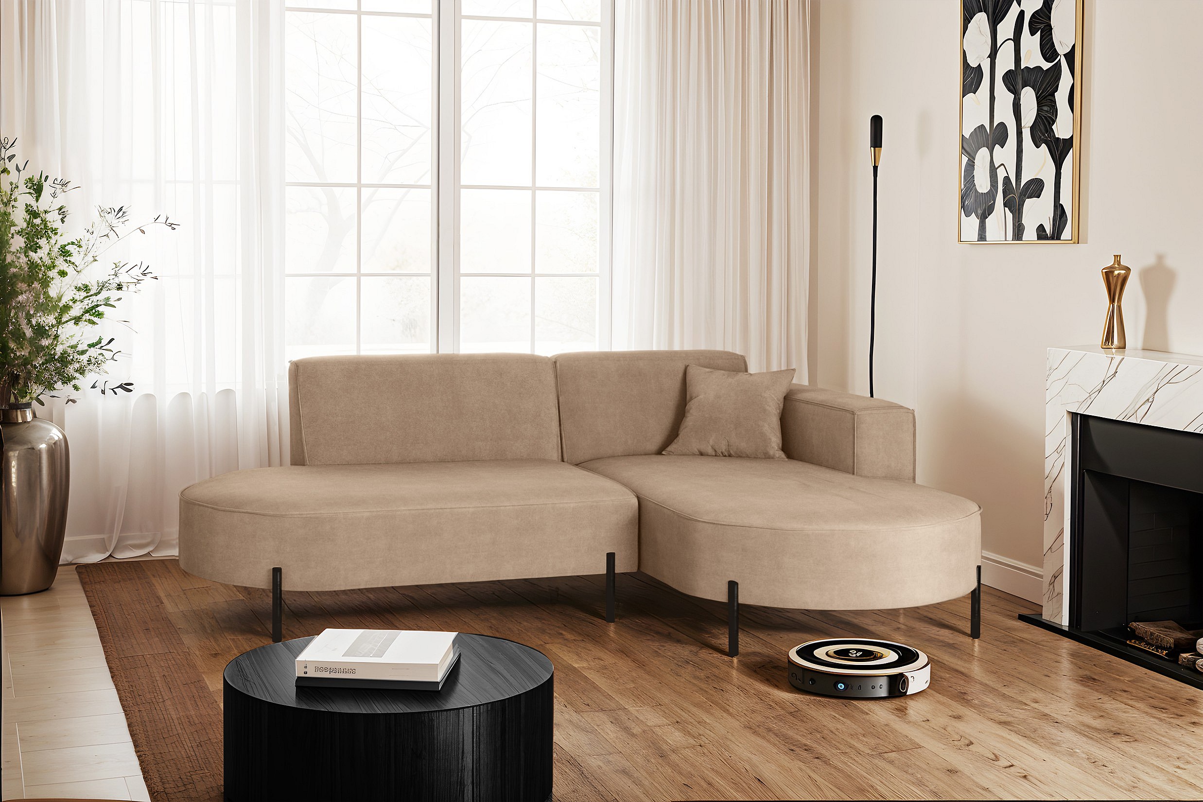 Hoekbank, L-vormige bank, design Modena, pure stof Noel, koudbeige, rechts